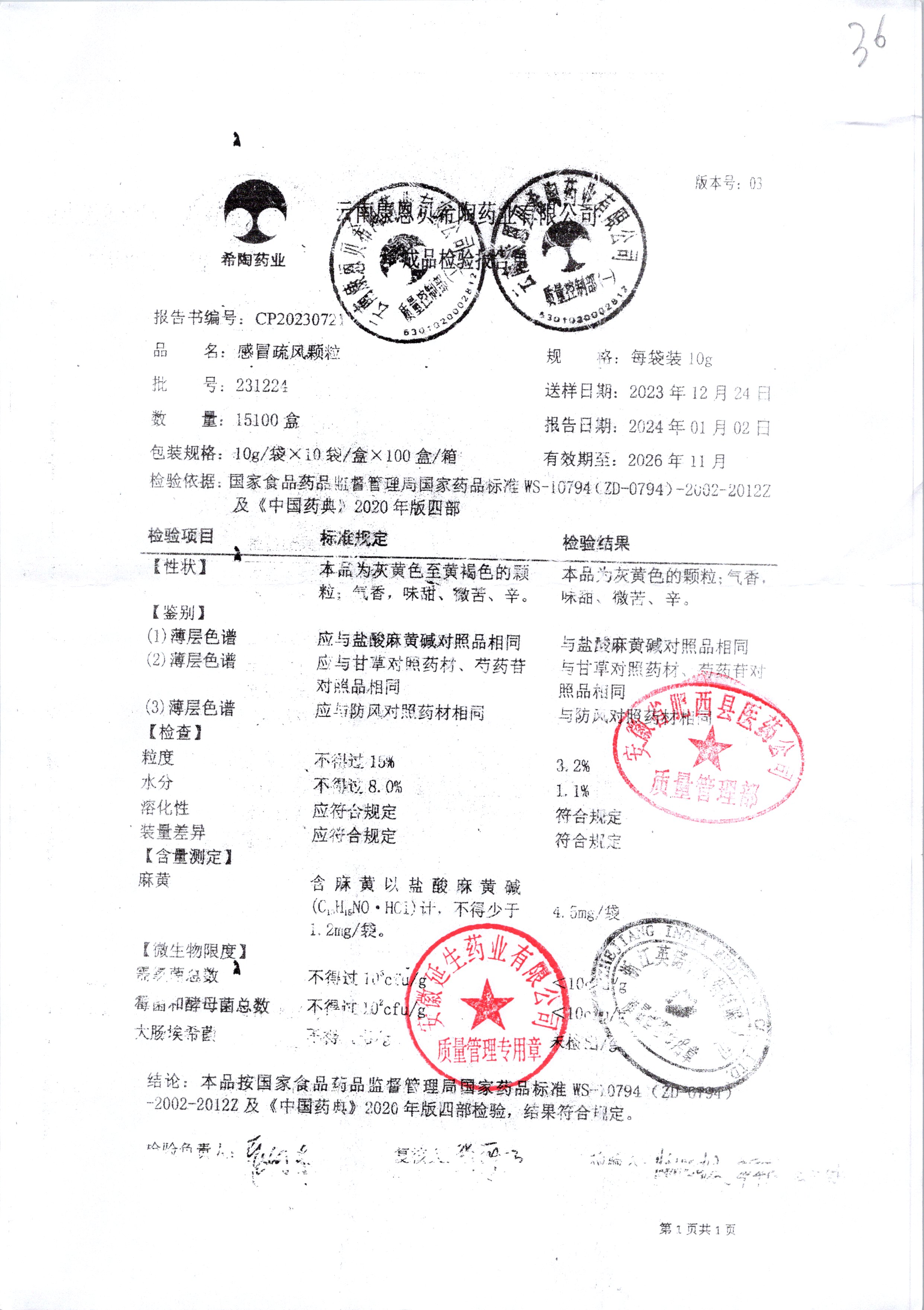 感冒疏风颗粒 | 10g*10袋 | 231224 | 查看详情 |