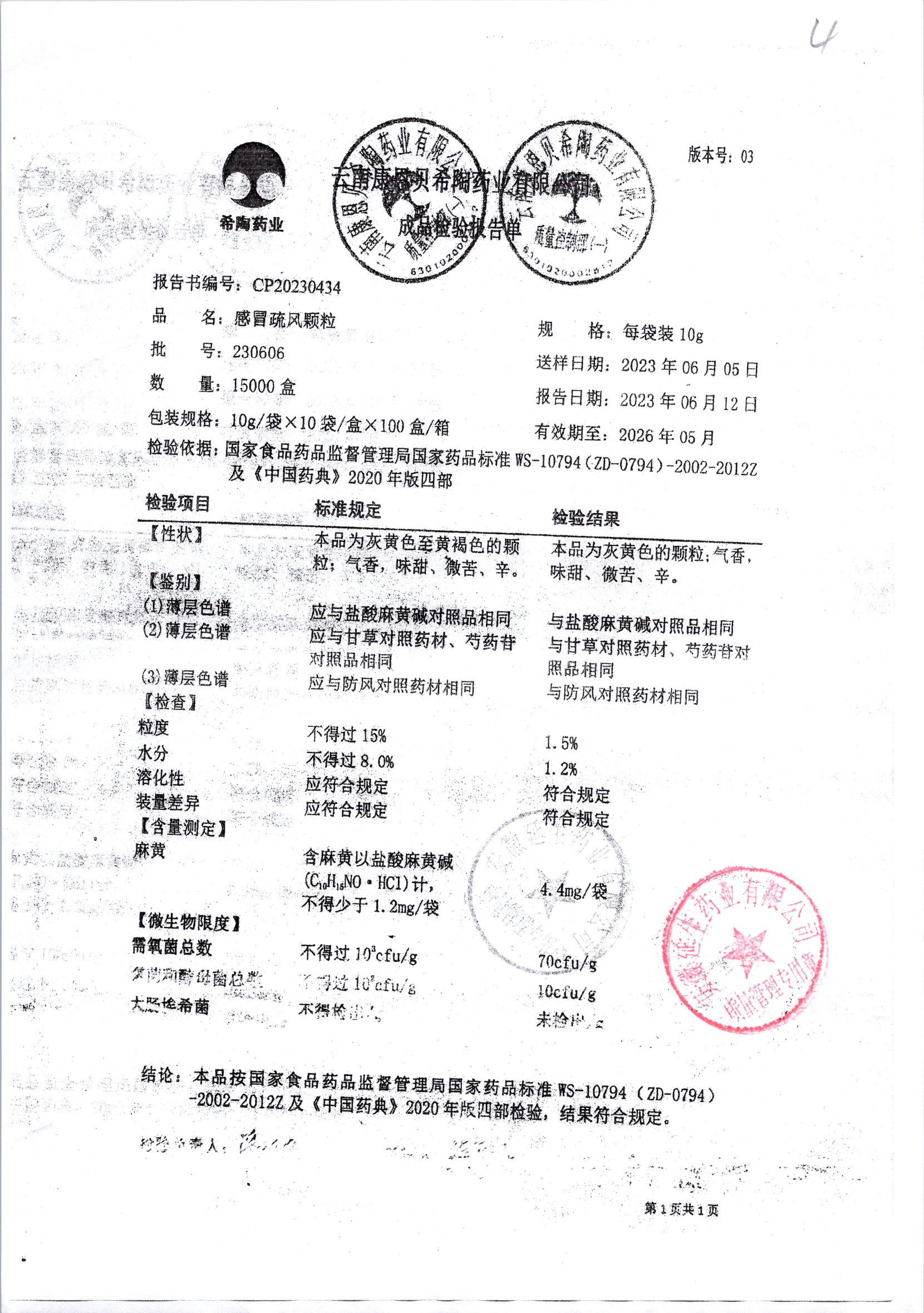 感冒疏风颗粒 | 10g*10袋 | 230606 | 查看详情 |