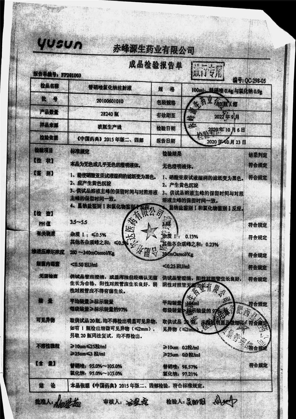 药检报告