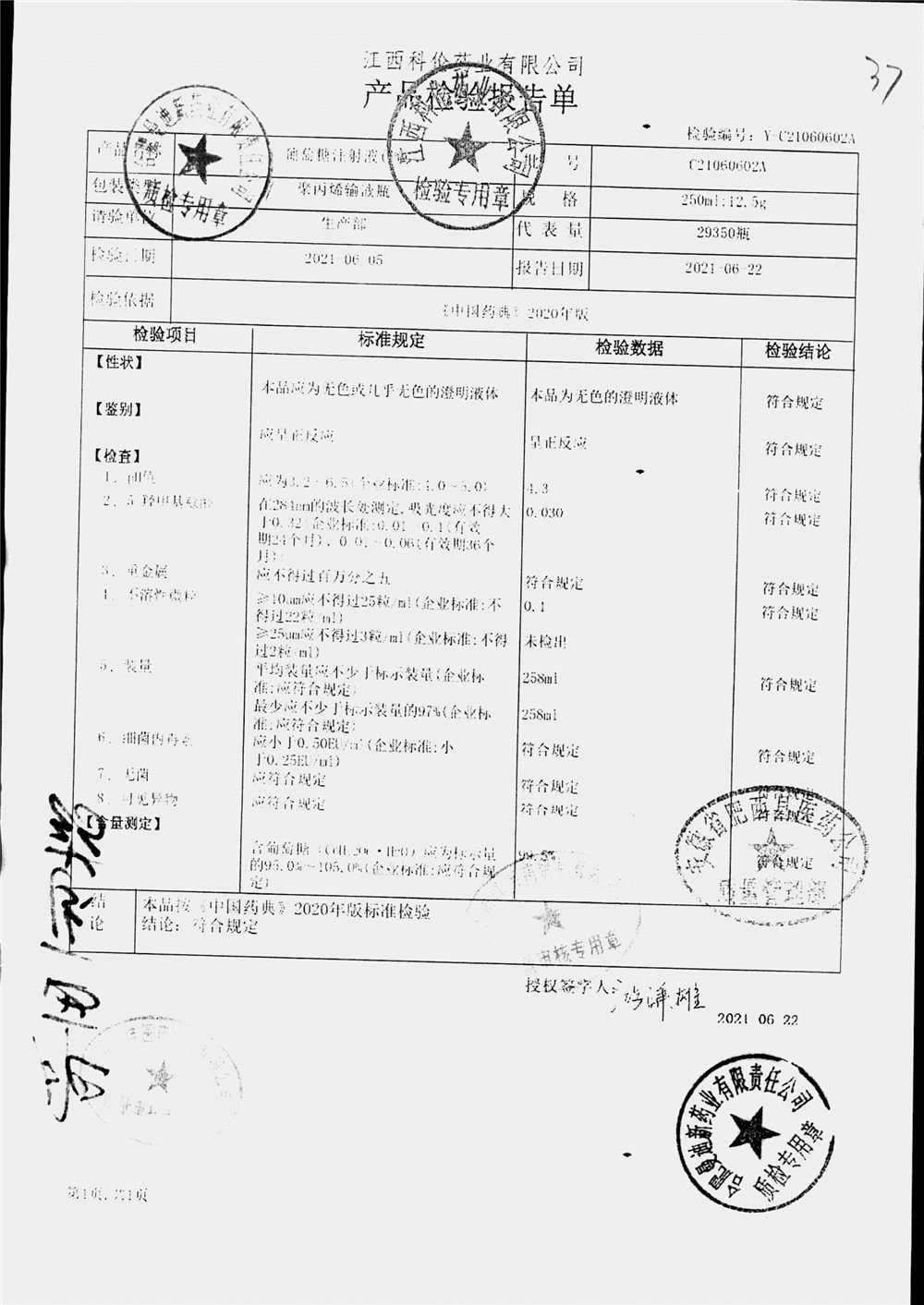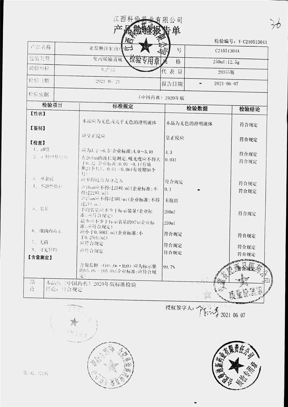 葡萄糖注射液 | 250ml:12.5g(聚丙烯输液瓶) | C21060602A | 查看详情 |