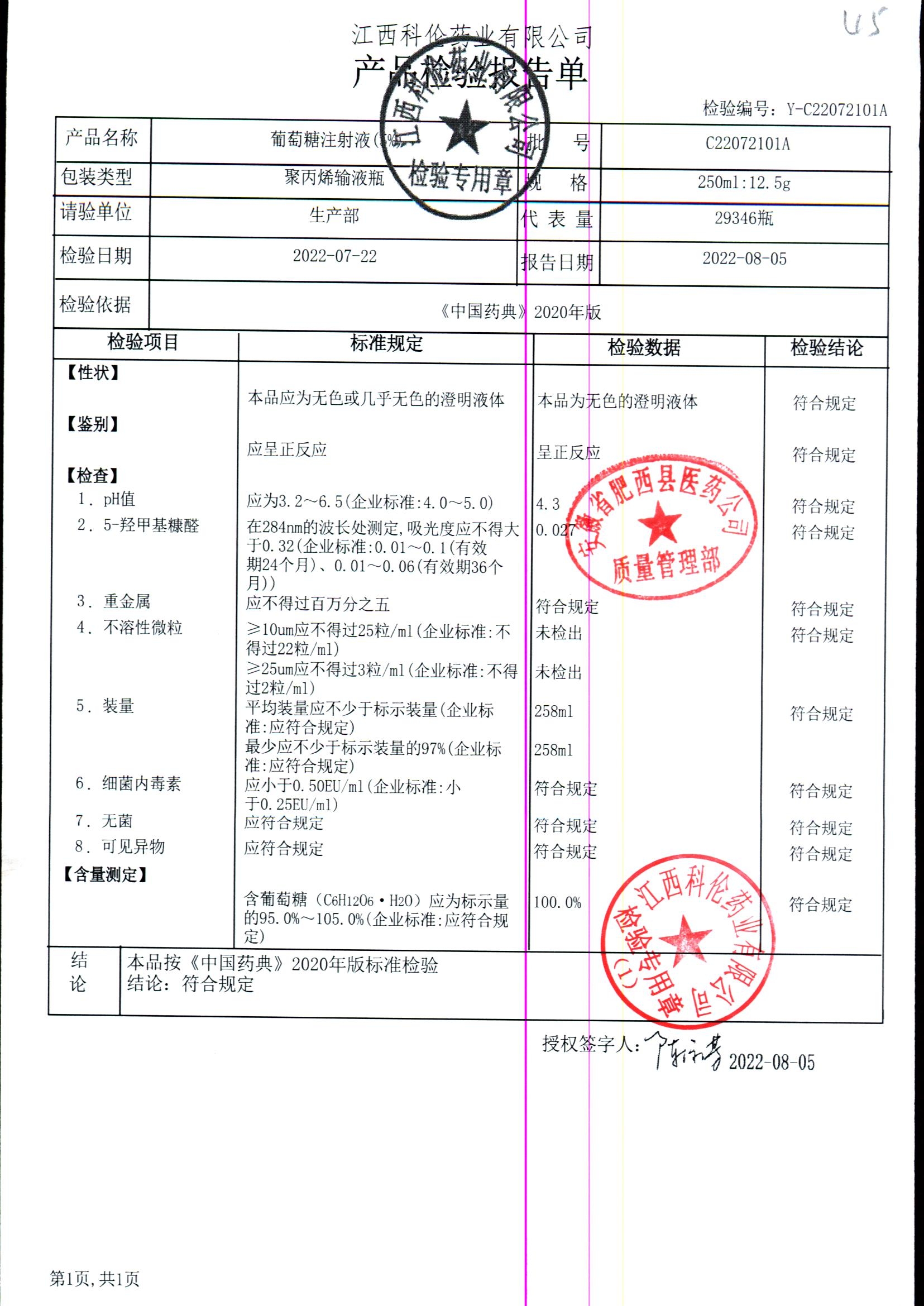 葡萄糖注射液 | 250ml:12.5g(聚丙烯输液瓶) | C22072101A | 查看详情 |