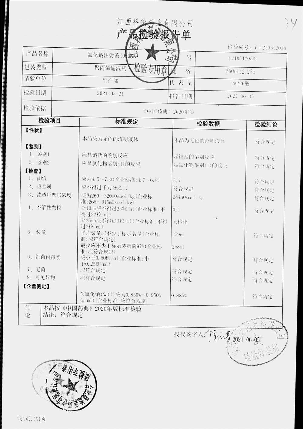 氯化钠注射液 | 250ml:2.25g(聚丙烯输液瓶) | C21051205B | 查看详情 |