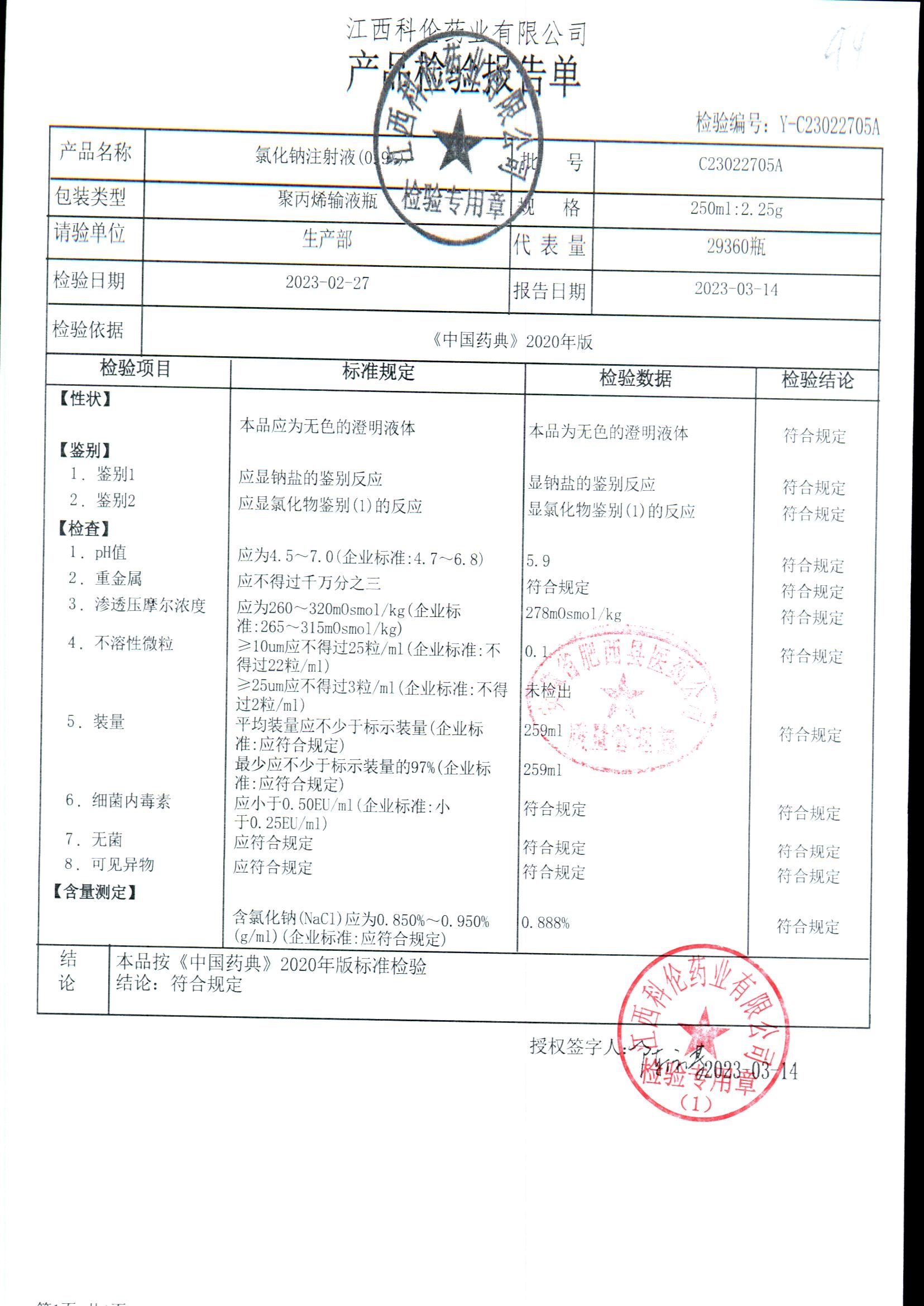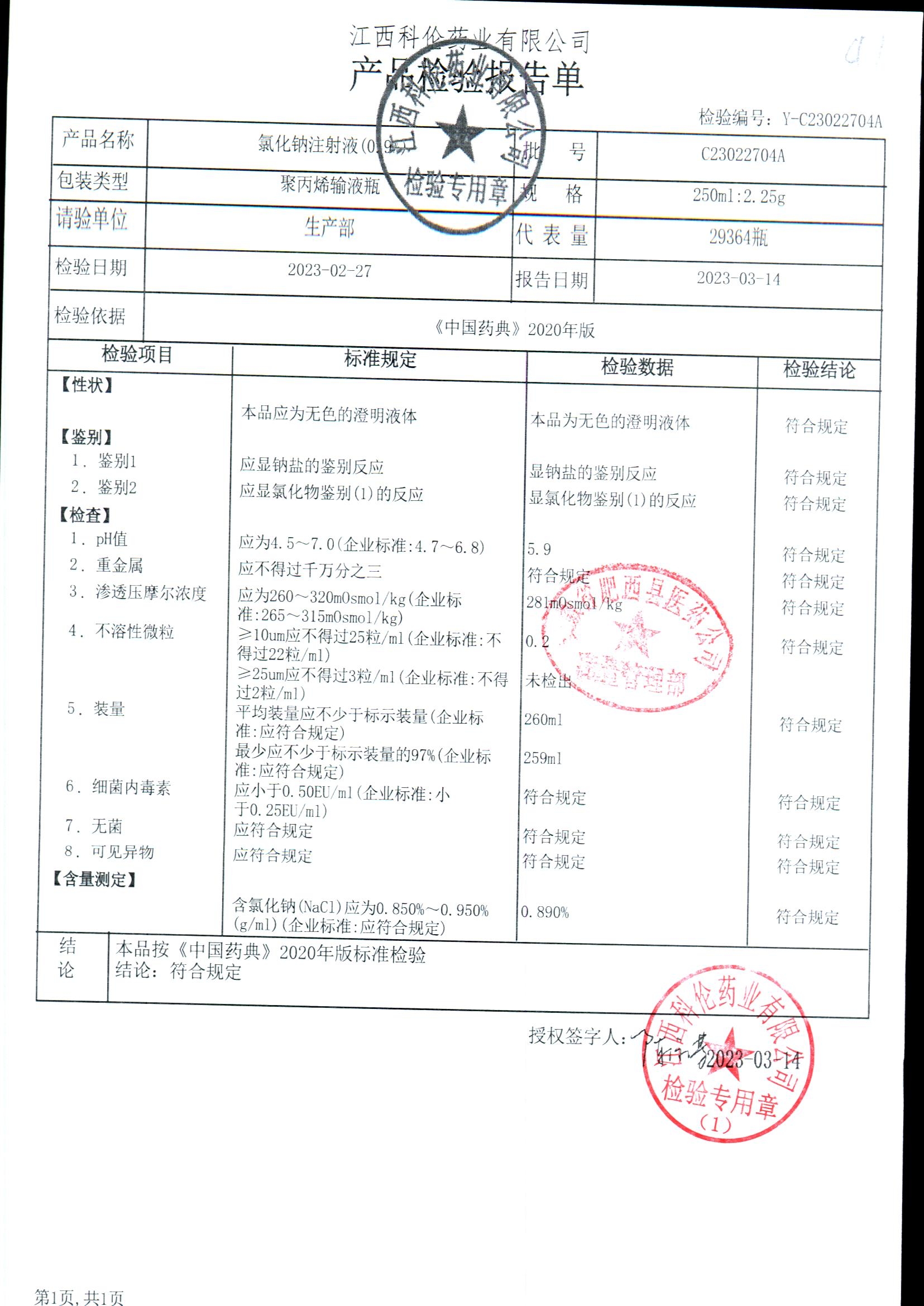 氯化钠注射液 | 250ml:2.25g(聚丙烯输液瓶) | C23022704A | 查看详情 |