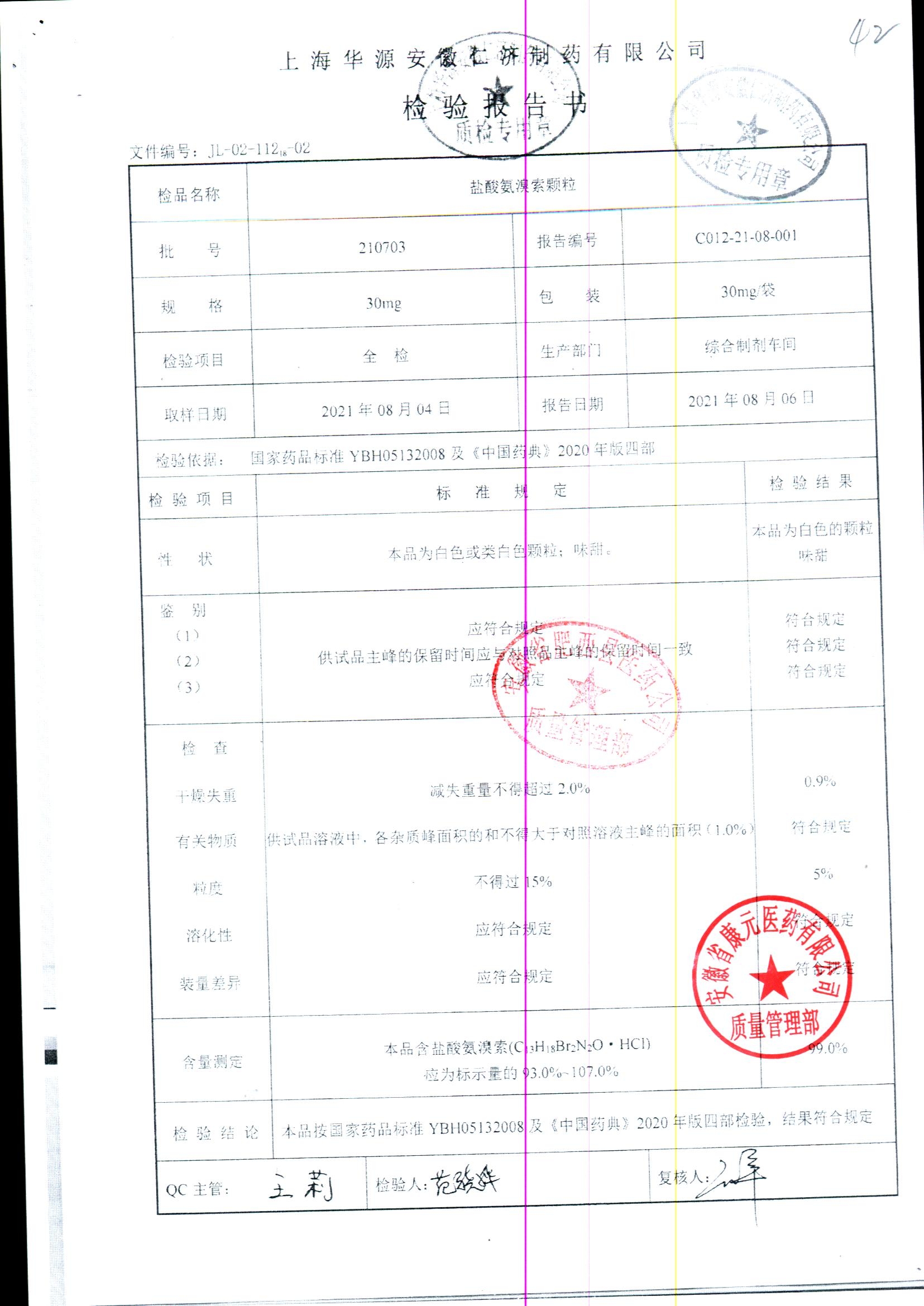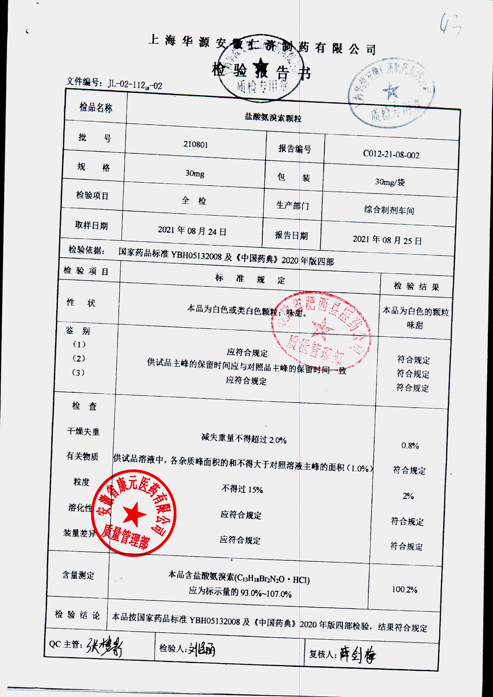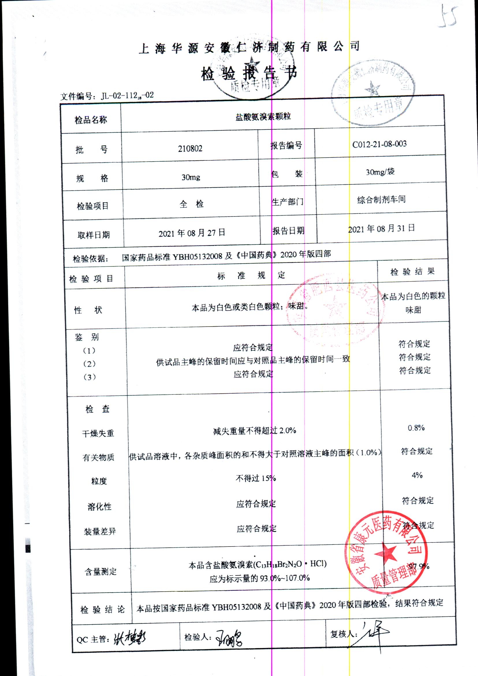 盐酸氨溴索颗粒 | 30mg*9袋 | 210801 | 查看详情 |