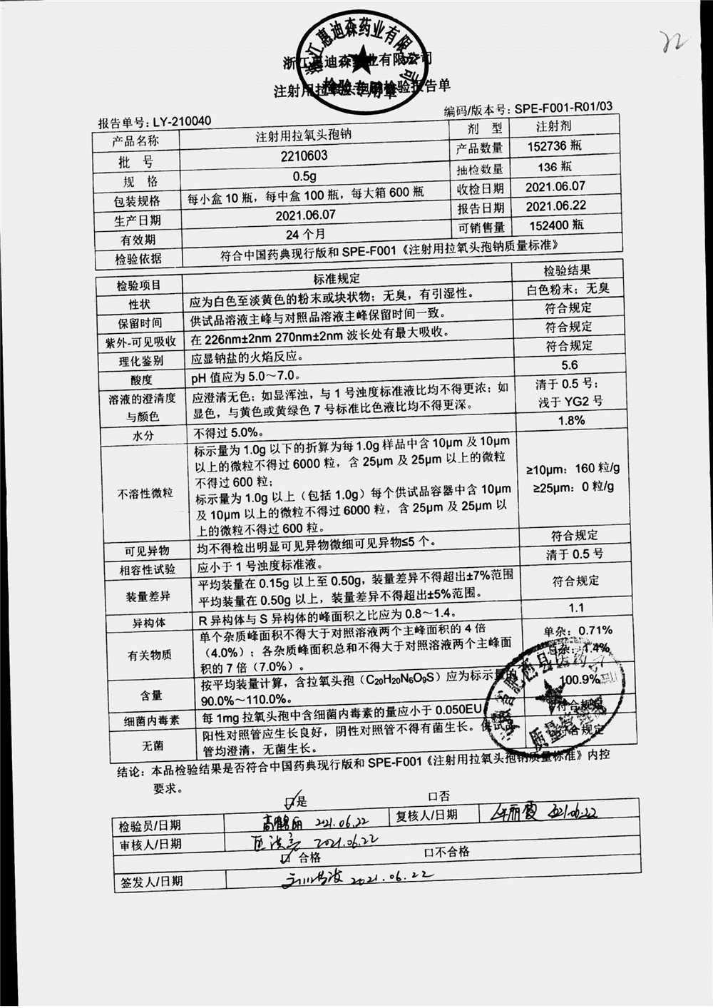 药检报告