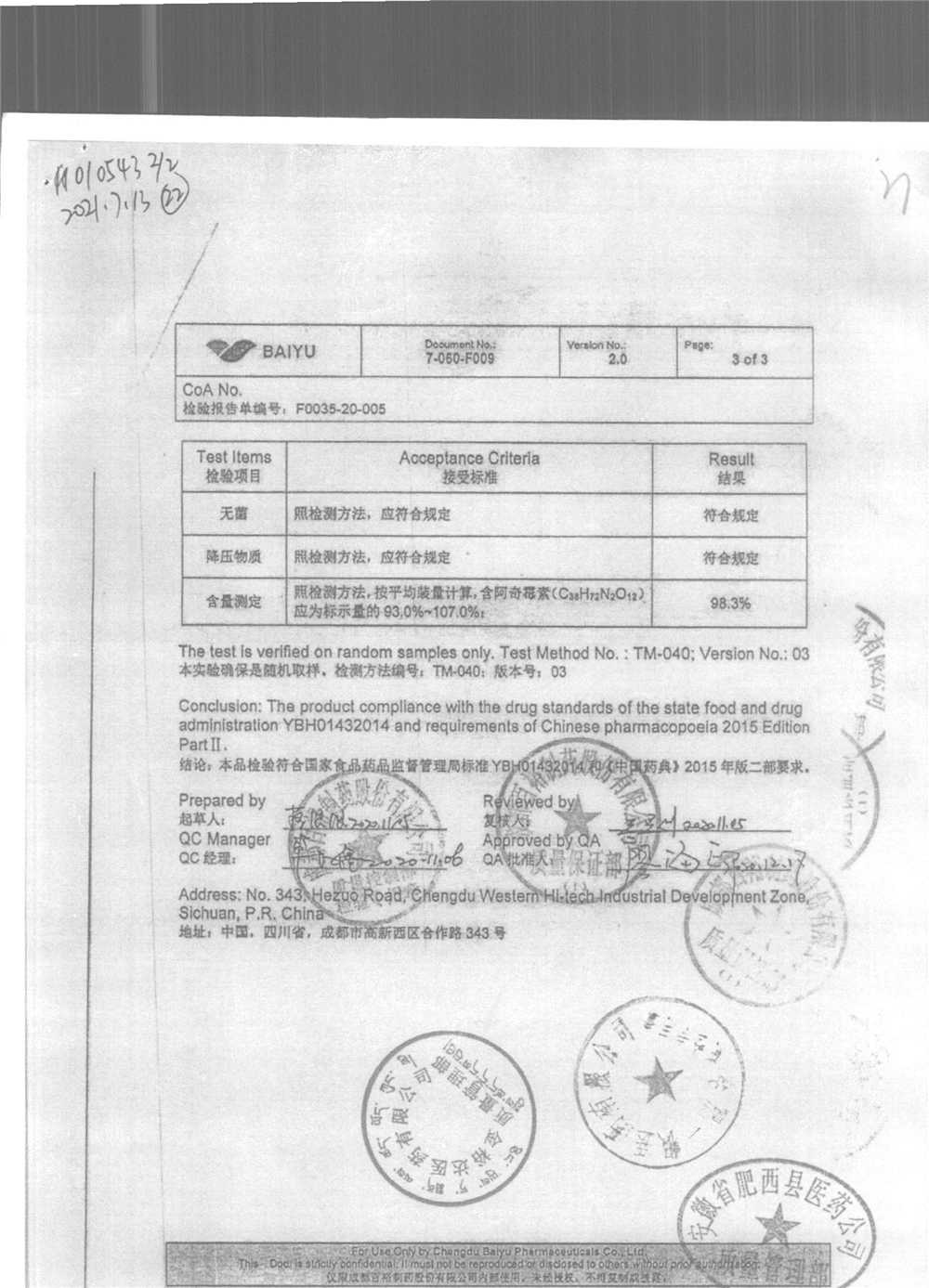注射用阿奇霉素 | 0.25g*6支 | 012009162(1/2) | 查看详情 |