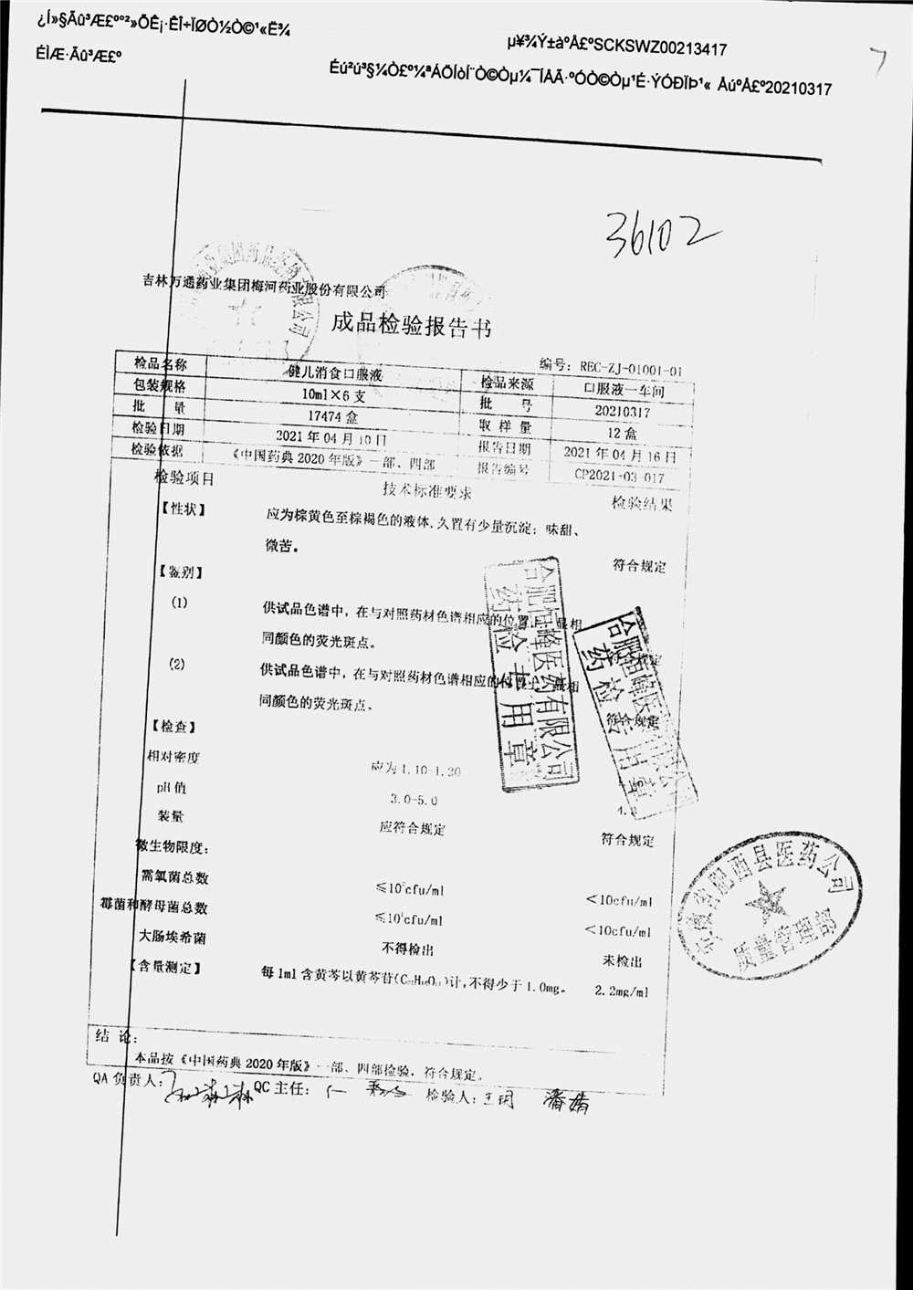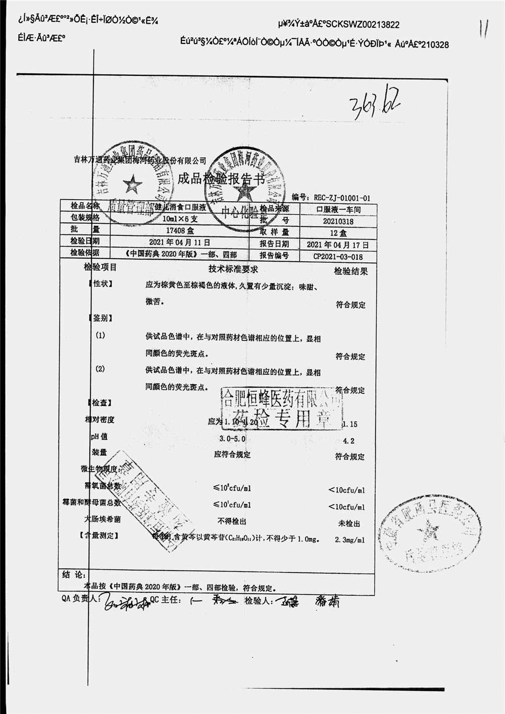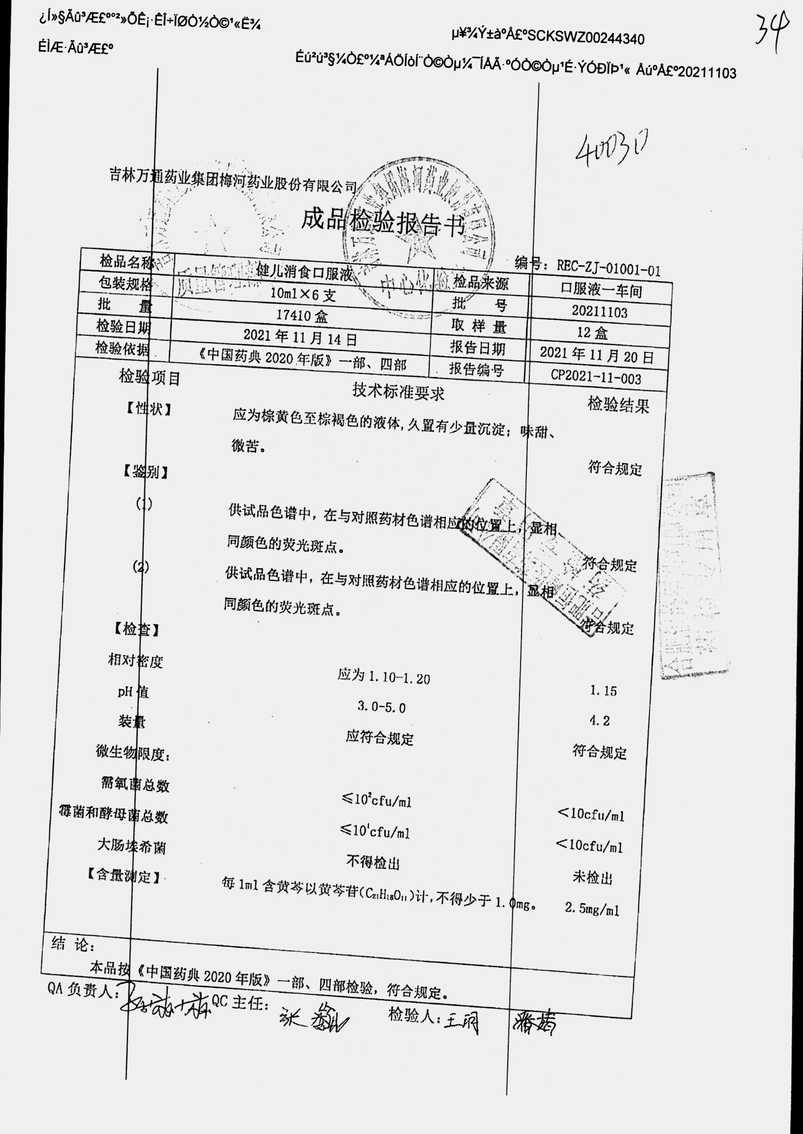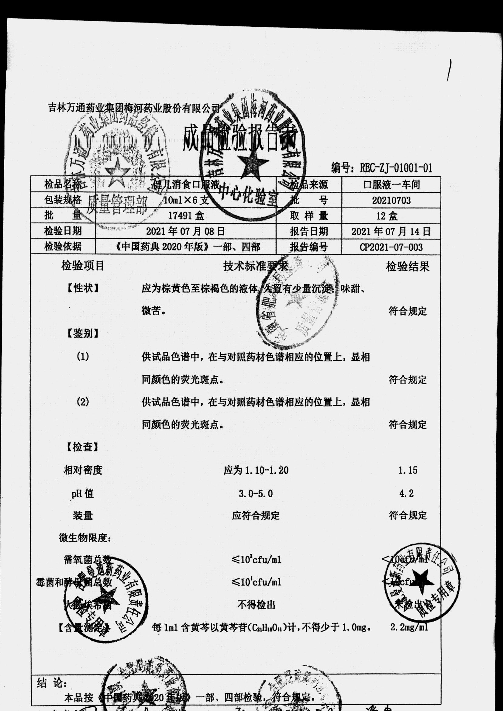 药检报告