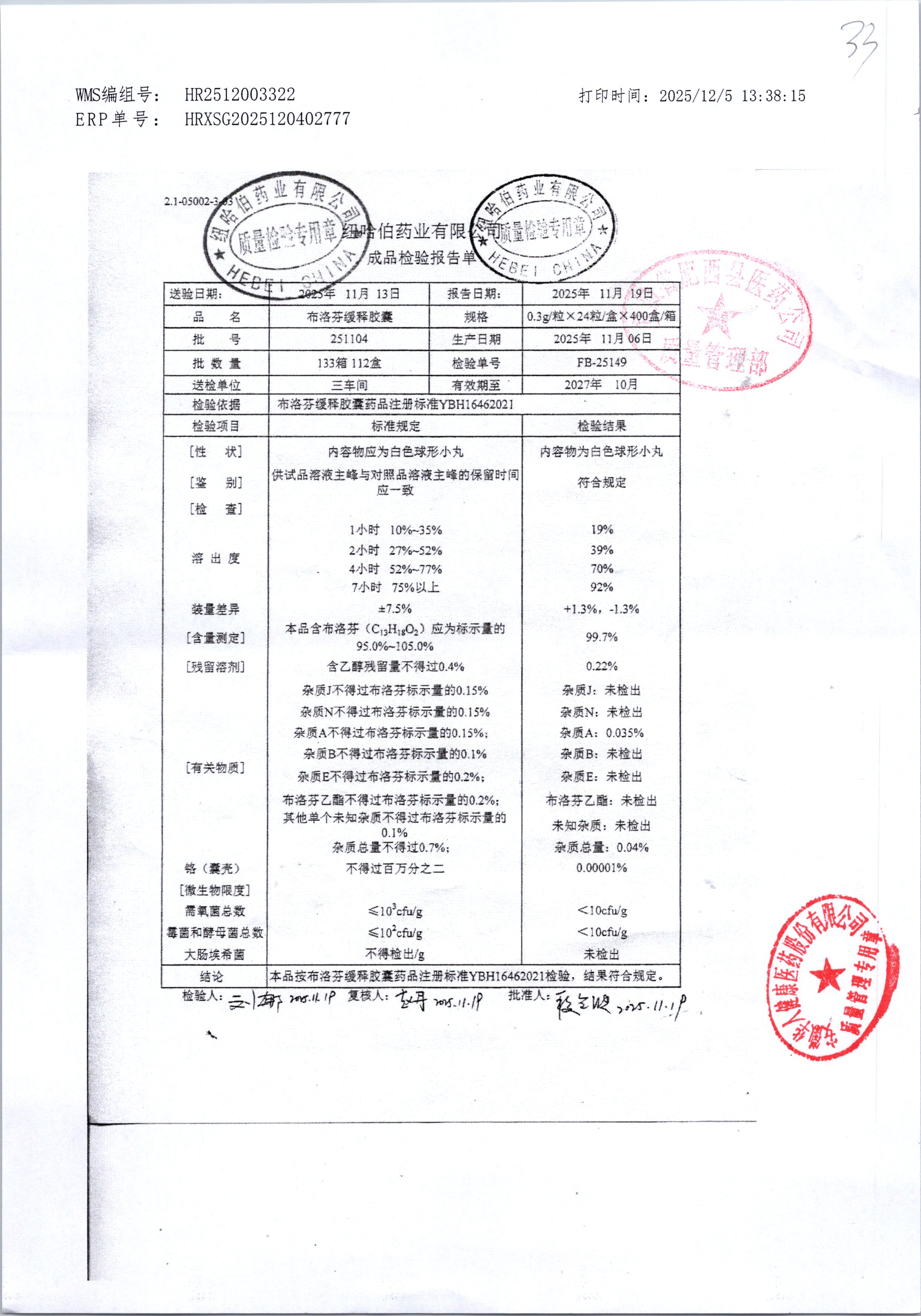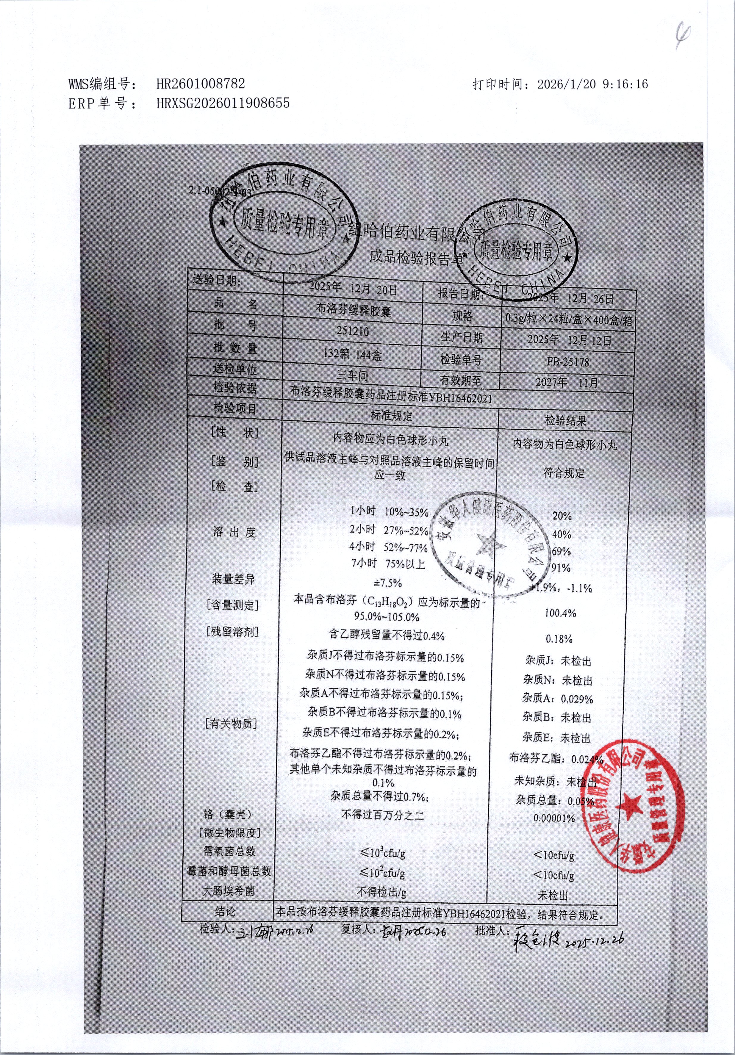 | 布洛芬缓释胶囊 | 0.3g*12粒*2板 | 220812 | 查看详情 |