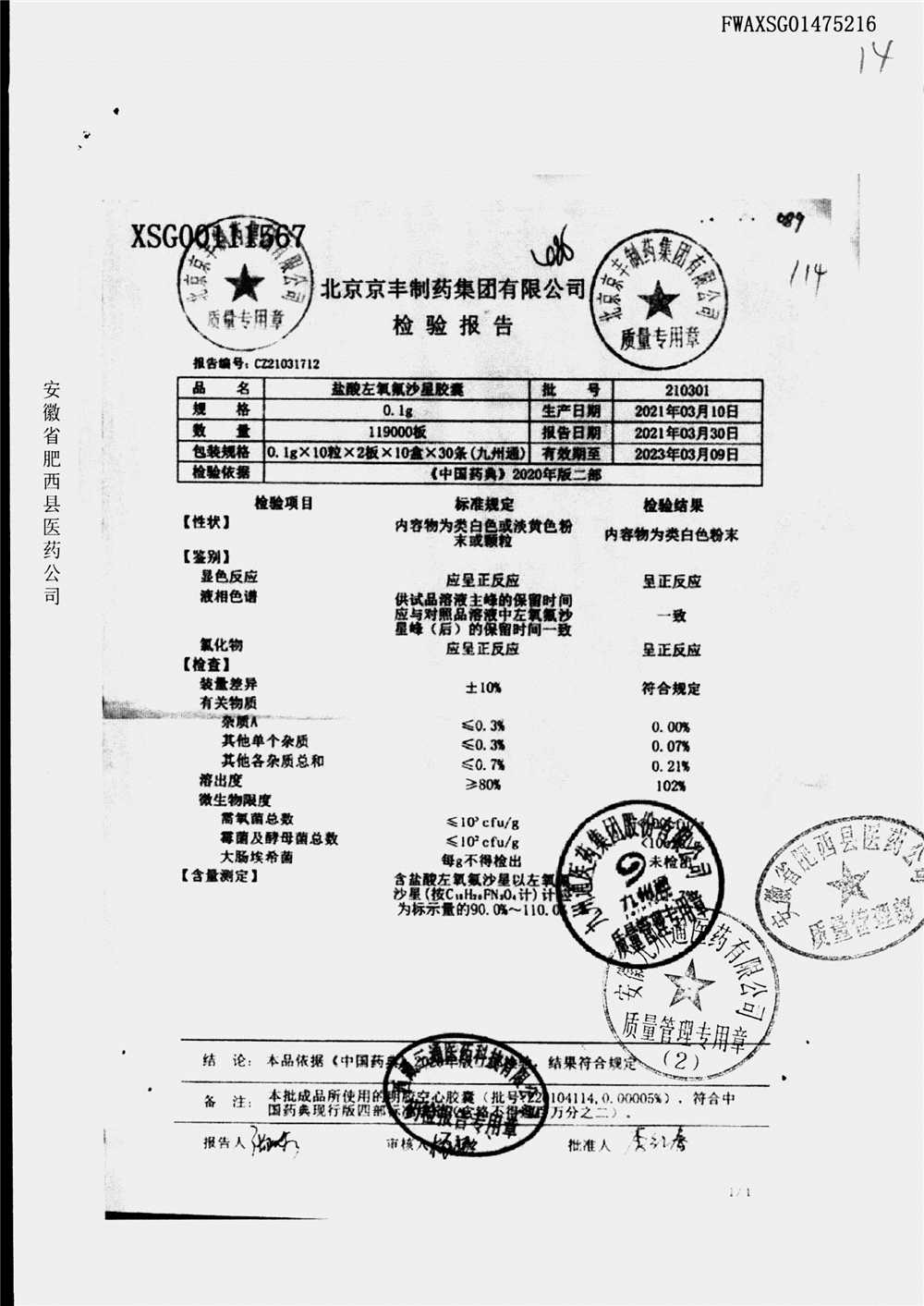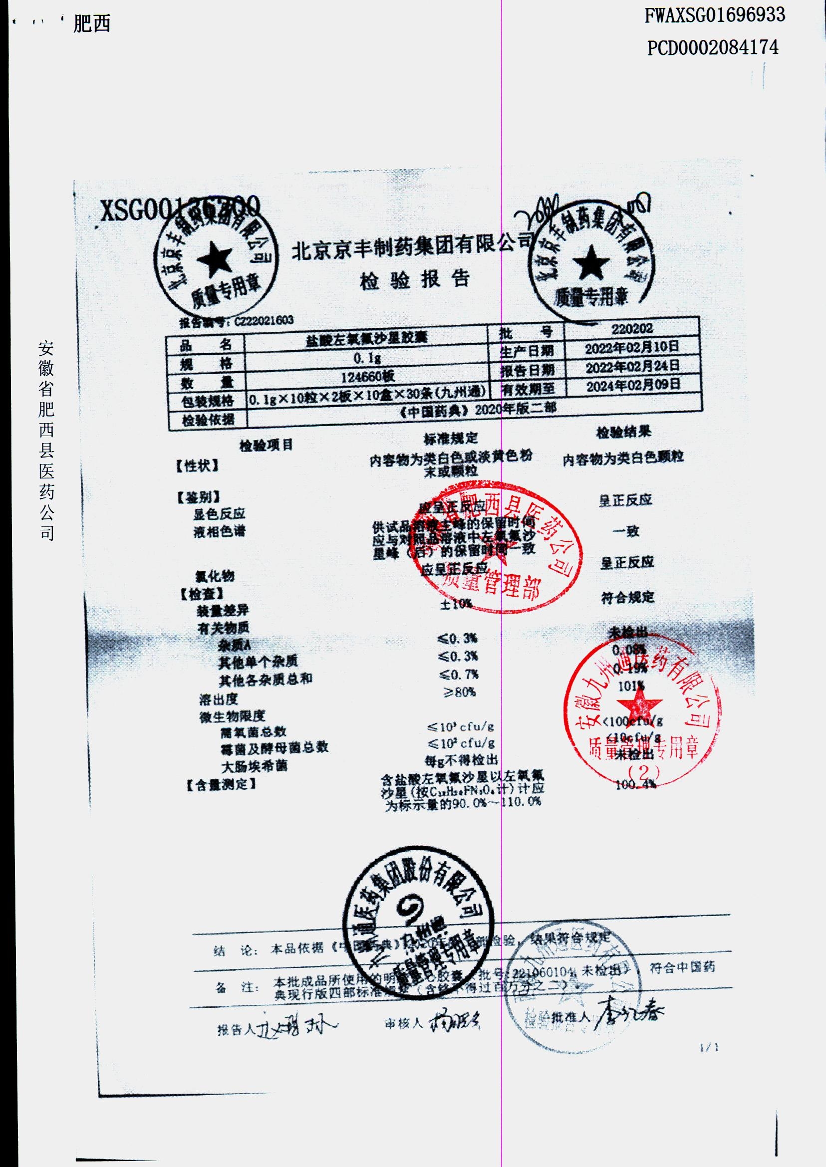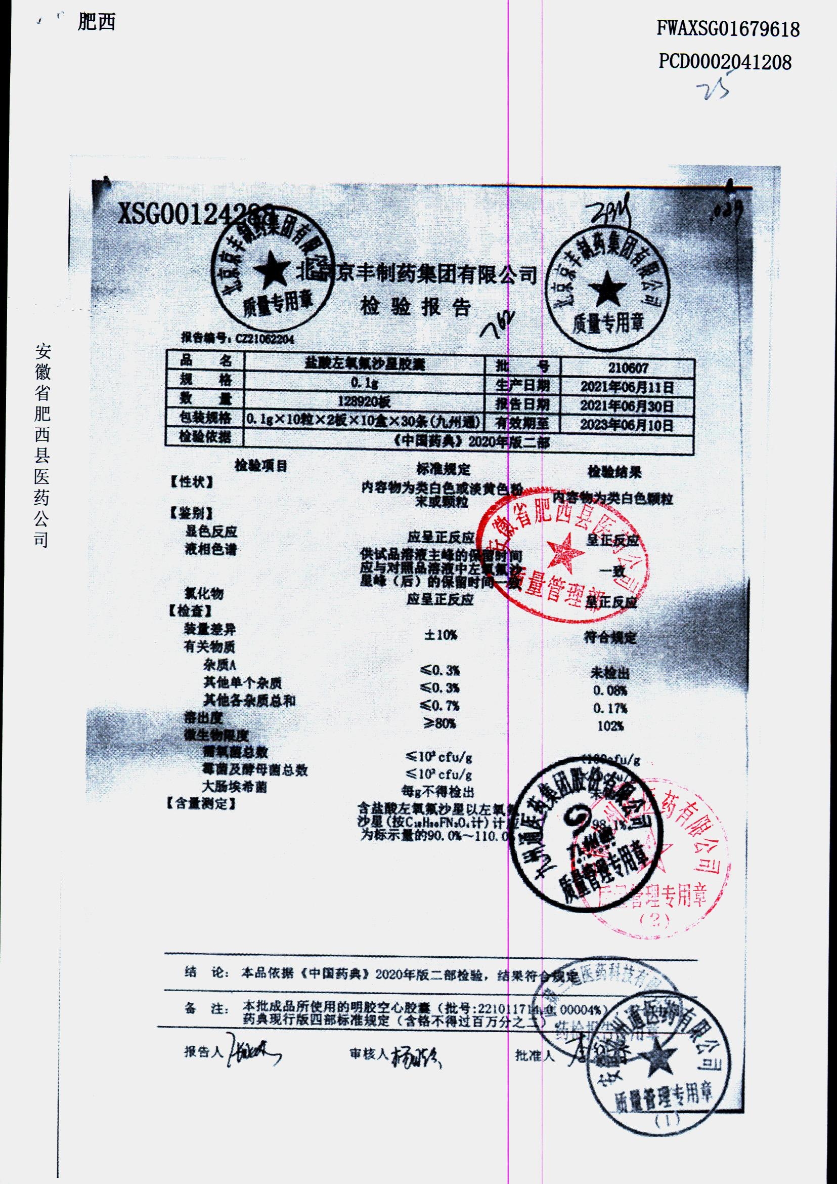盐酸左氧氟沙星胶囊 | 10粒/板*2板 | 210607 | 查看详情 |