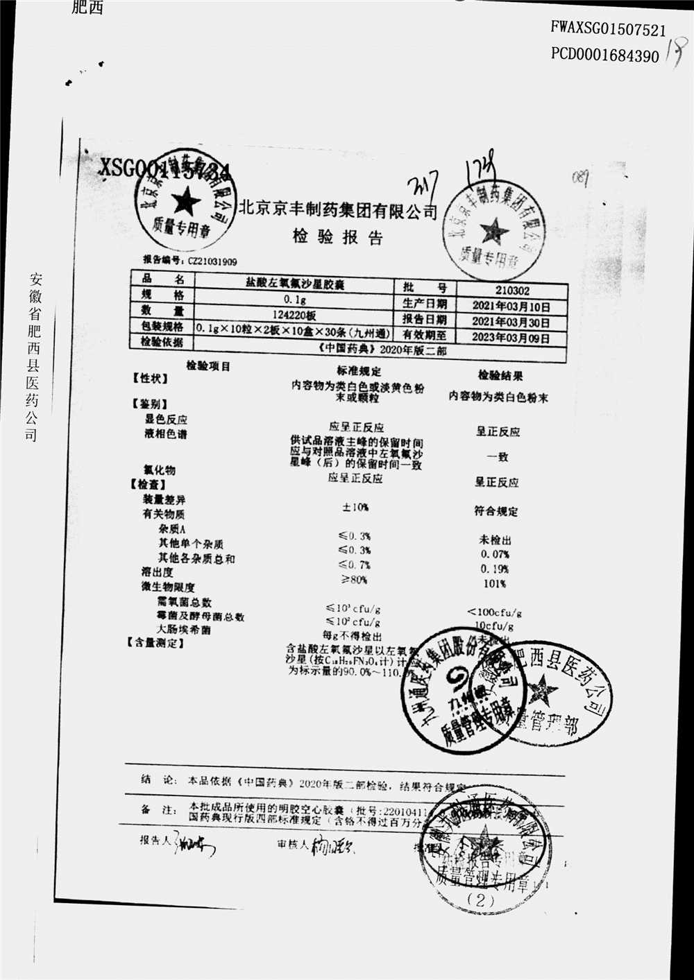 盐酸左氧氟沙星胶囊 | 10粒/板*2板 | 210608 | 查看详情 |