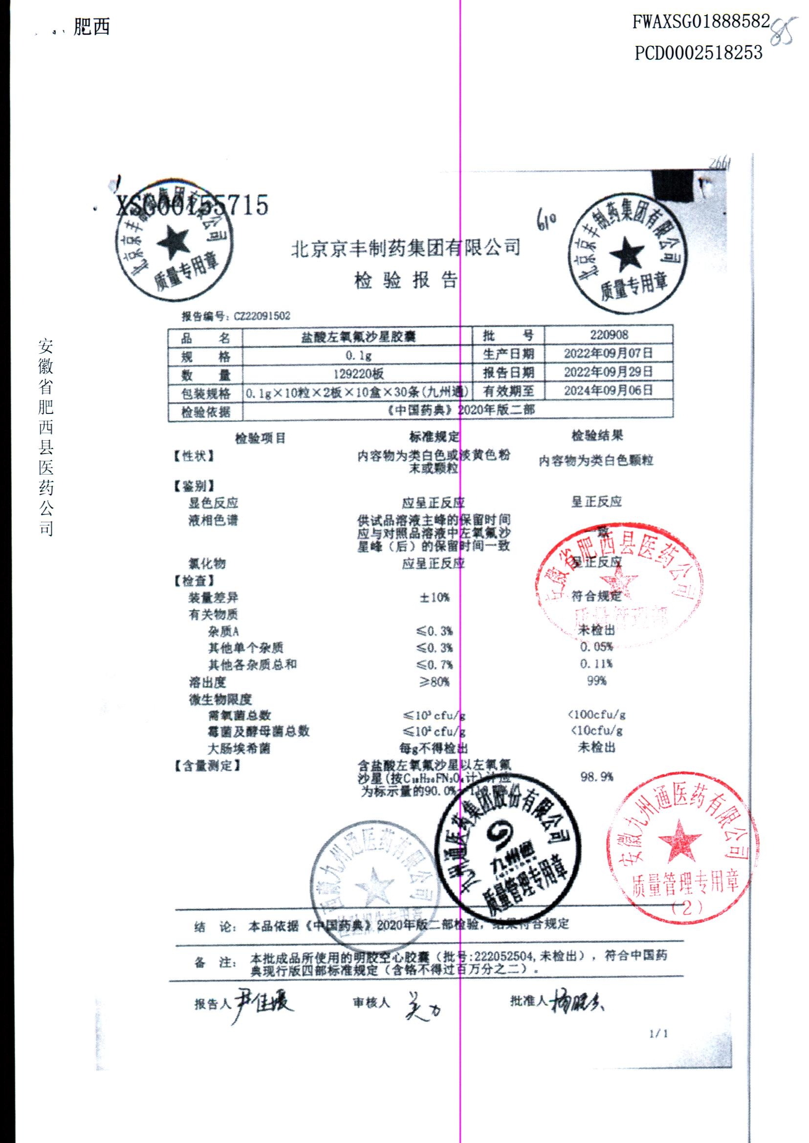 盐酸左氧氟沙星胶囊 | 10粒/板*2板 | 220908 | 查看详情 |