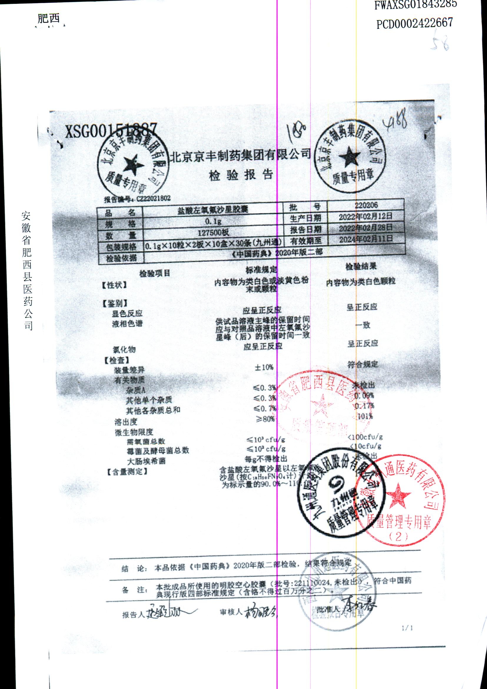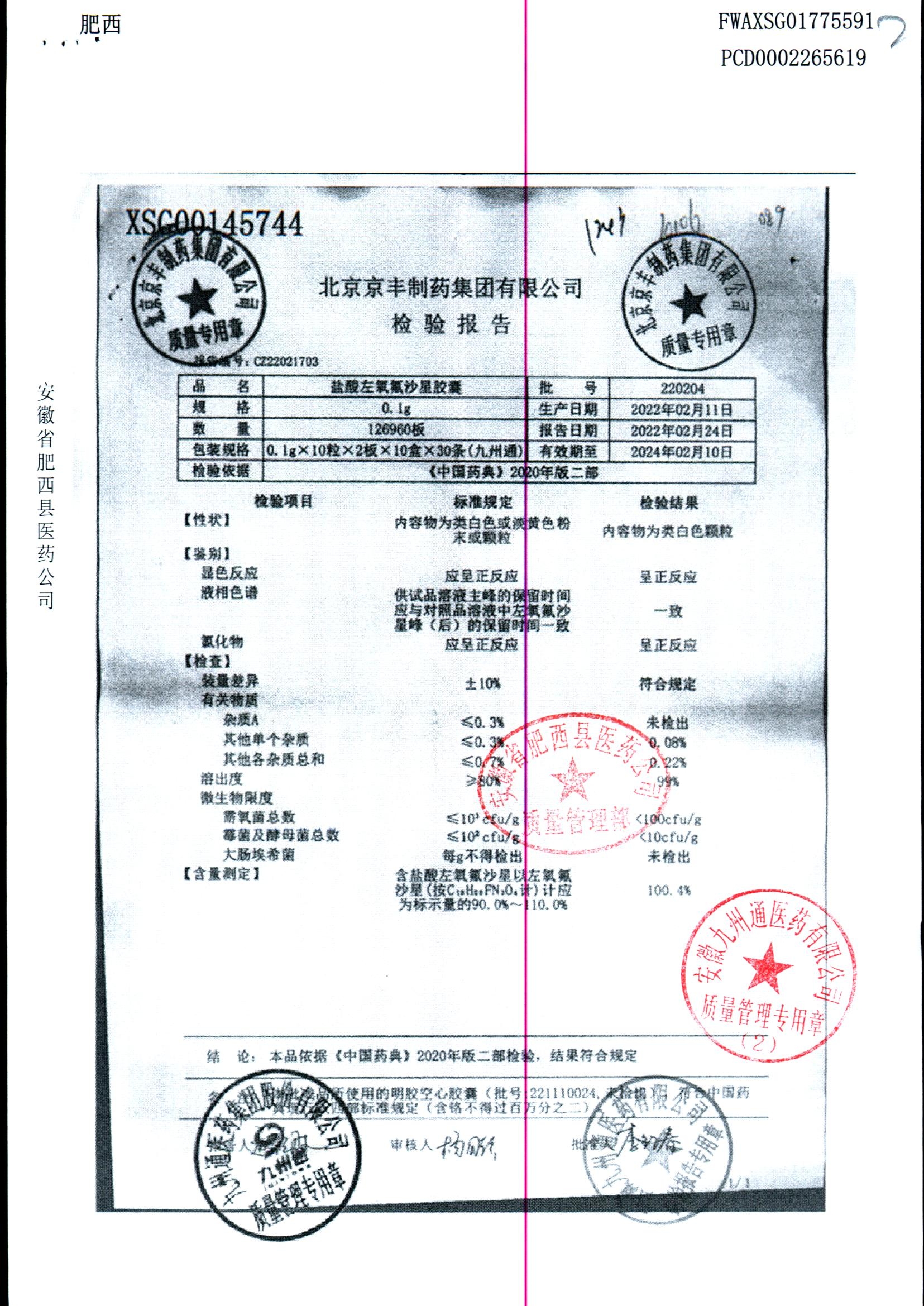 盐酸左氧氟沙星胶囊 | 10粒/板*2板 | 220206 | 查看详情 |
