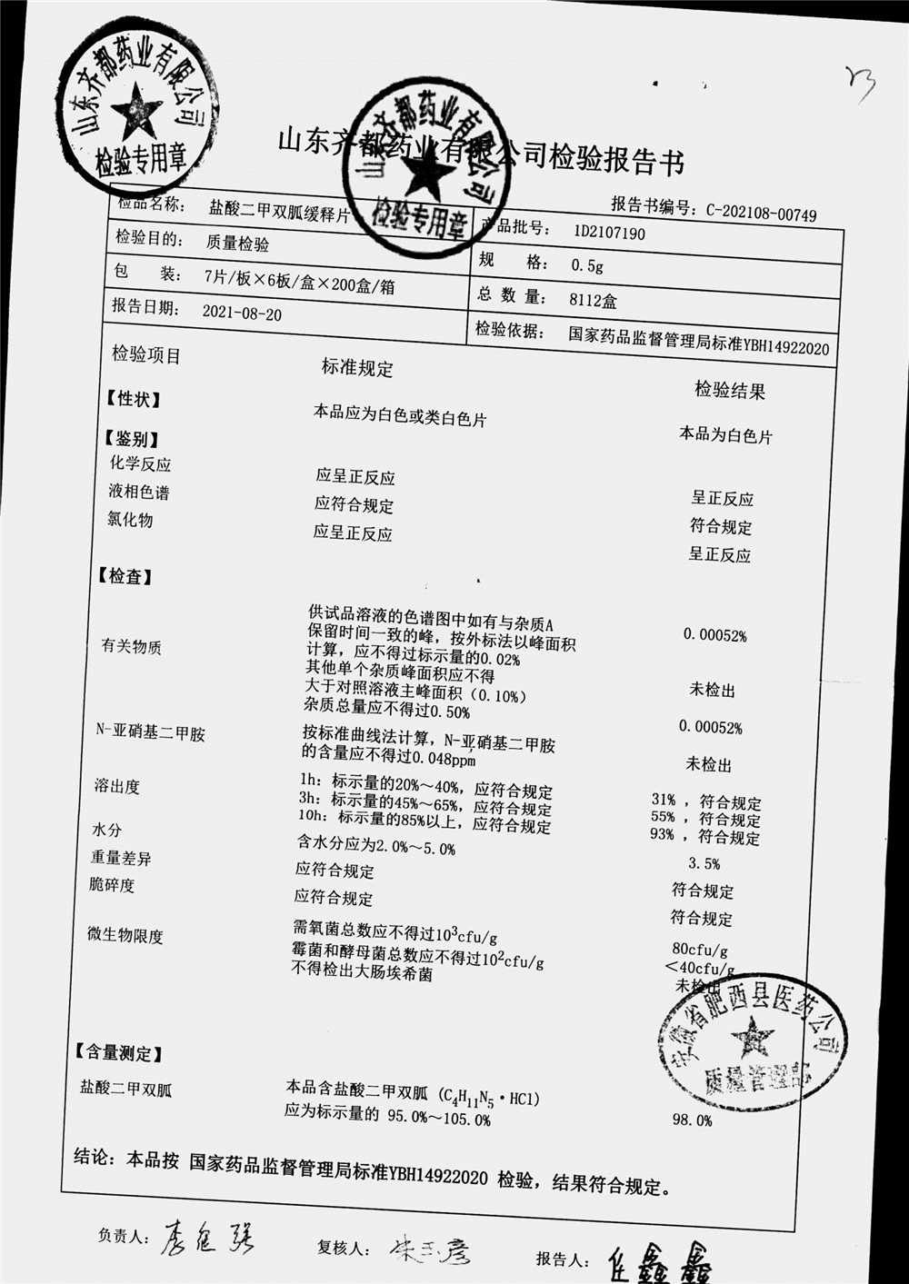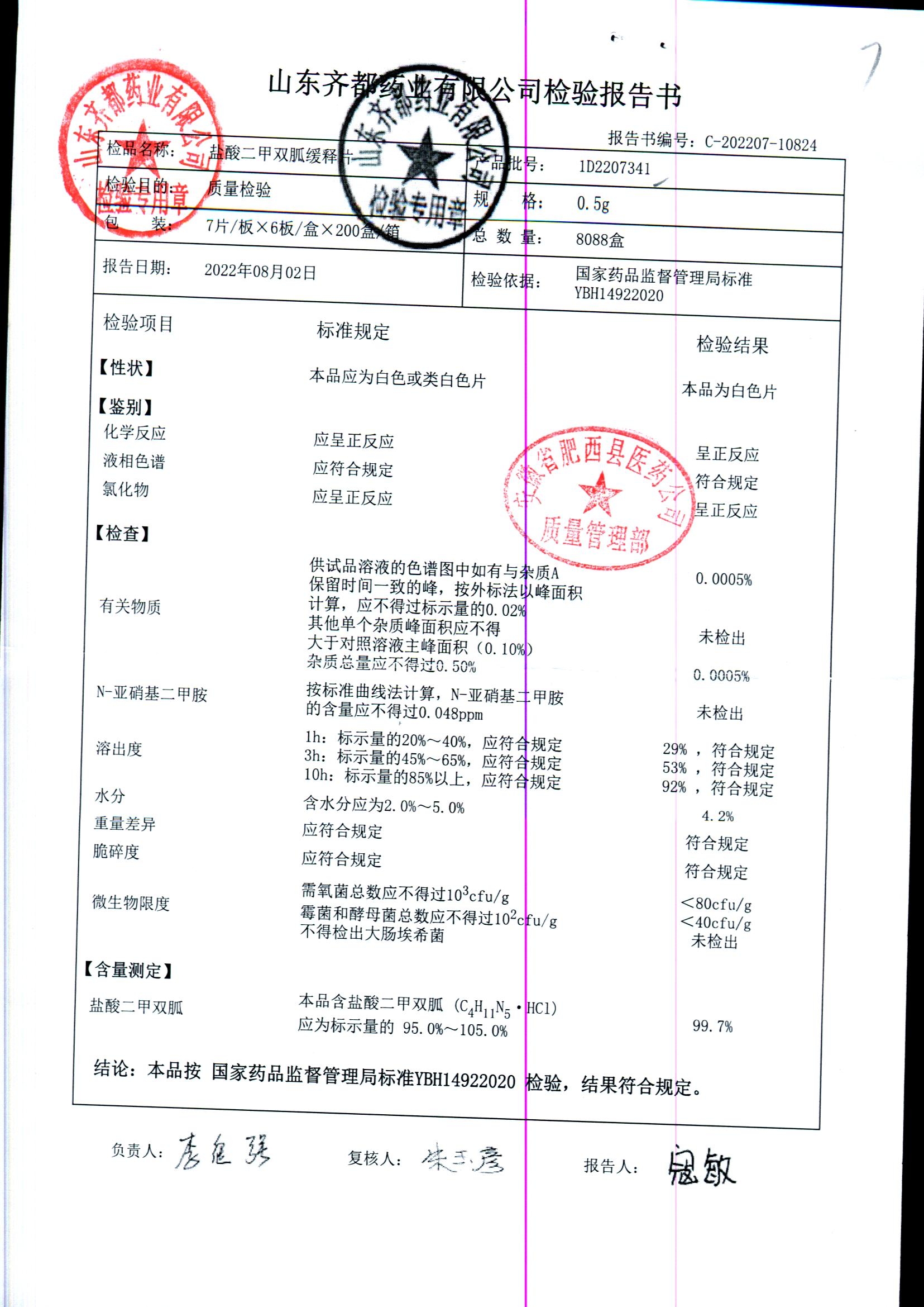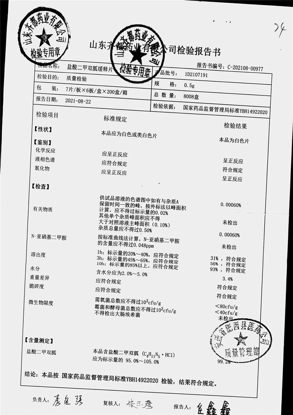 盐酸二甲双胍缓释片 | 0.5g*7片*6板 | 1D2111408 | 查看详情 |