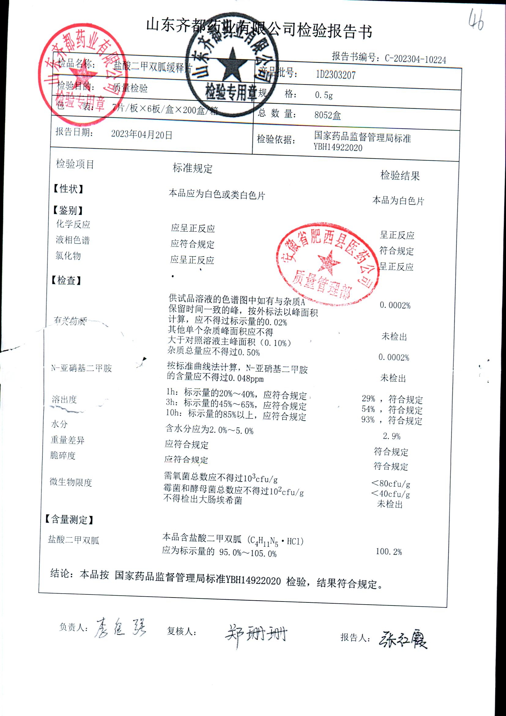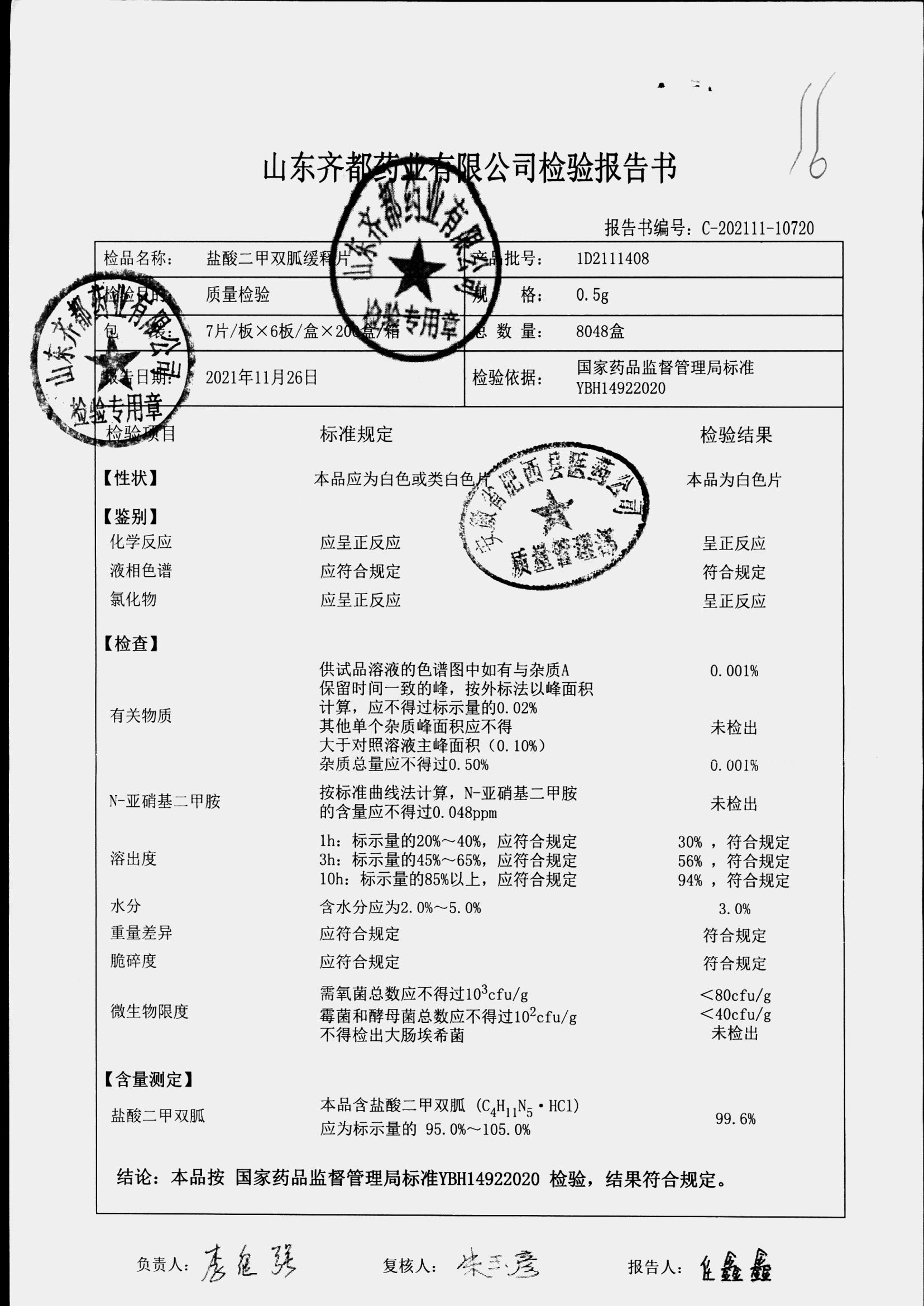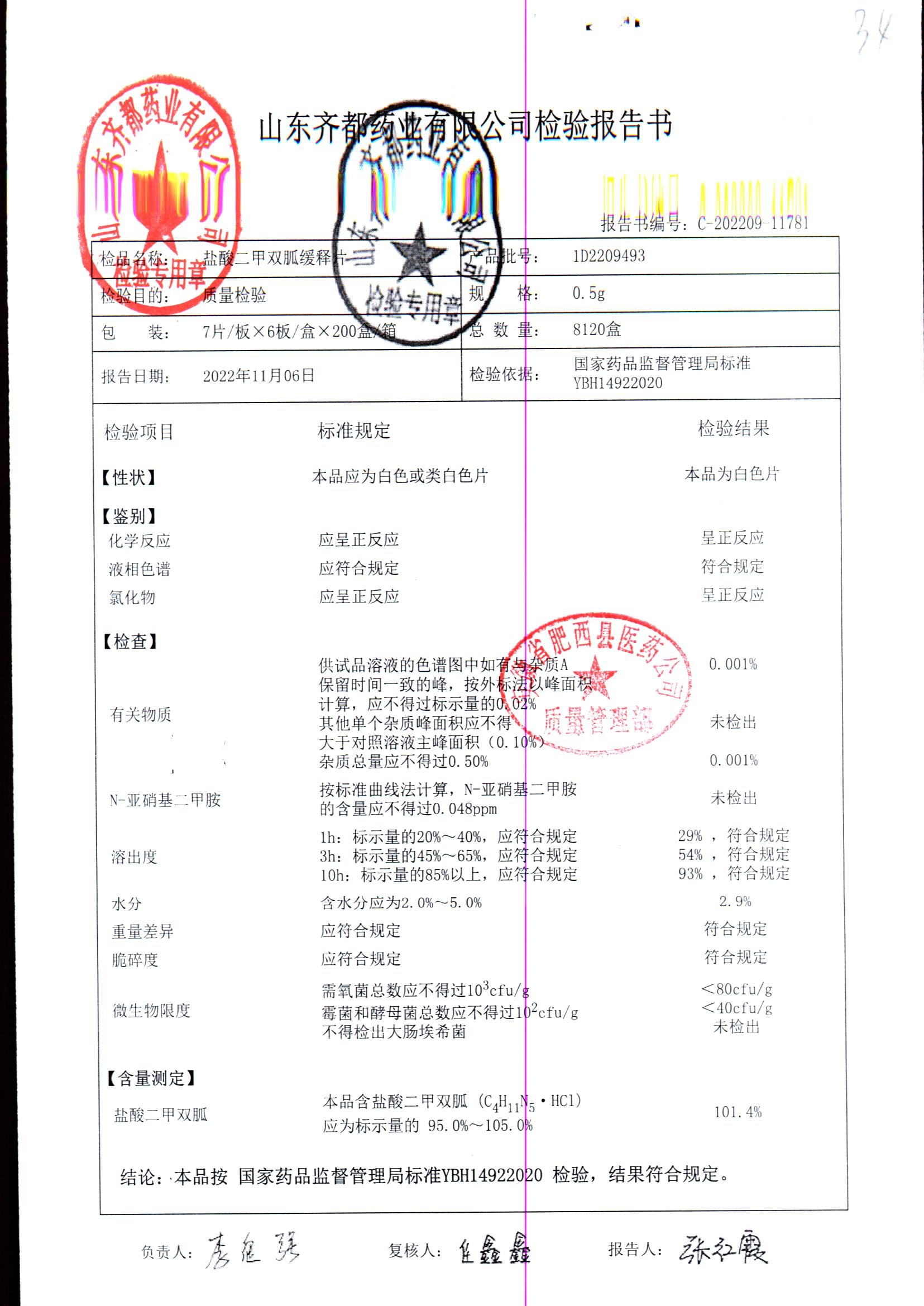 盐酸二甲双胍缓释片 | 0.5g*7片*6板 | 1D2111408 | 查看详情 |