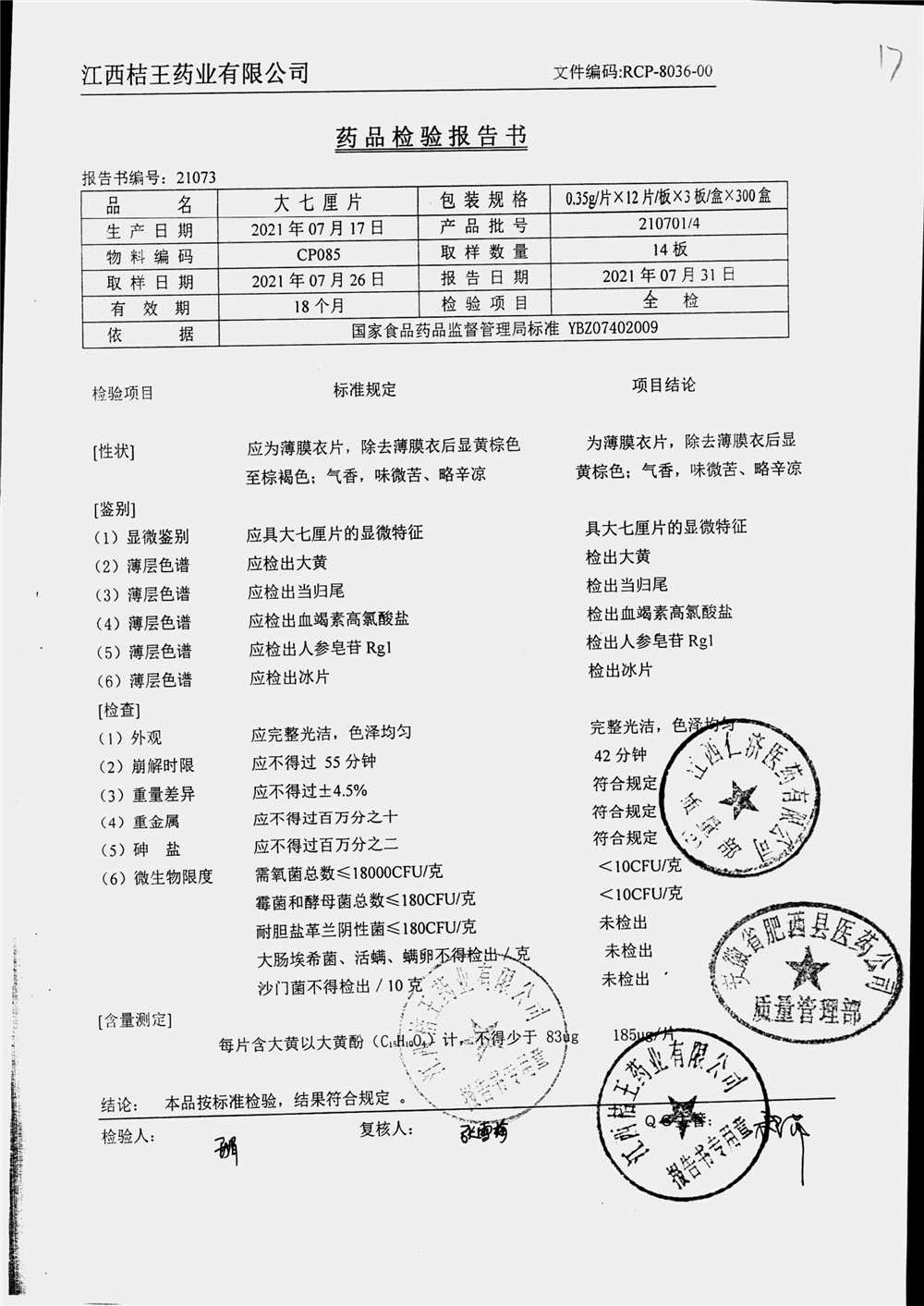 药检报告