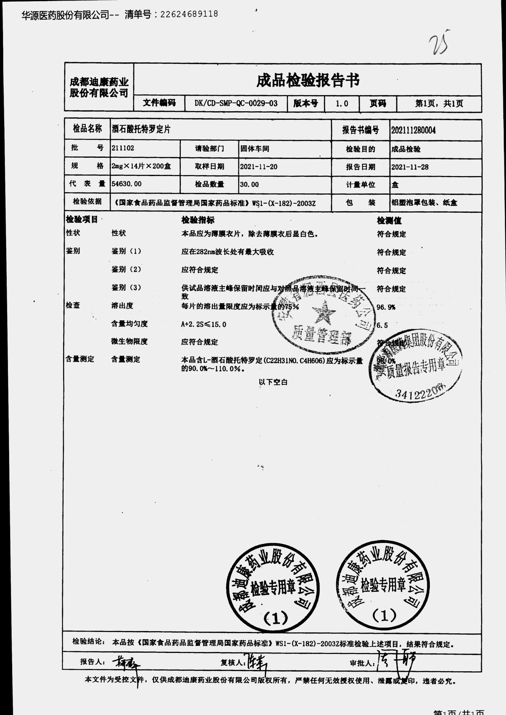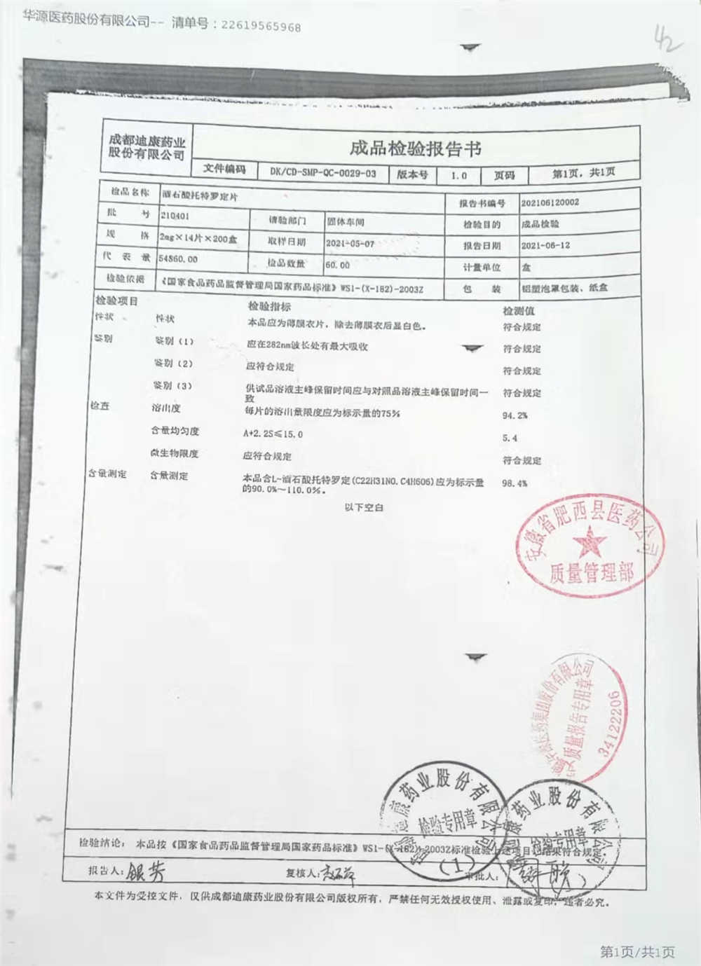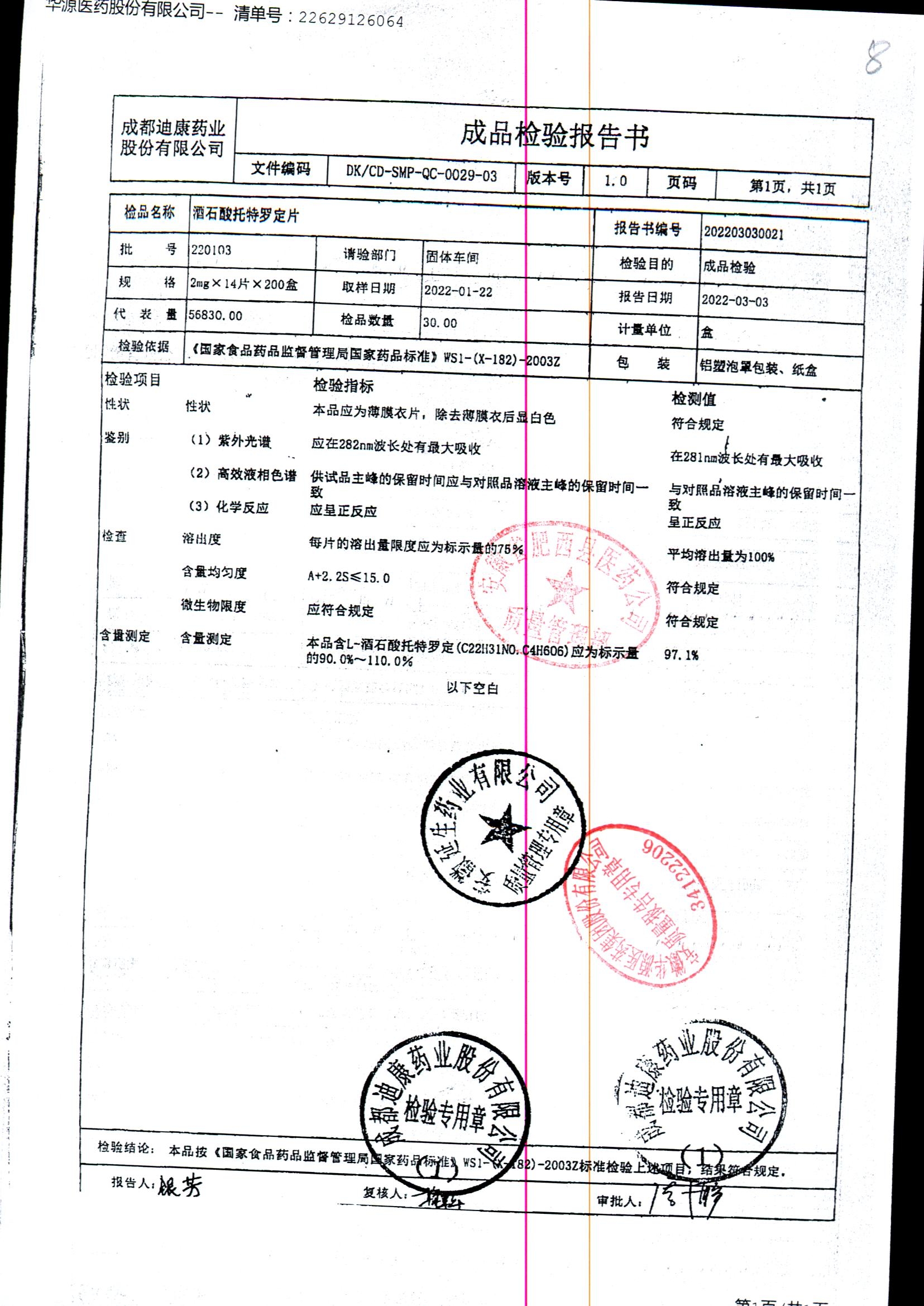 酒石酸托特罗定片 | 2mg*14片 | 210401 | 查看详情 |