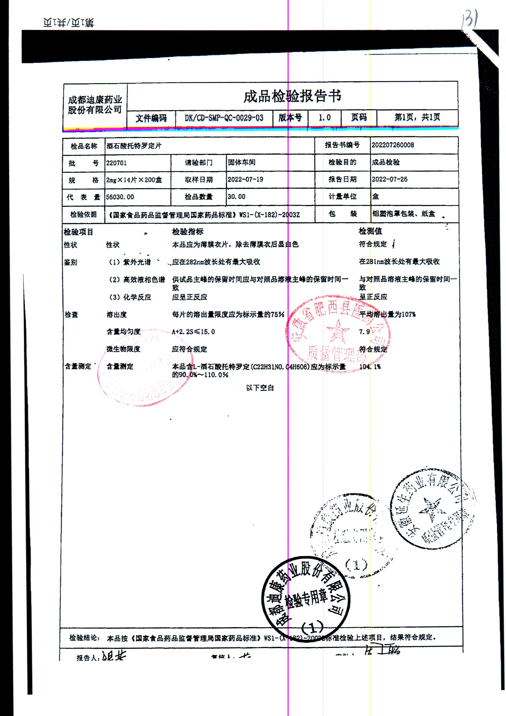 酒石酸托特罗定片 | 2mg*14片 | 220701 | 查看详情 |