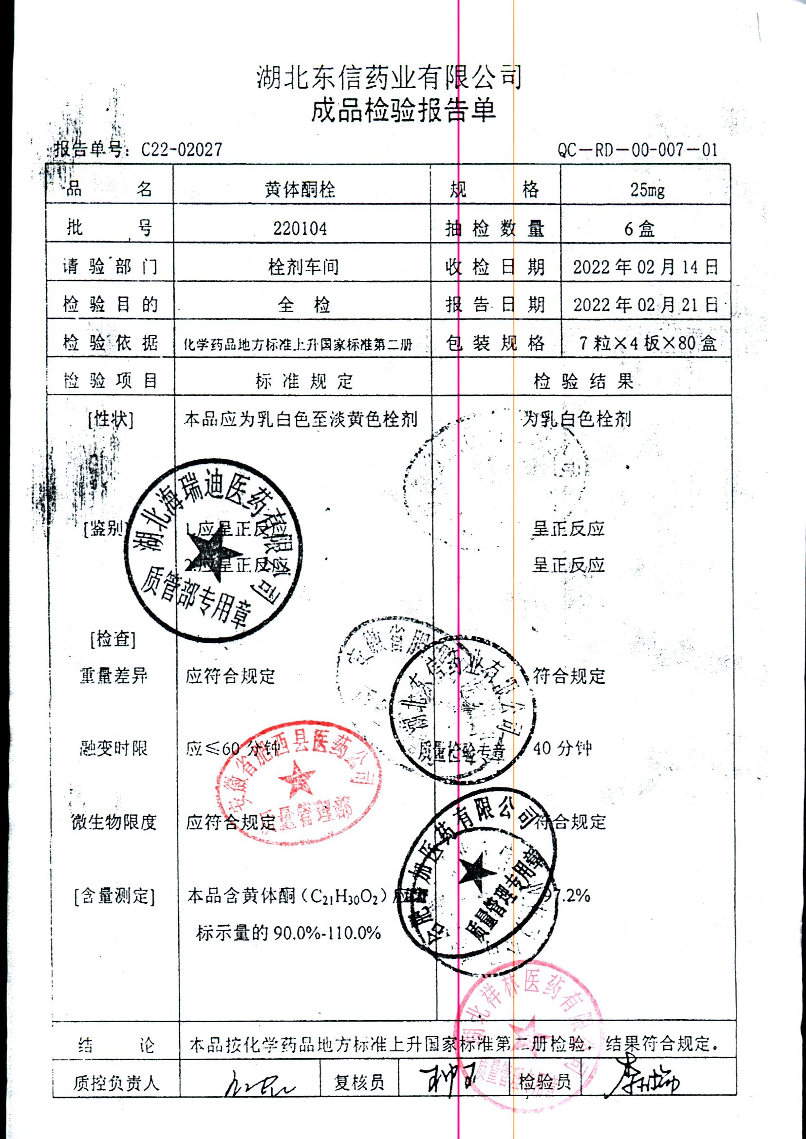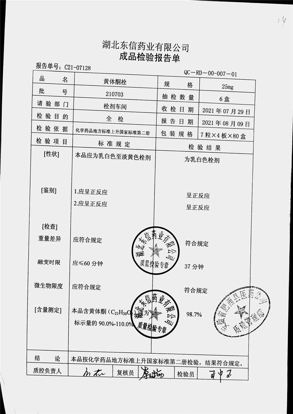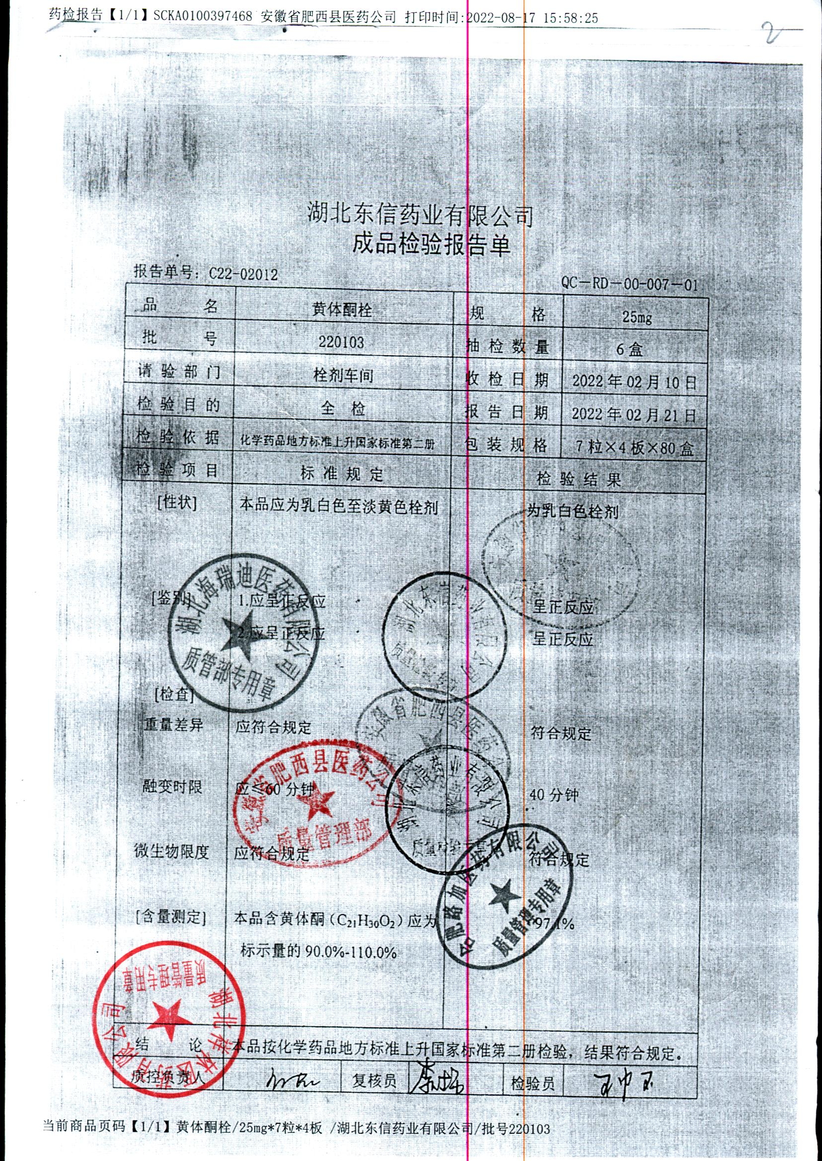 黄体酮栓 | 25mg*28粒 | 210703 | 查看详情 |