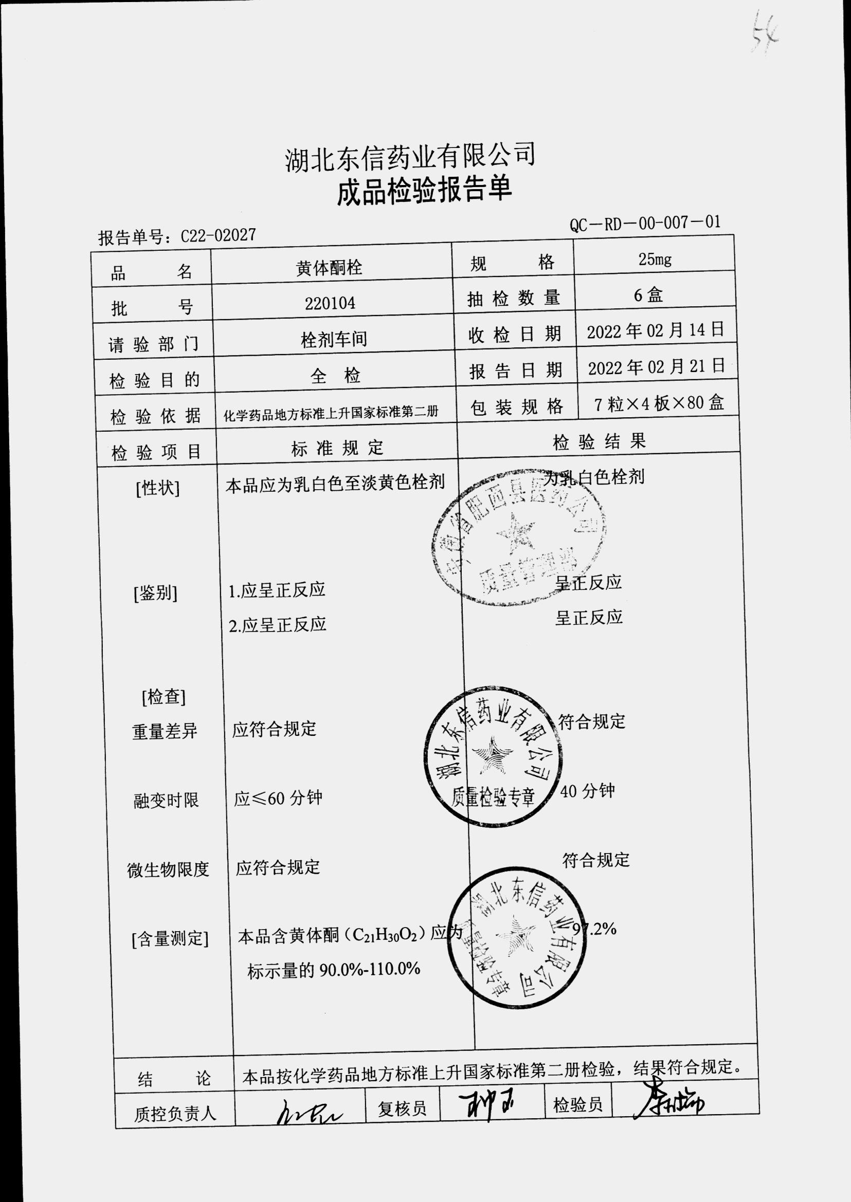 黄体酮栓 | 25mg*28粒 | 220104 | 查看详情 |