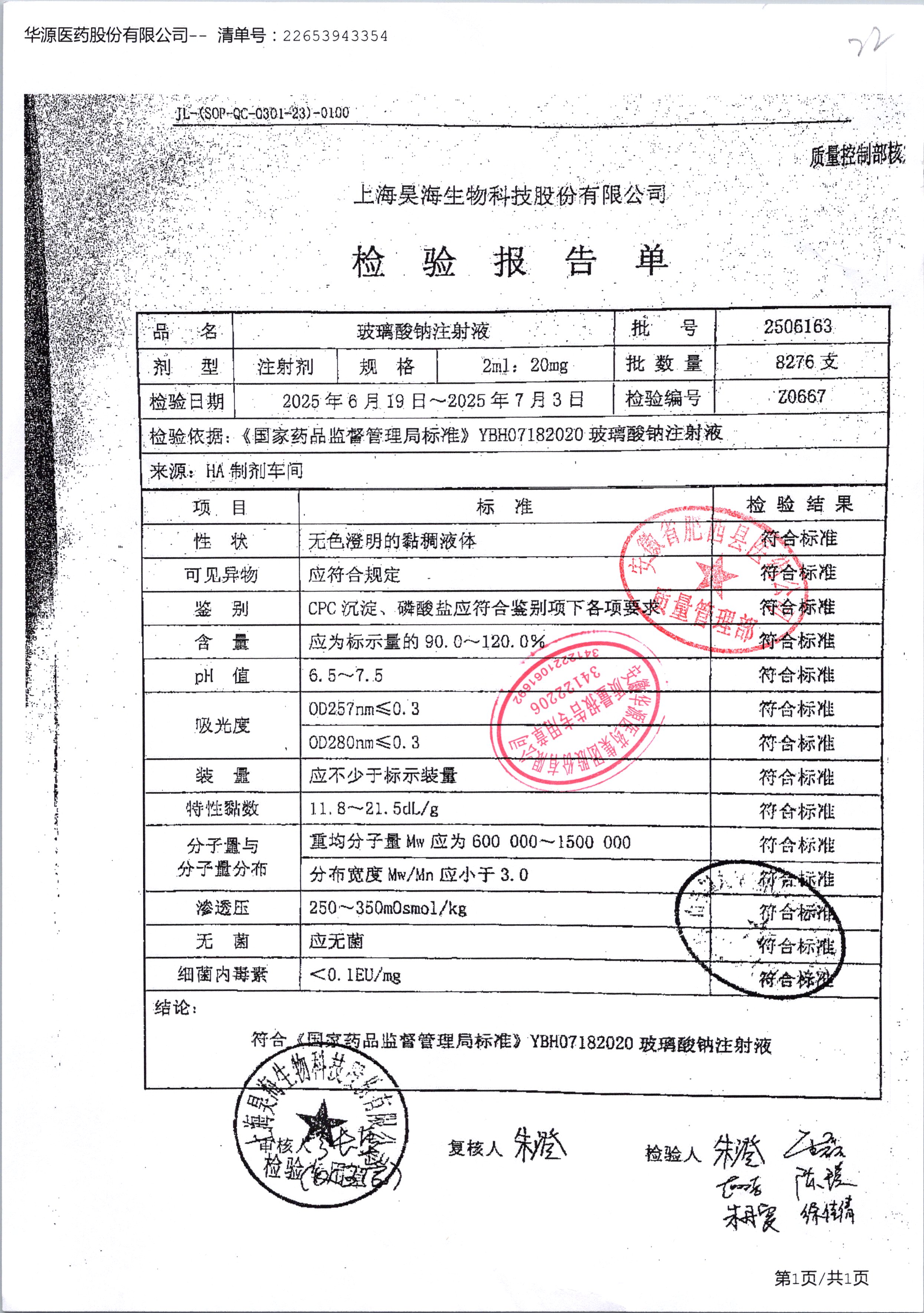 | 玻璃酸钠注射液 | 2.5ml:25mg*1支 | 2112244 | 查看详情 |