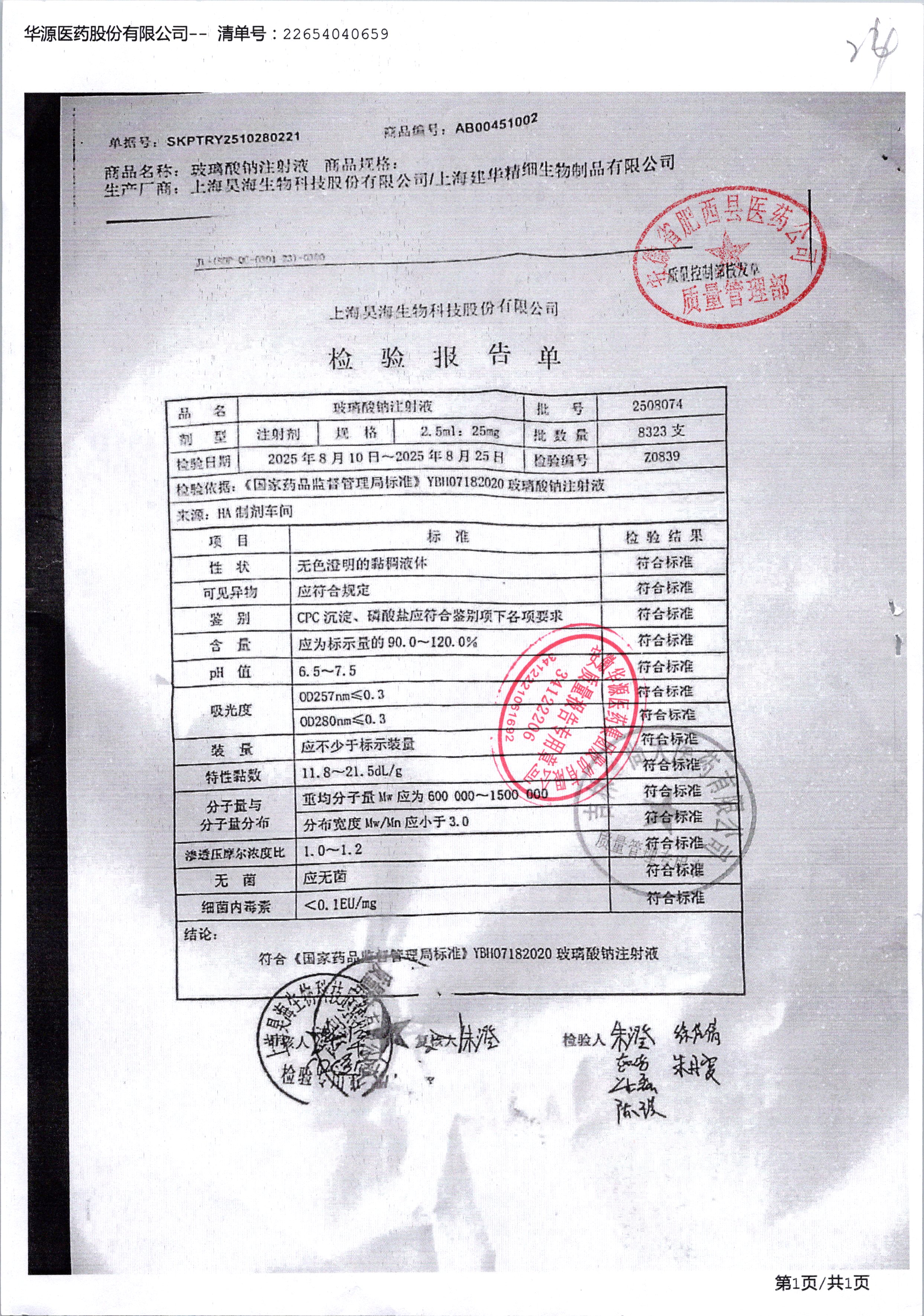 | 玻璃酸钠注射液 | 2.5ml:25mg*1支 | 2208092 | 查看详情 |