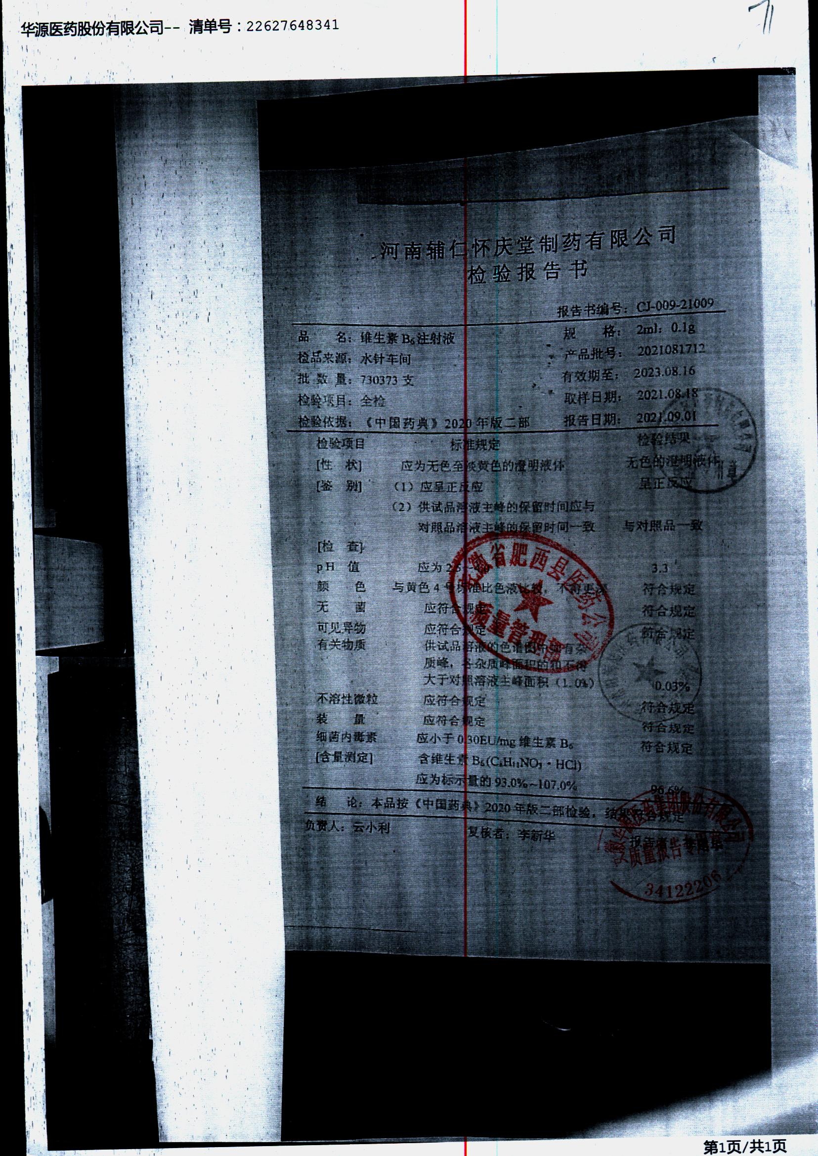 维生素B6注射液 | 2ml:0.1g*10支 | 2021081212 | 查看详情 |