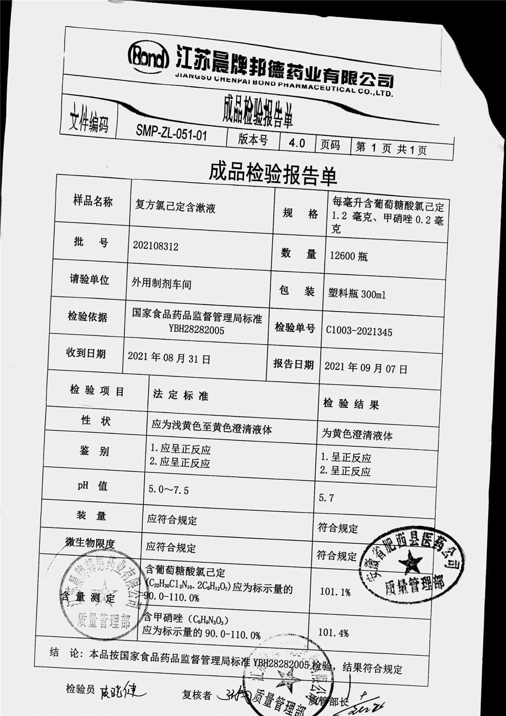药检报告