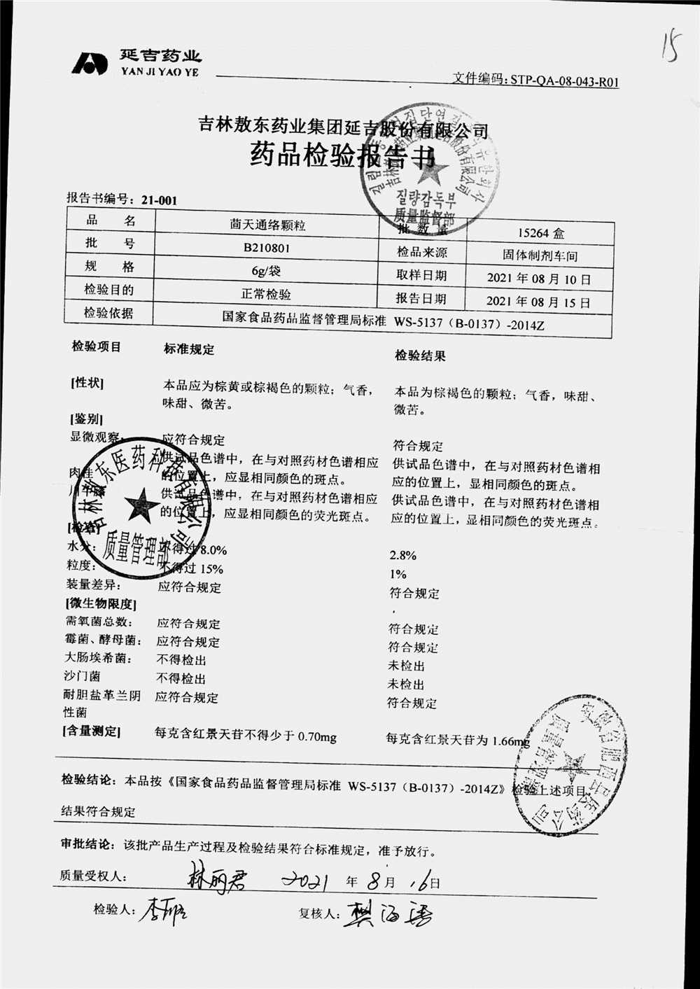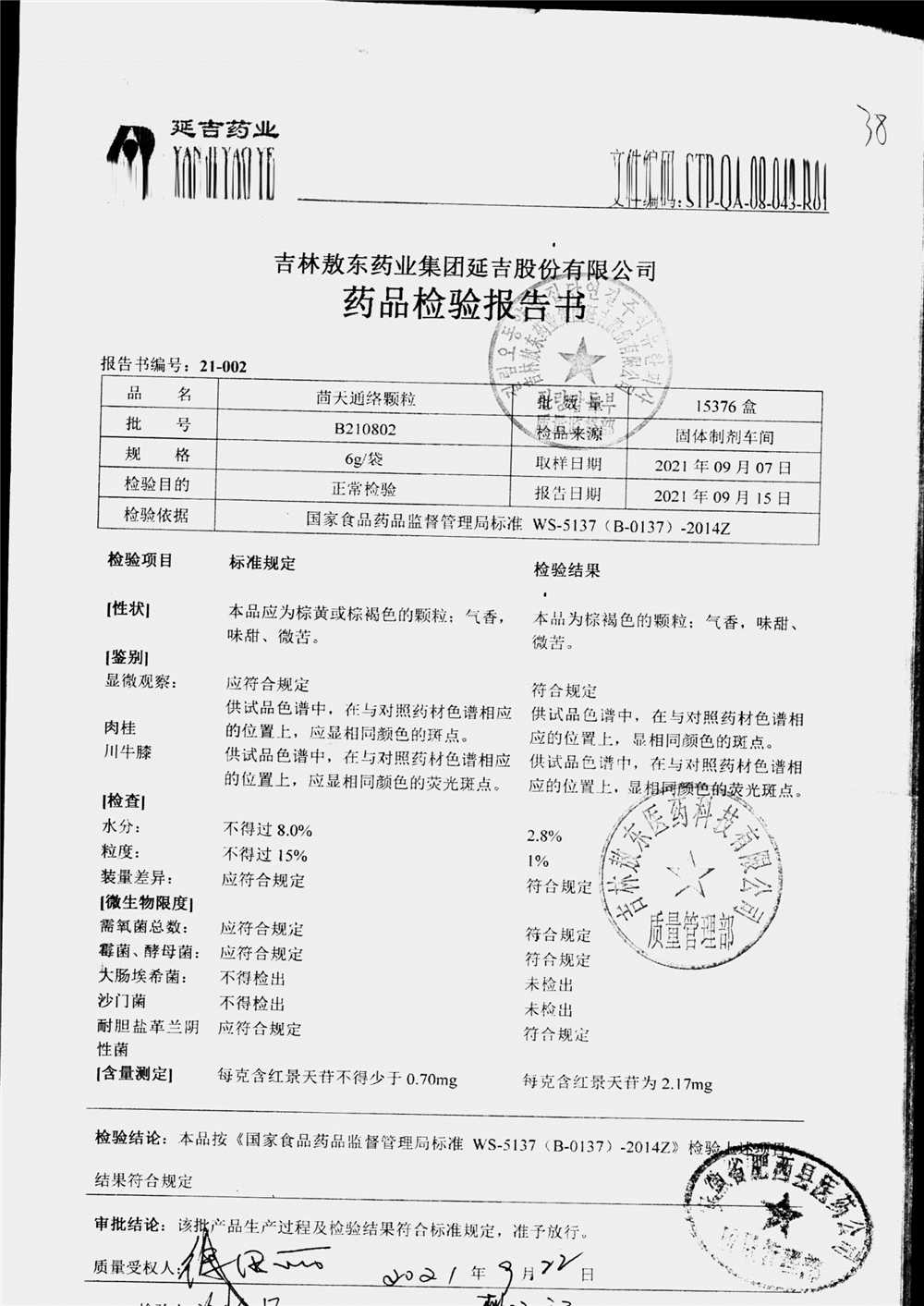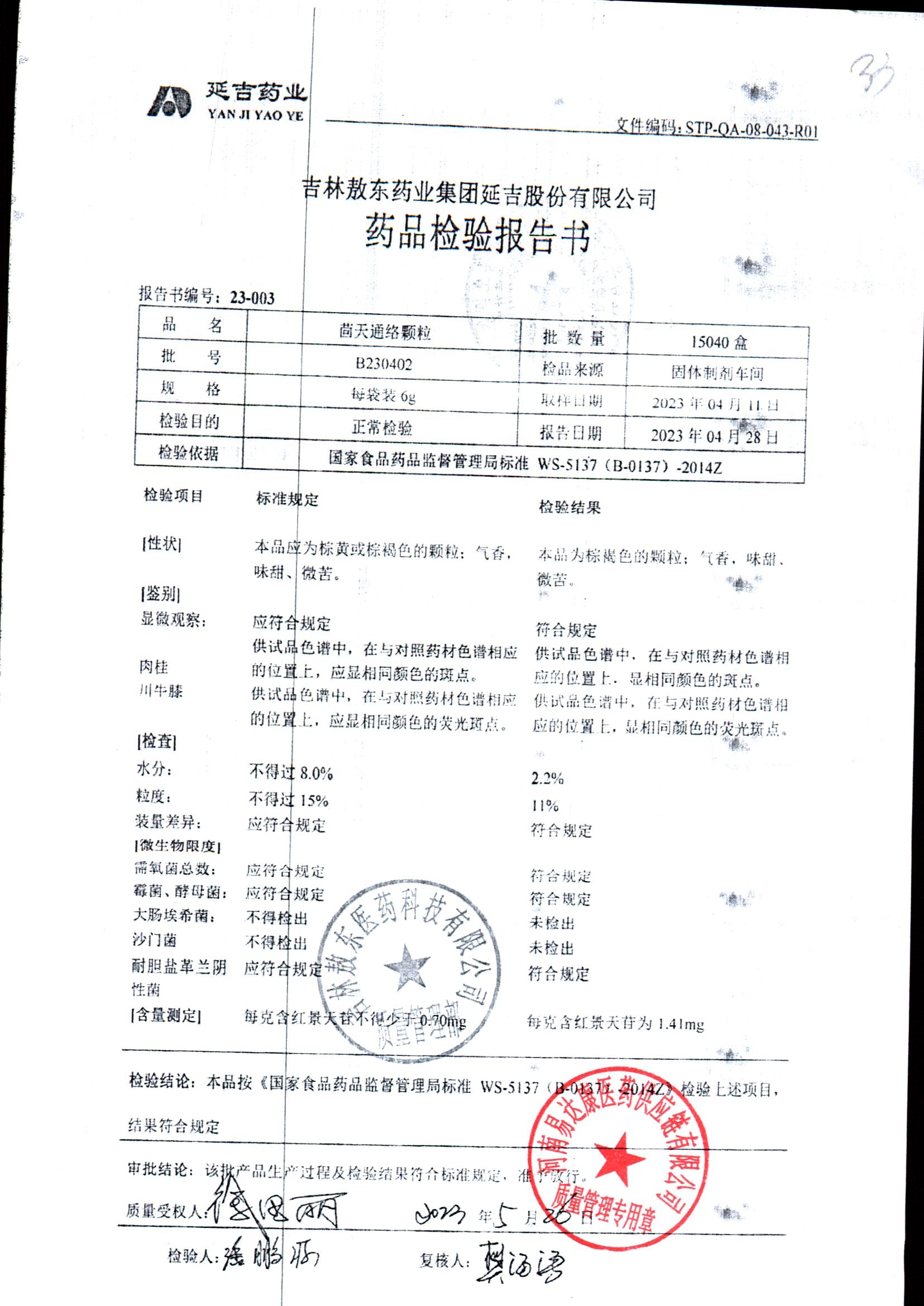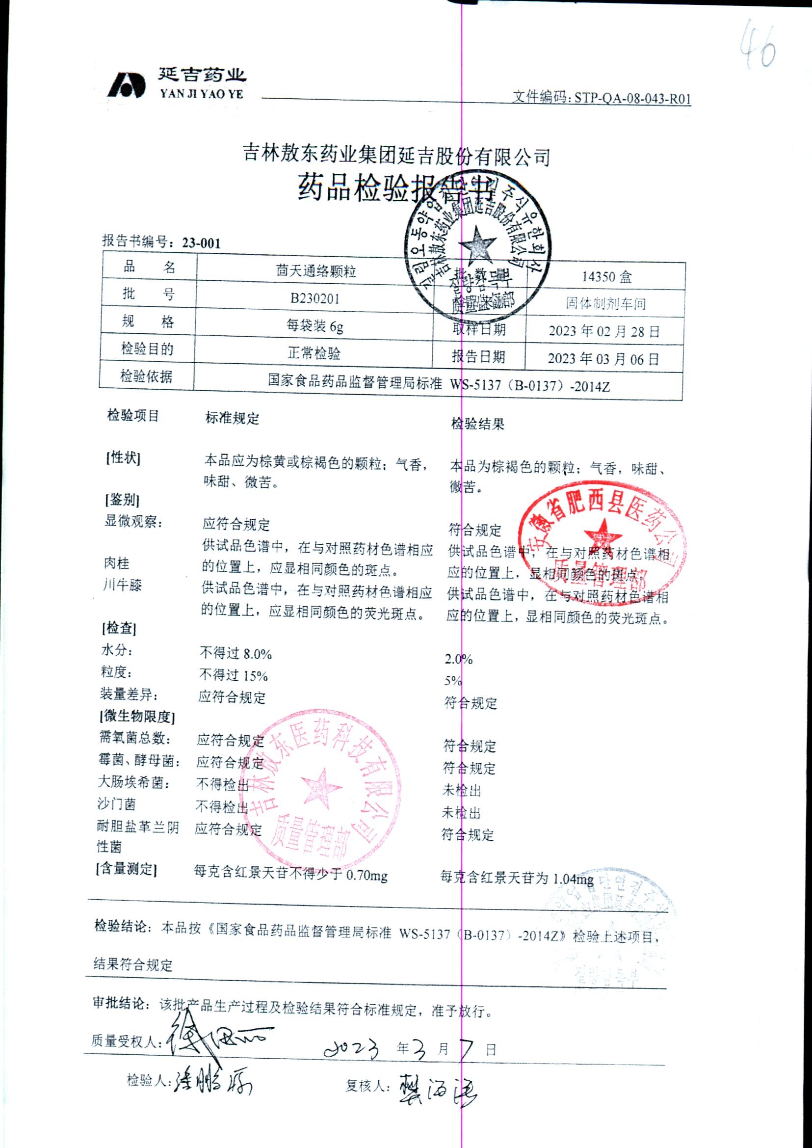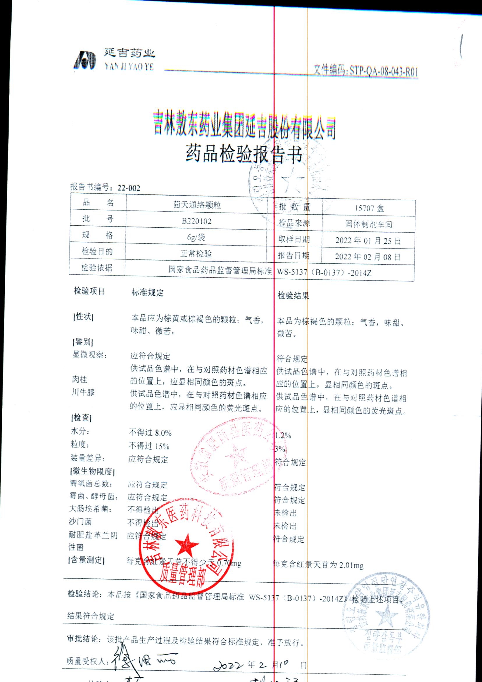 名称 | 规格 | 批号 | 药检报告 |