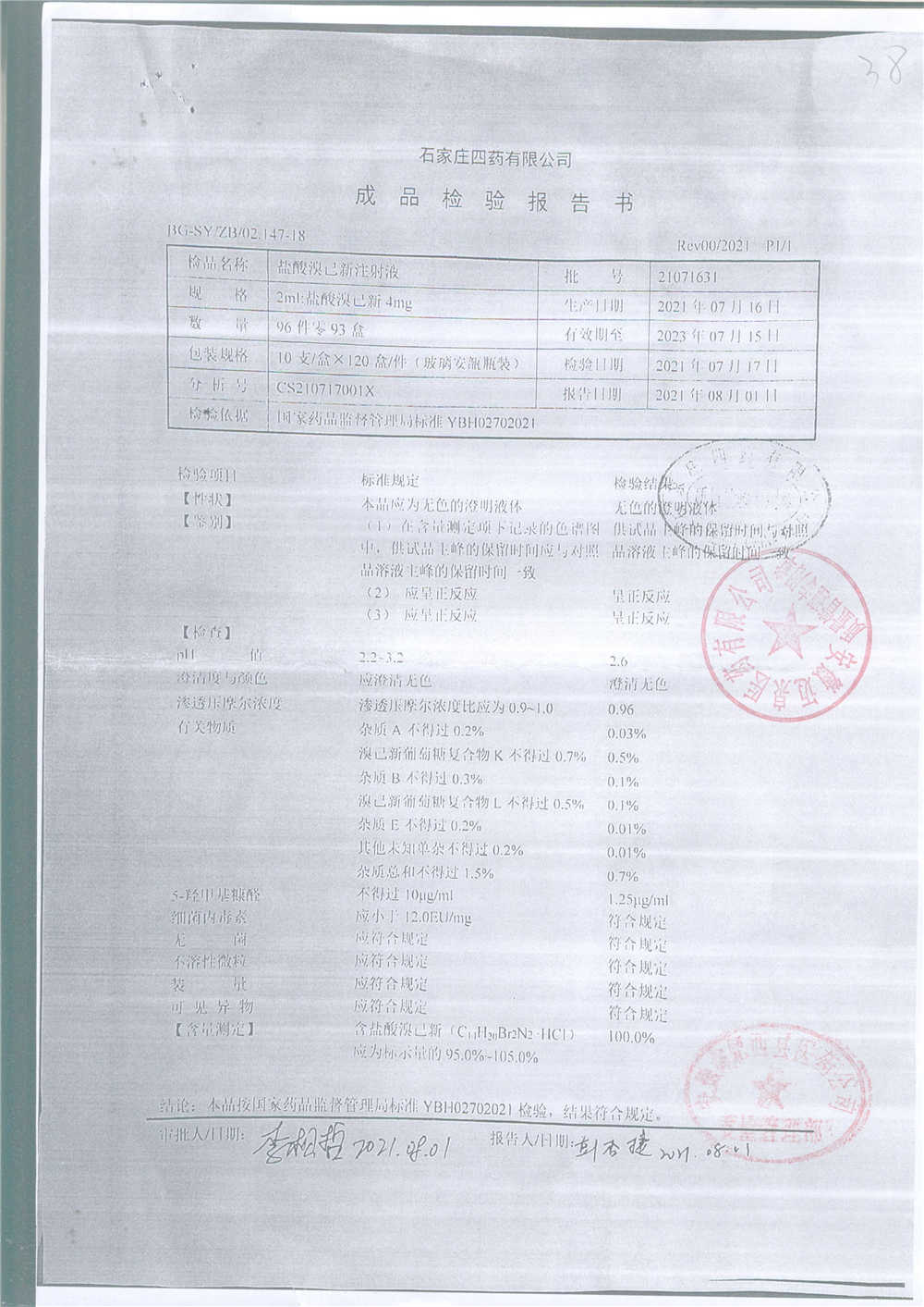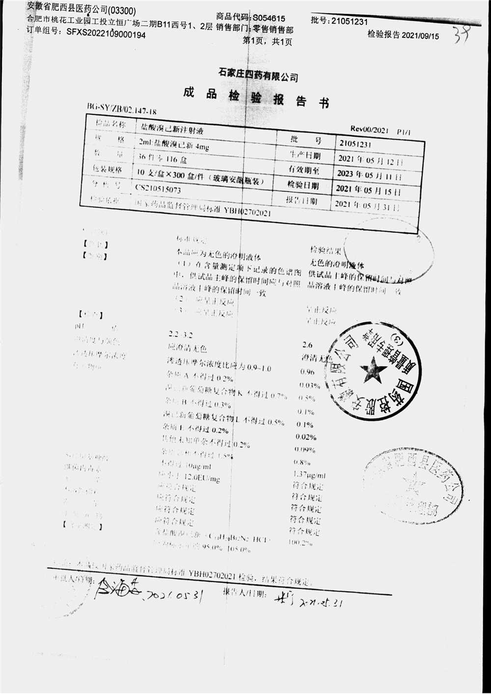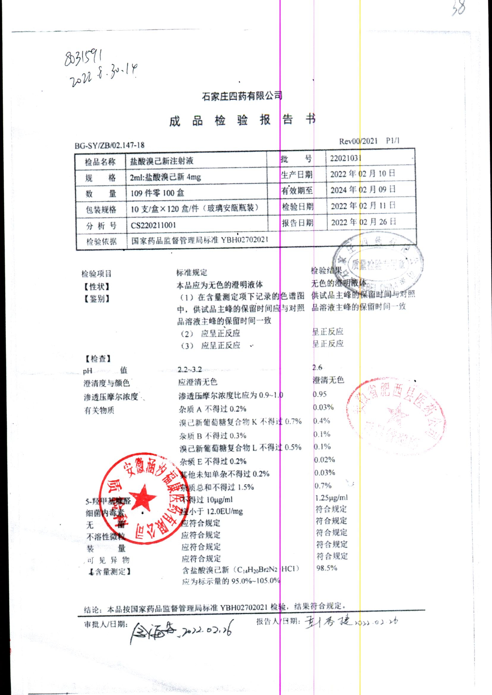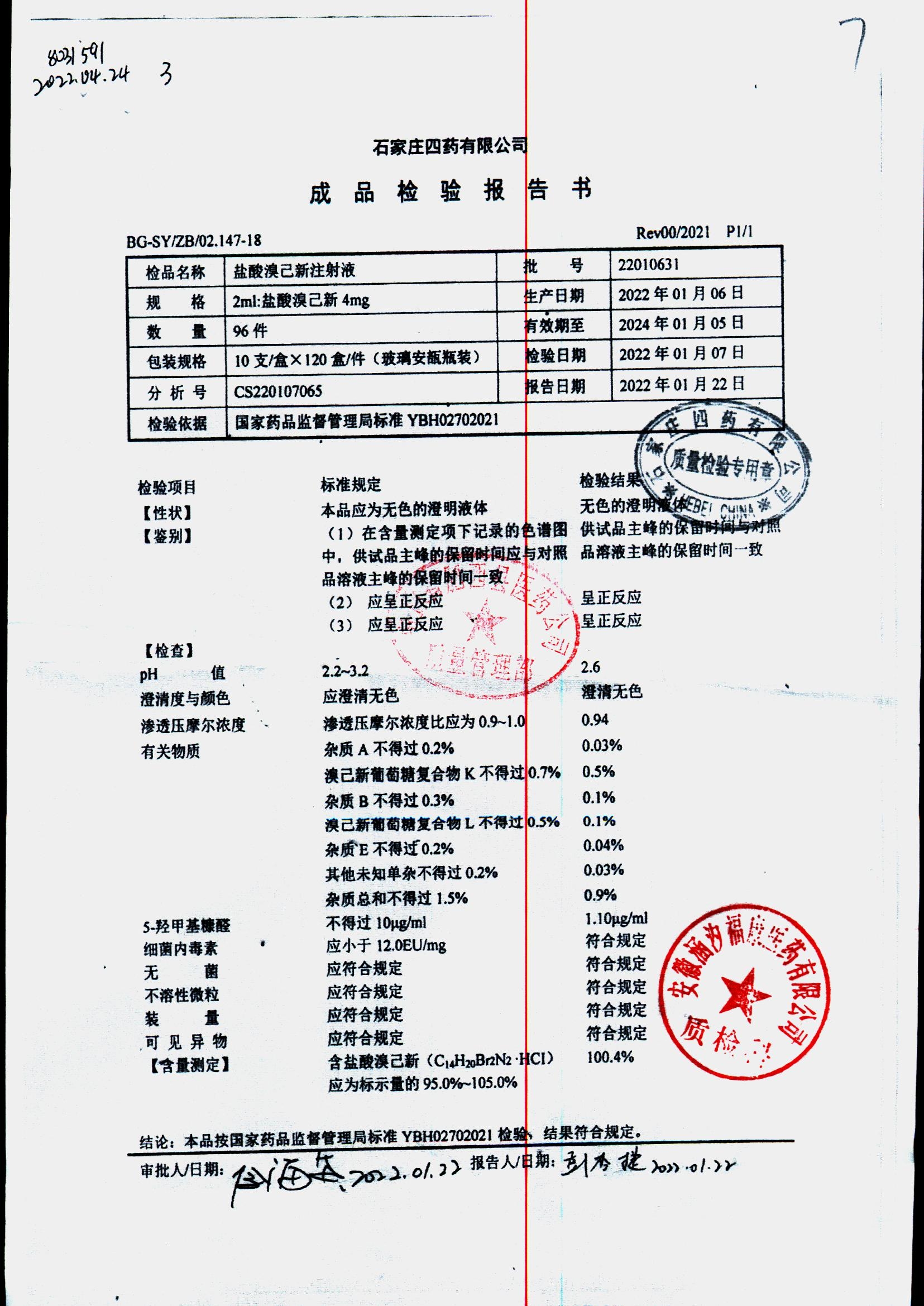 盐酸溴己新注射液 | 2ml:4mg *10支 | 21051231 | 查看详情 |