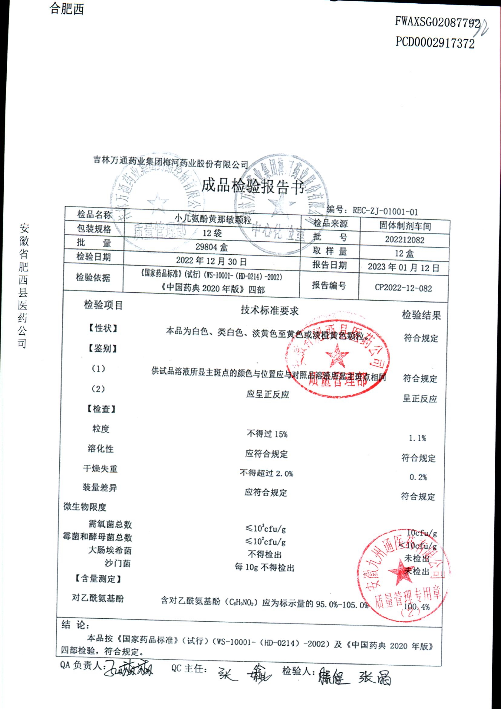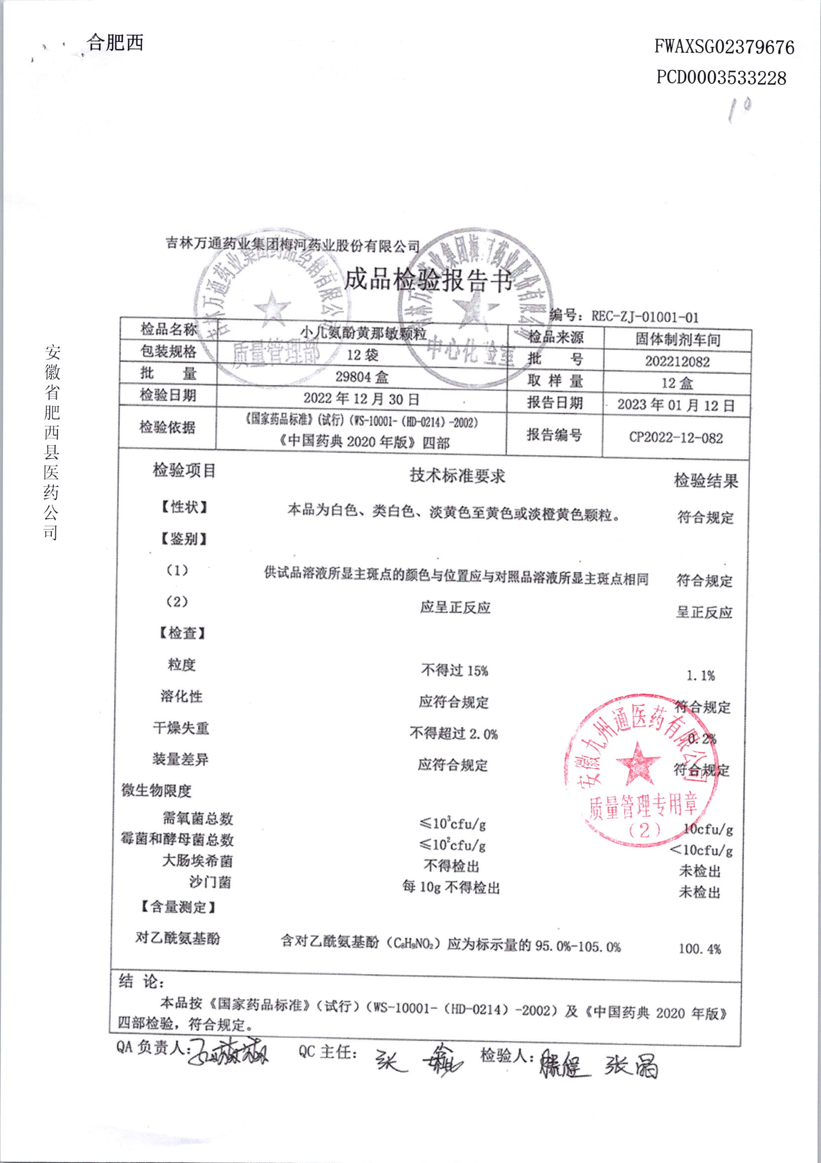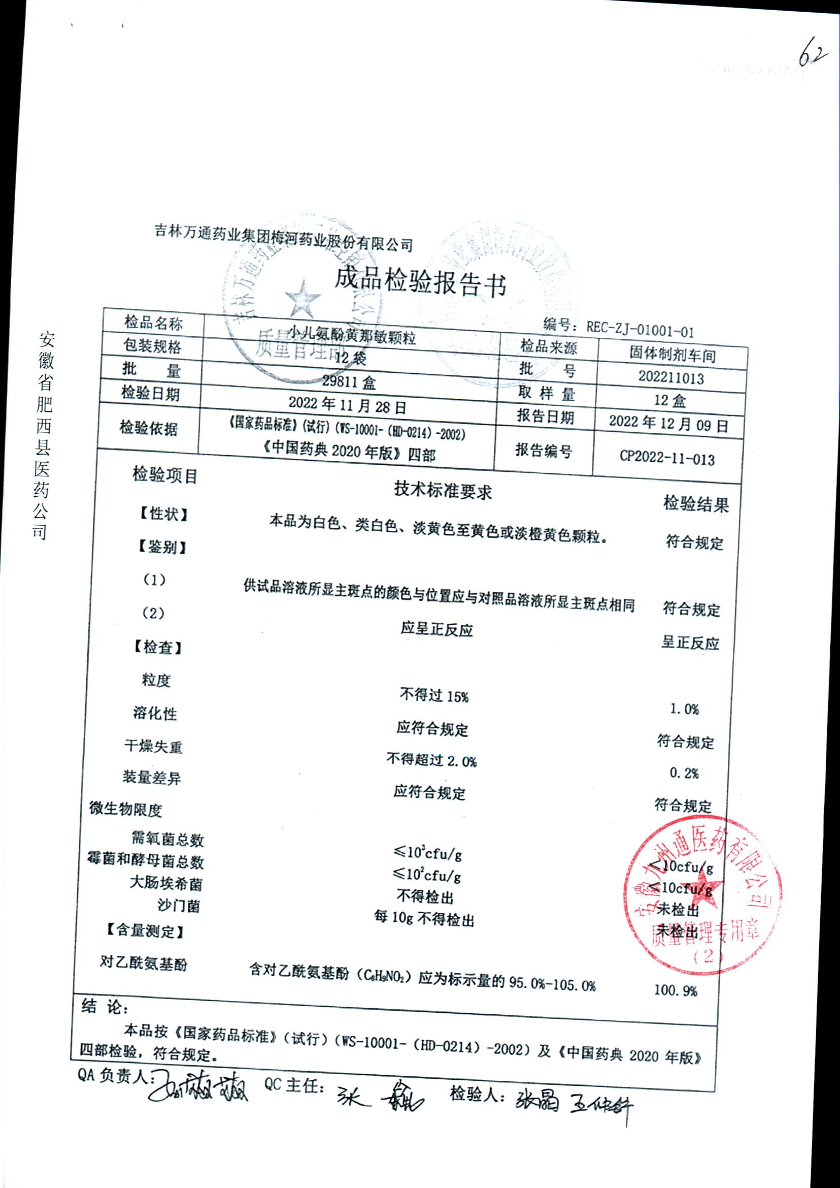 小儿氨酚黄那敏颗粒 | 6g/袋*12袋 | 202211013 | 查看详情 |