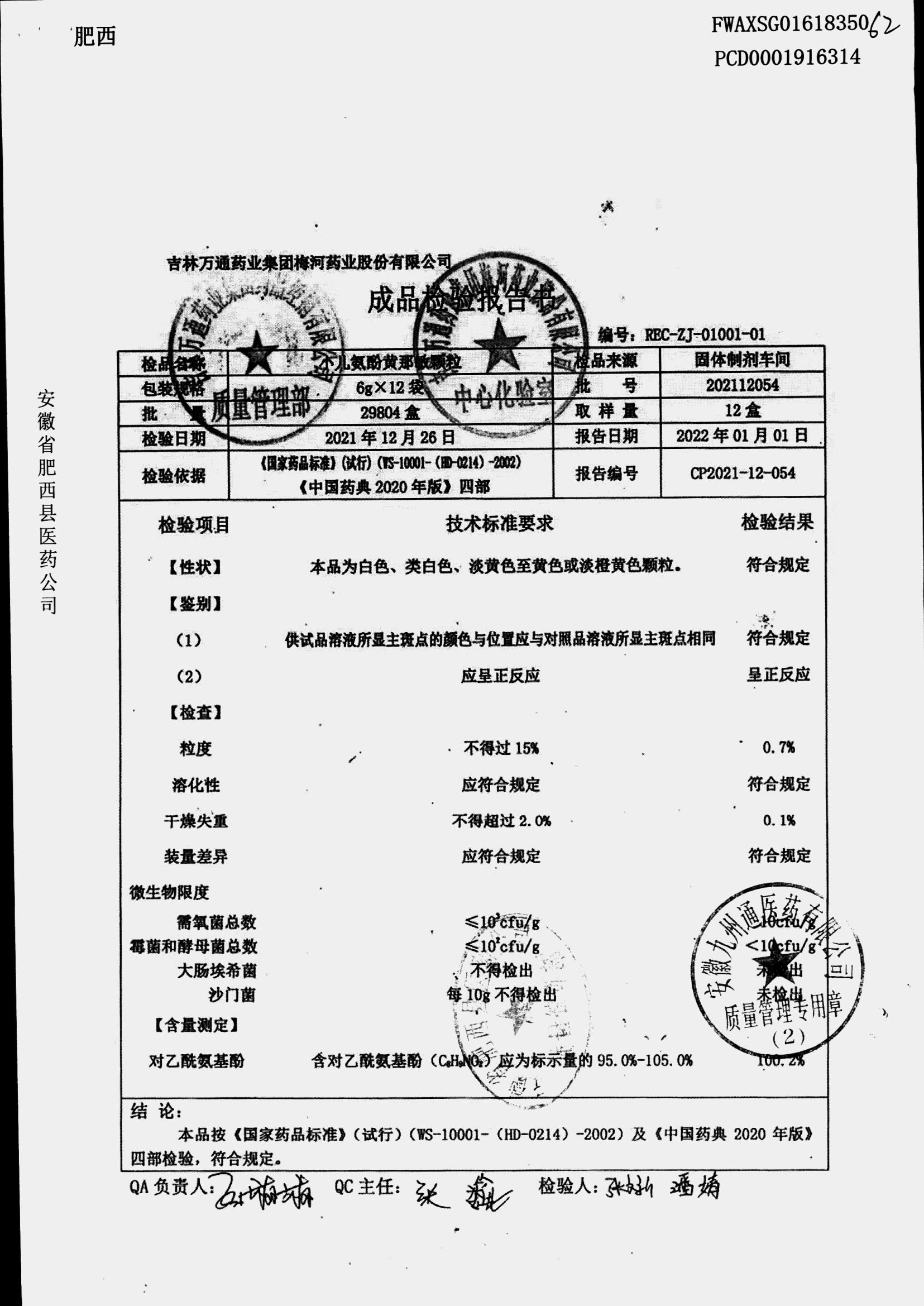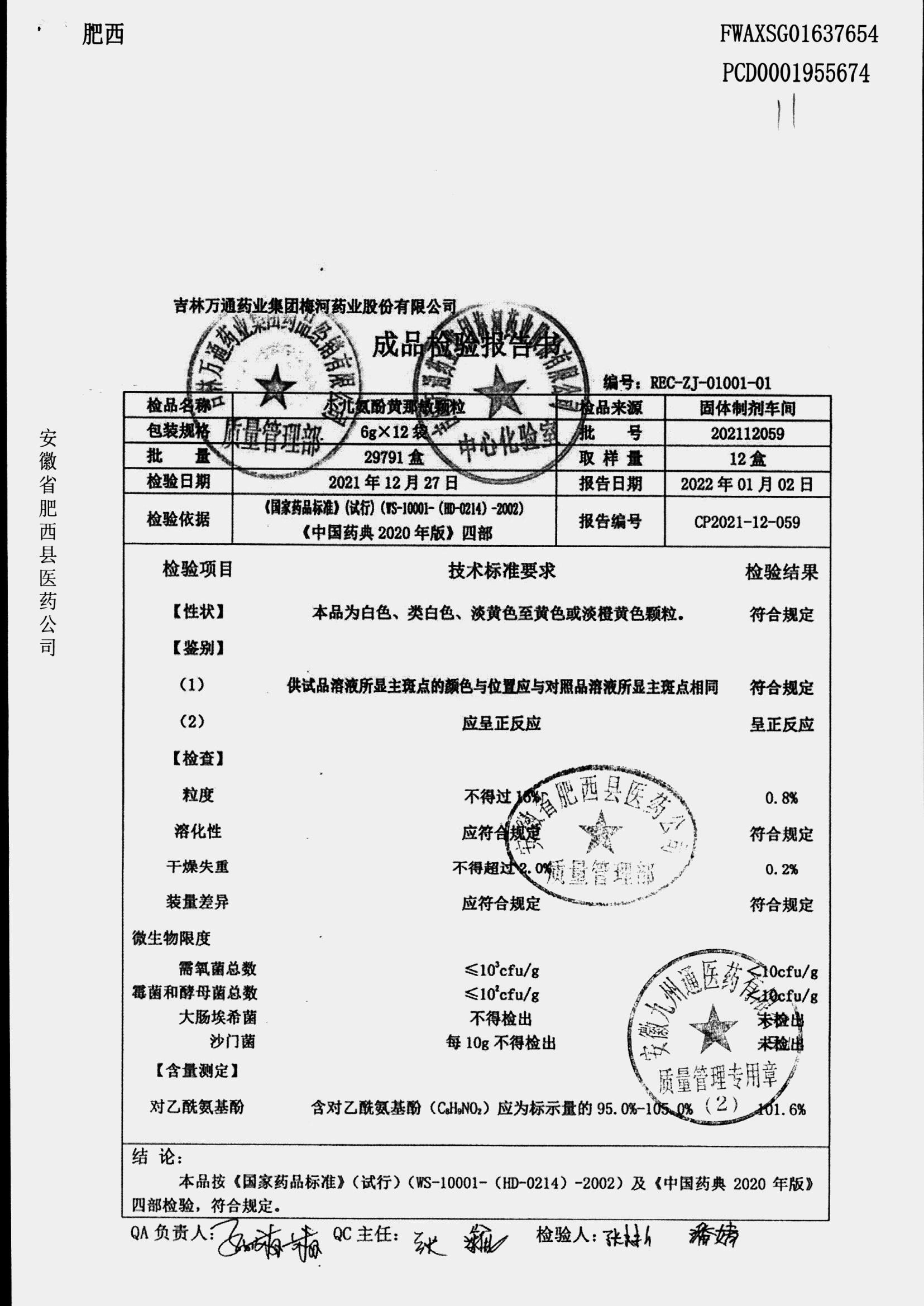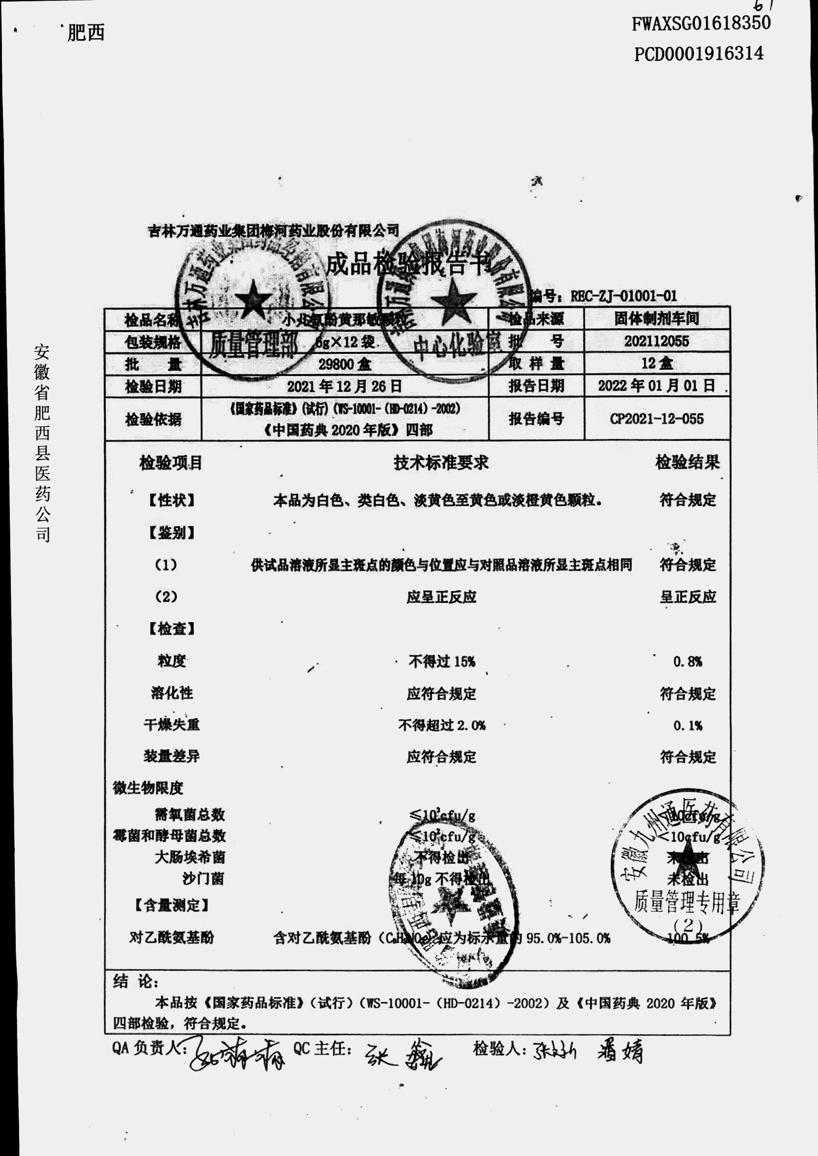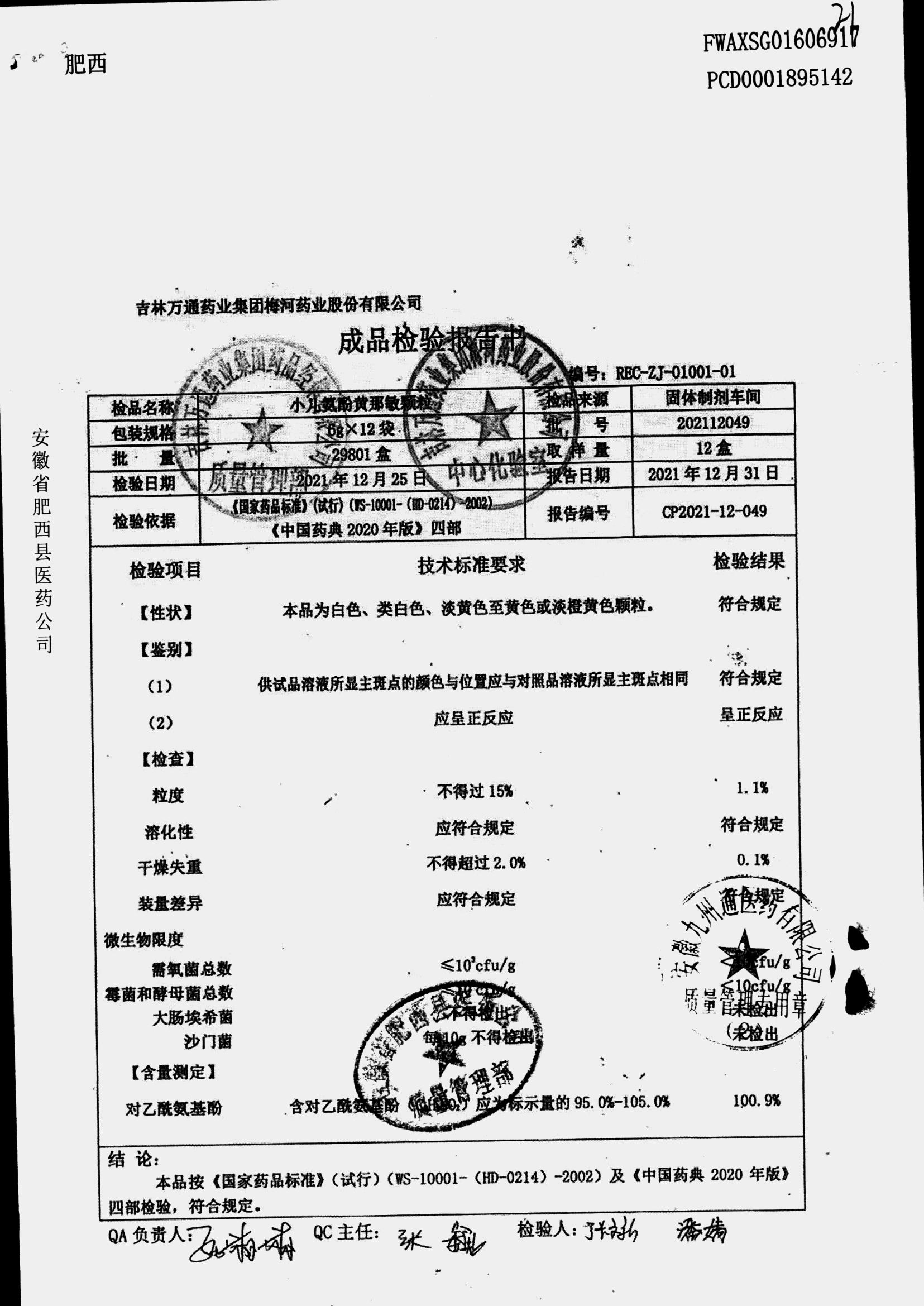 小儿氨酚黄那敏颗粒 | 6g/袋*12袋 | 202211013 | 查看详情 |