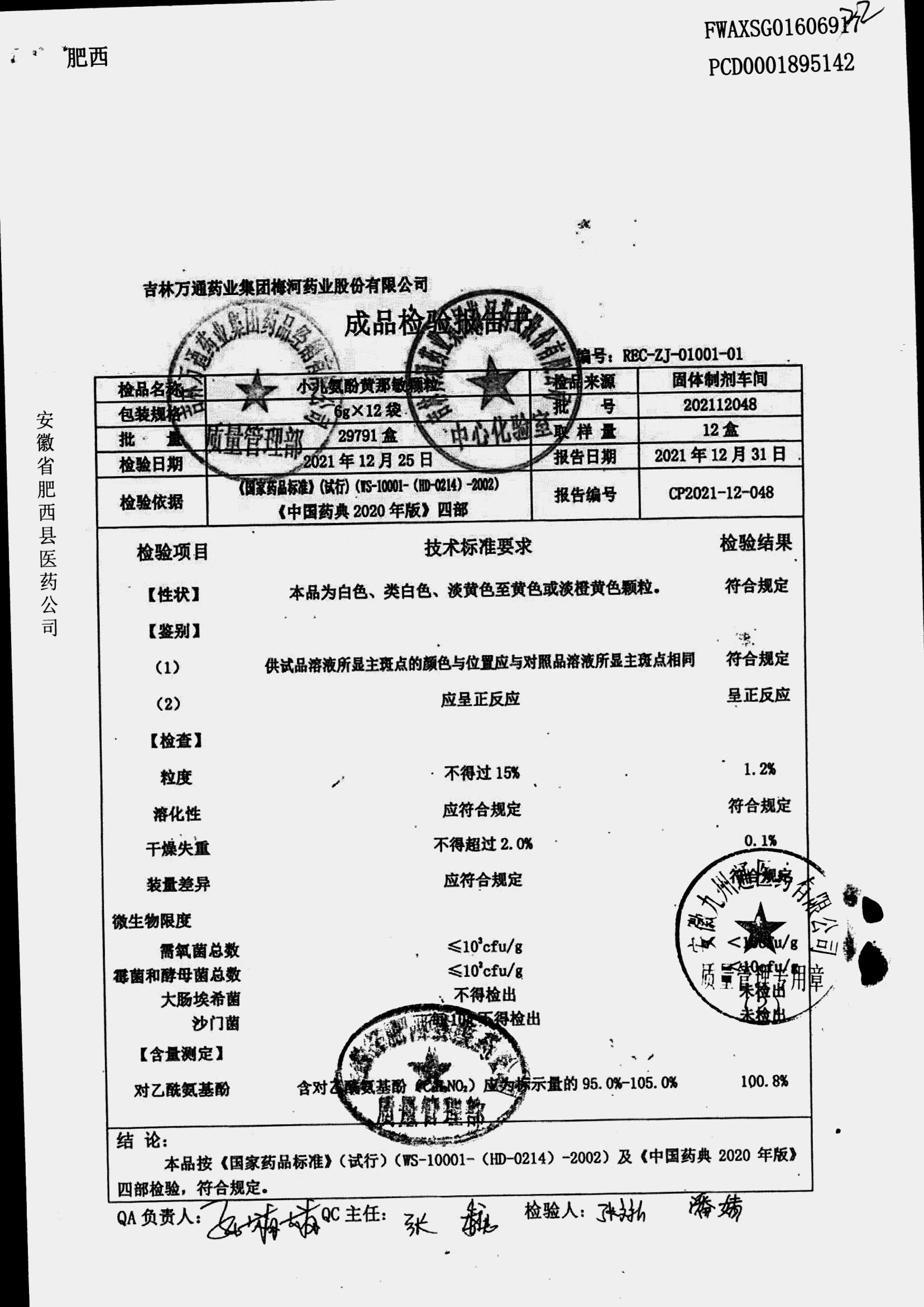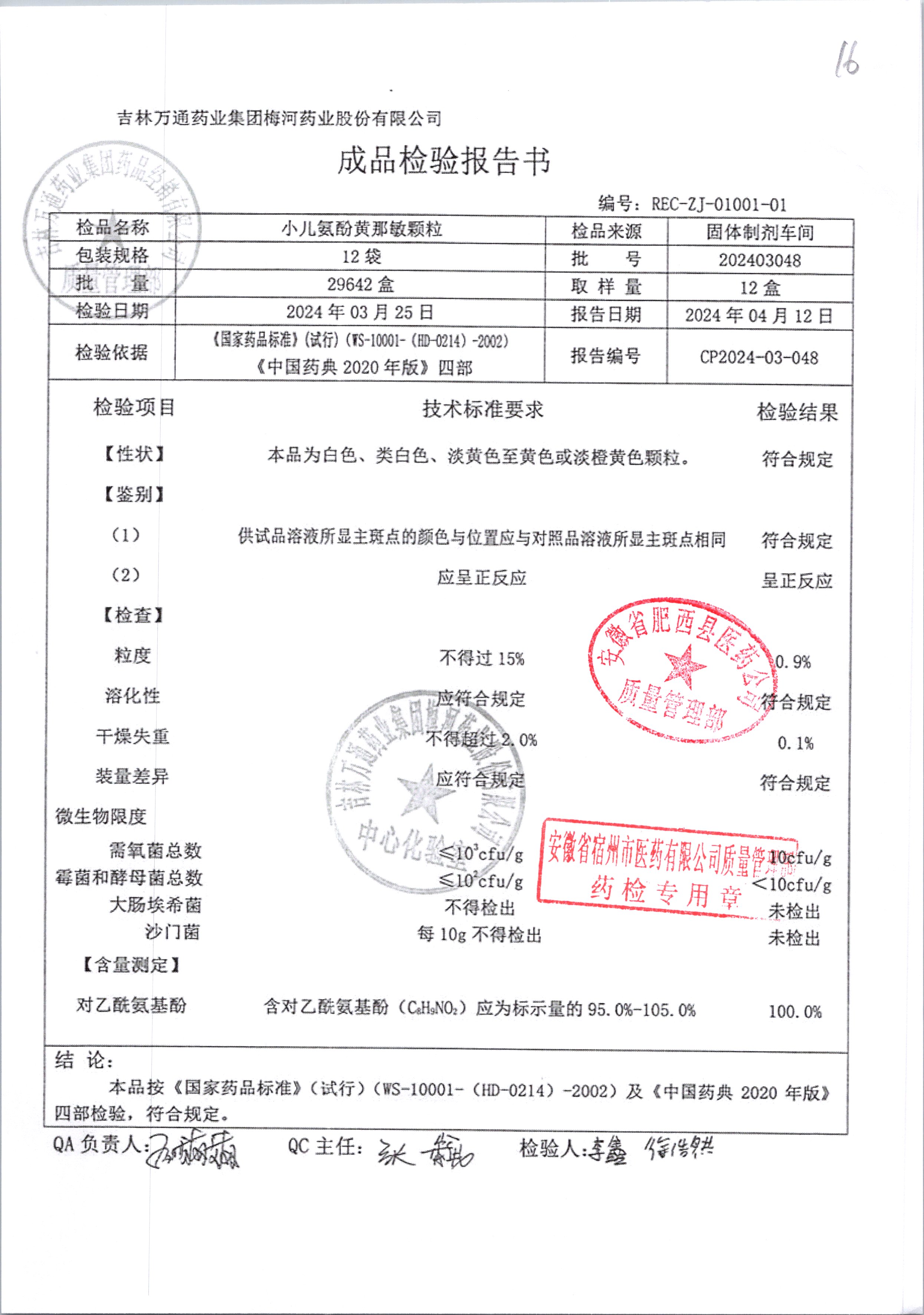 小儿氨酚黄那敏颗粒 | 6g/袋*12袋 | 202403048 | 查看详情 |