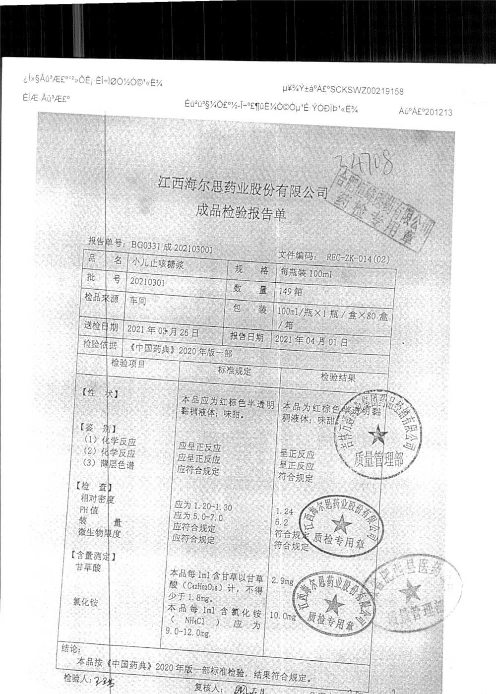 小儿止咳糖浆 | 100ml/瓶 | 20210301 | 查看详情 |