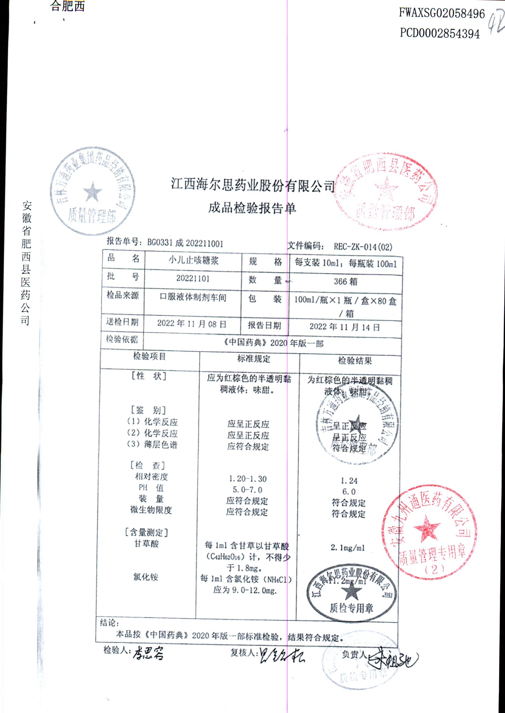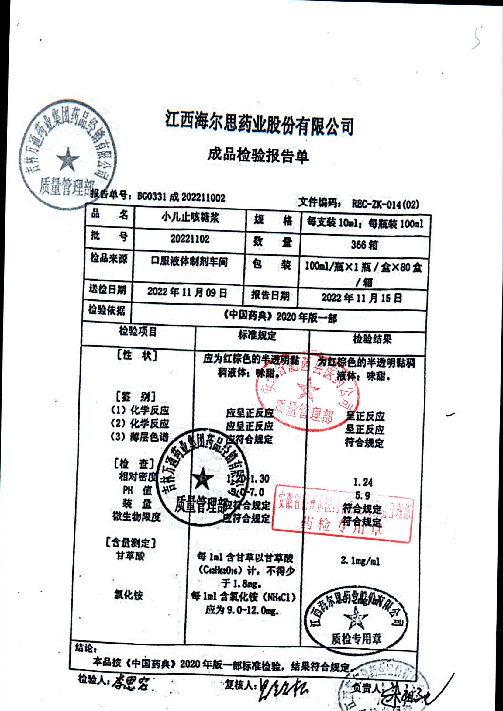 小儿止咳糖浆 | 100ml/瓶 | 20221102 | 查看详情 |
