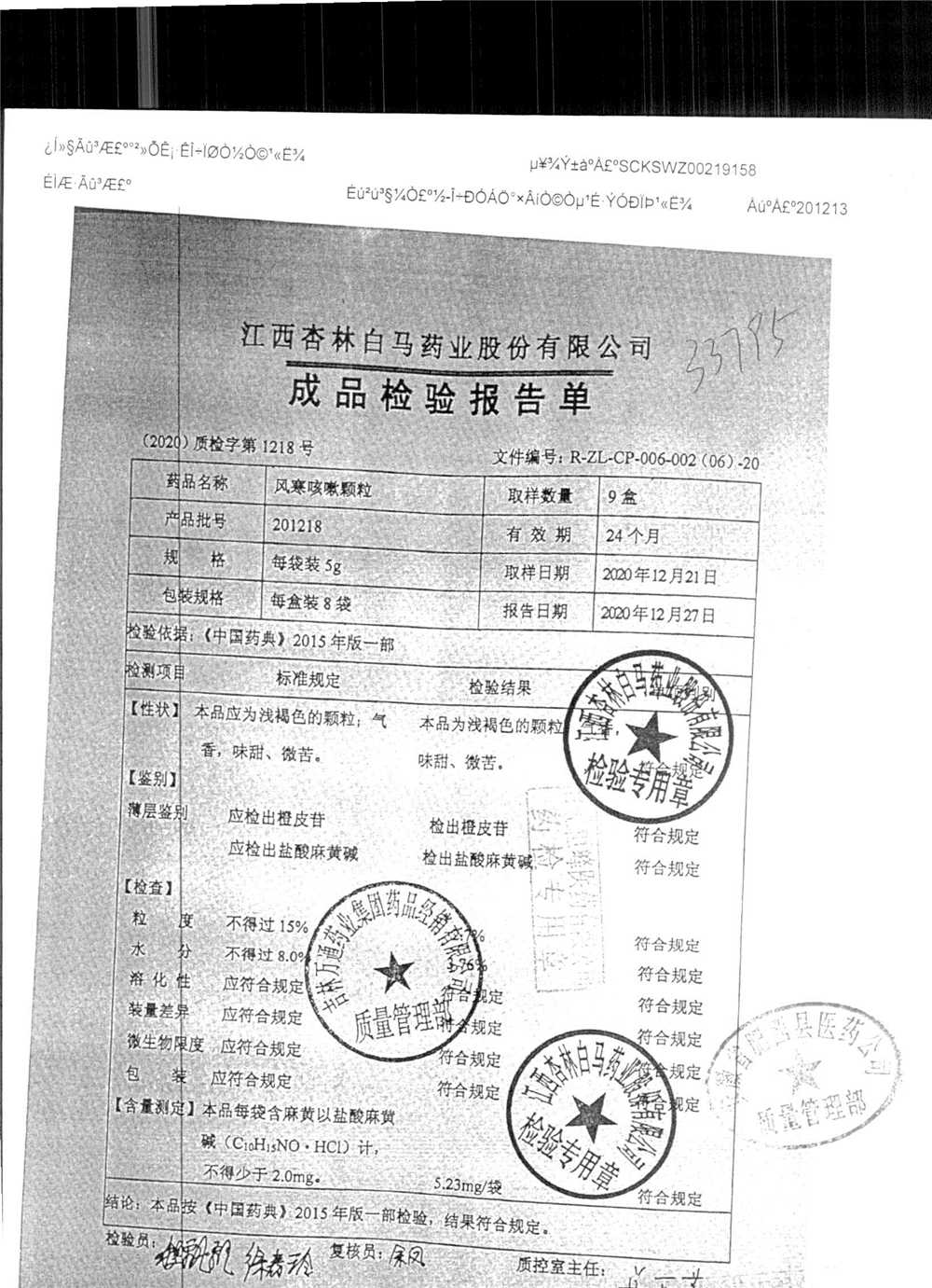 风寒咳嗽颗粒 | 5克*8袋 | 201218 | 查看详情 |