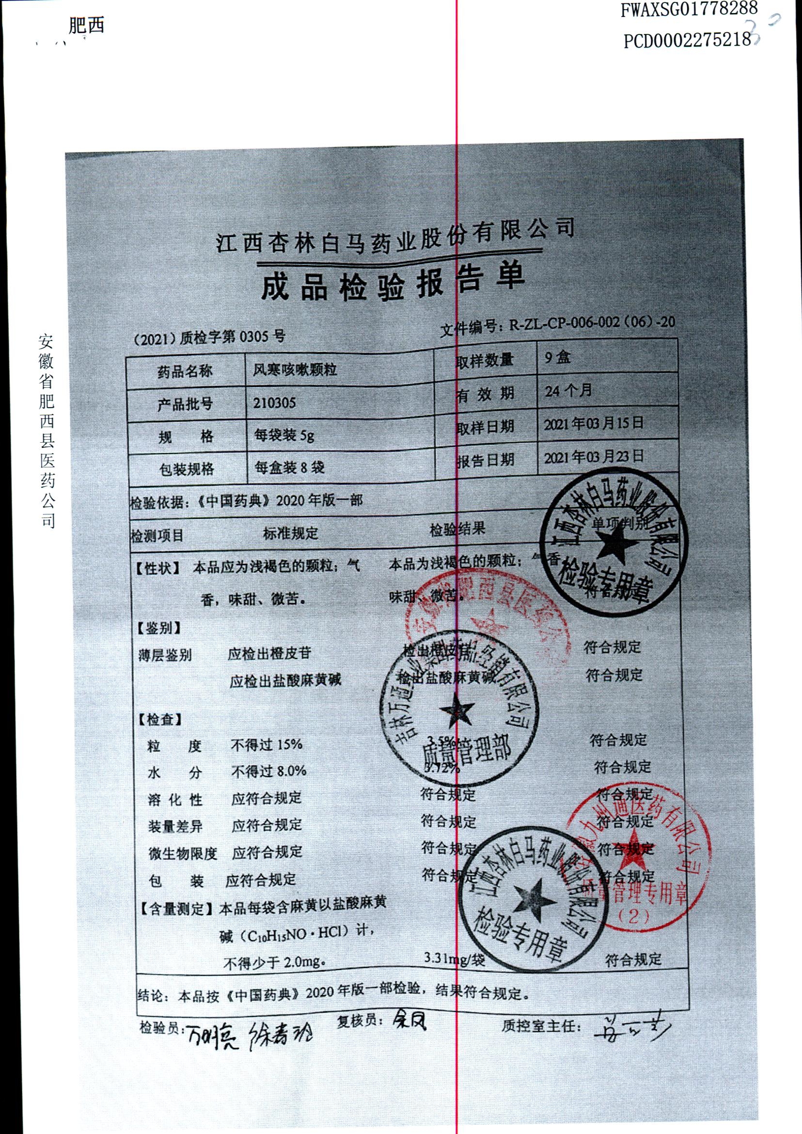 风寒咳嗽颗粒 | 5克*8袋 | 210305 | 查看详情 |