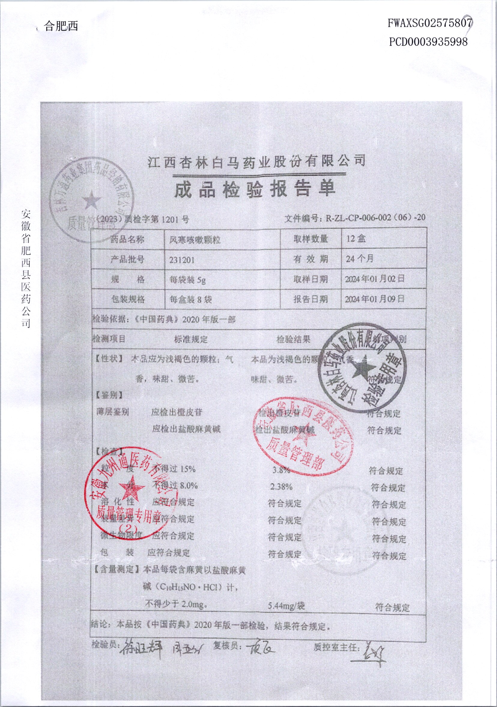 风寒咳嗽颗粒 | 5克*8袋 | 231201 | 查看详情 |