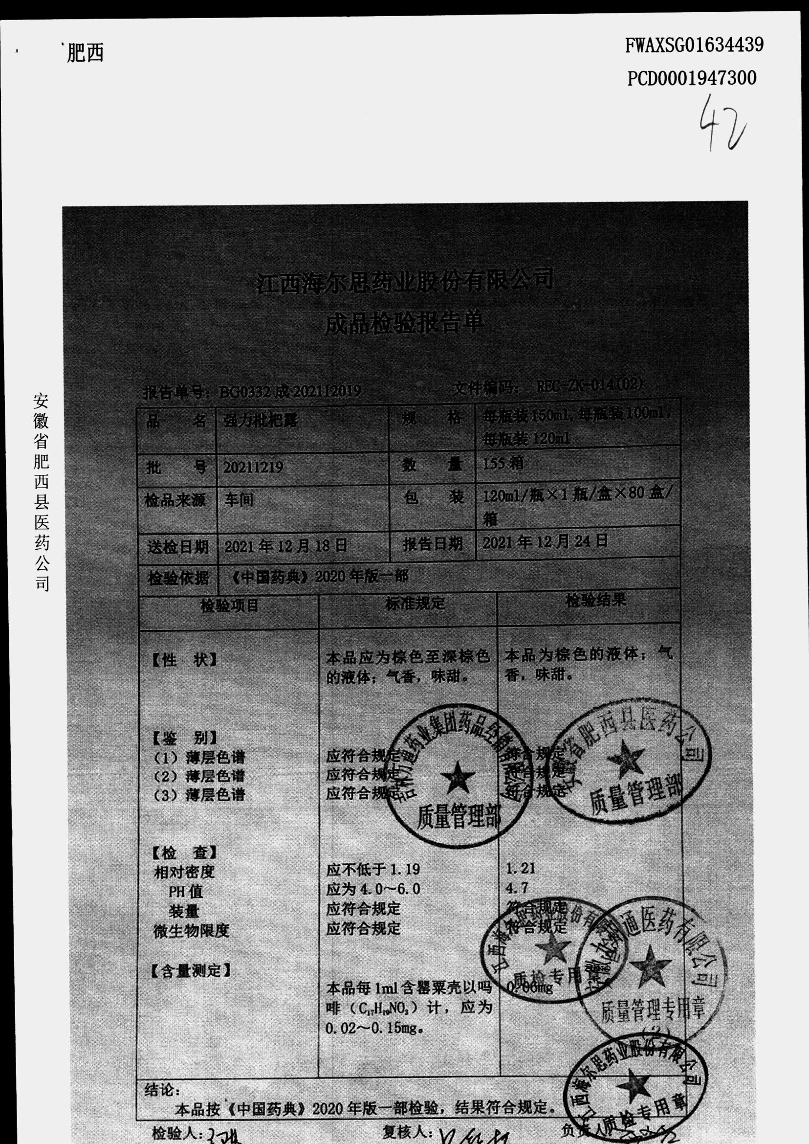 强力枇杷露 | 120ml | 20211219 | 查看详情 |