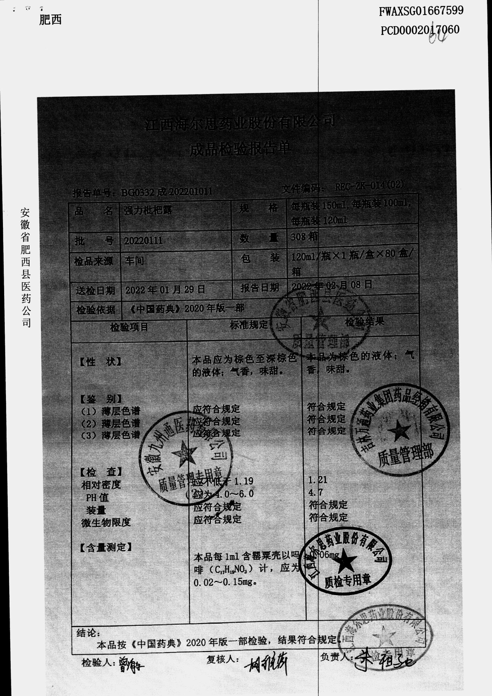 强力枇杷露 | 120ml | 20220111 | 查看详情 |