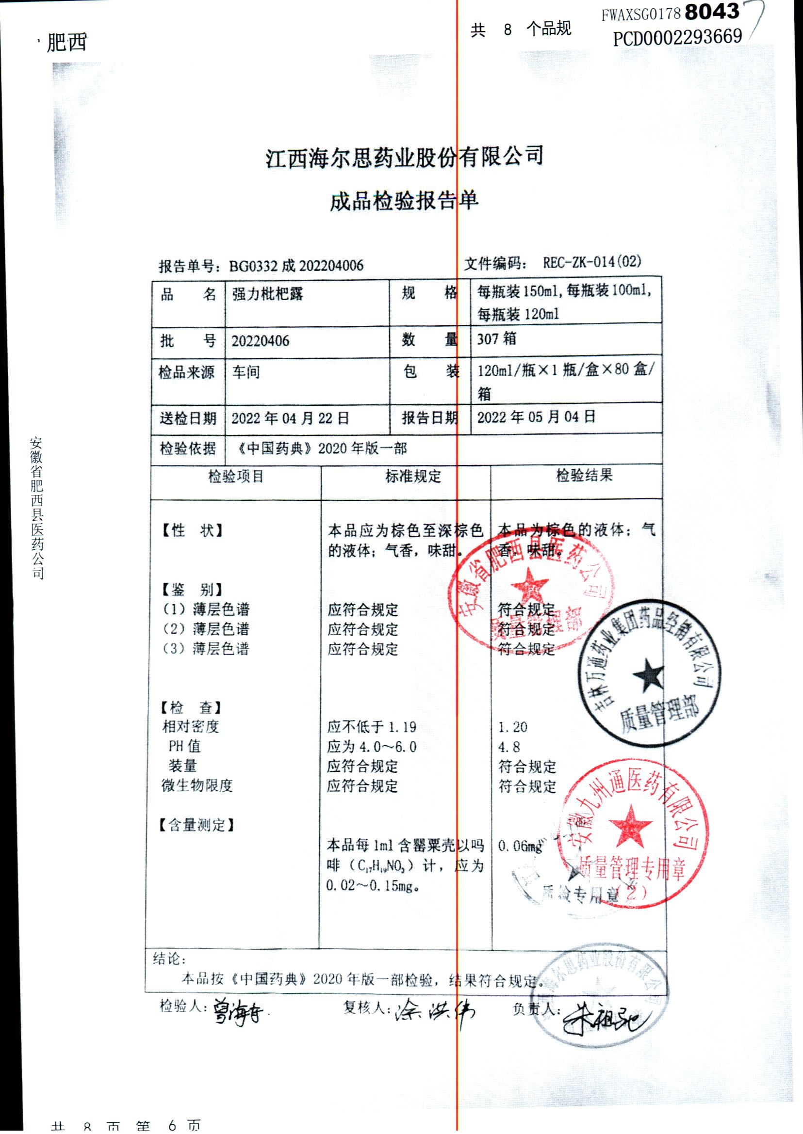 强力枇杷露 | 120ml | 20220406 | 查看详情 |