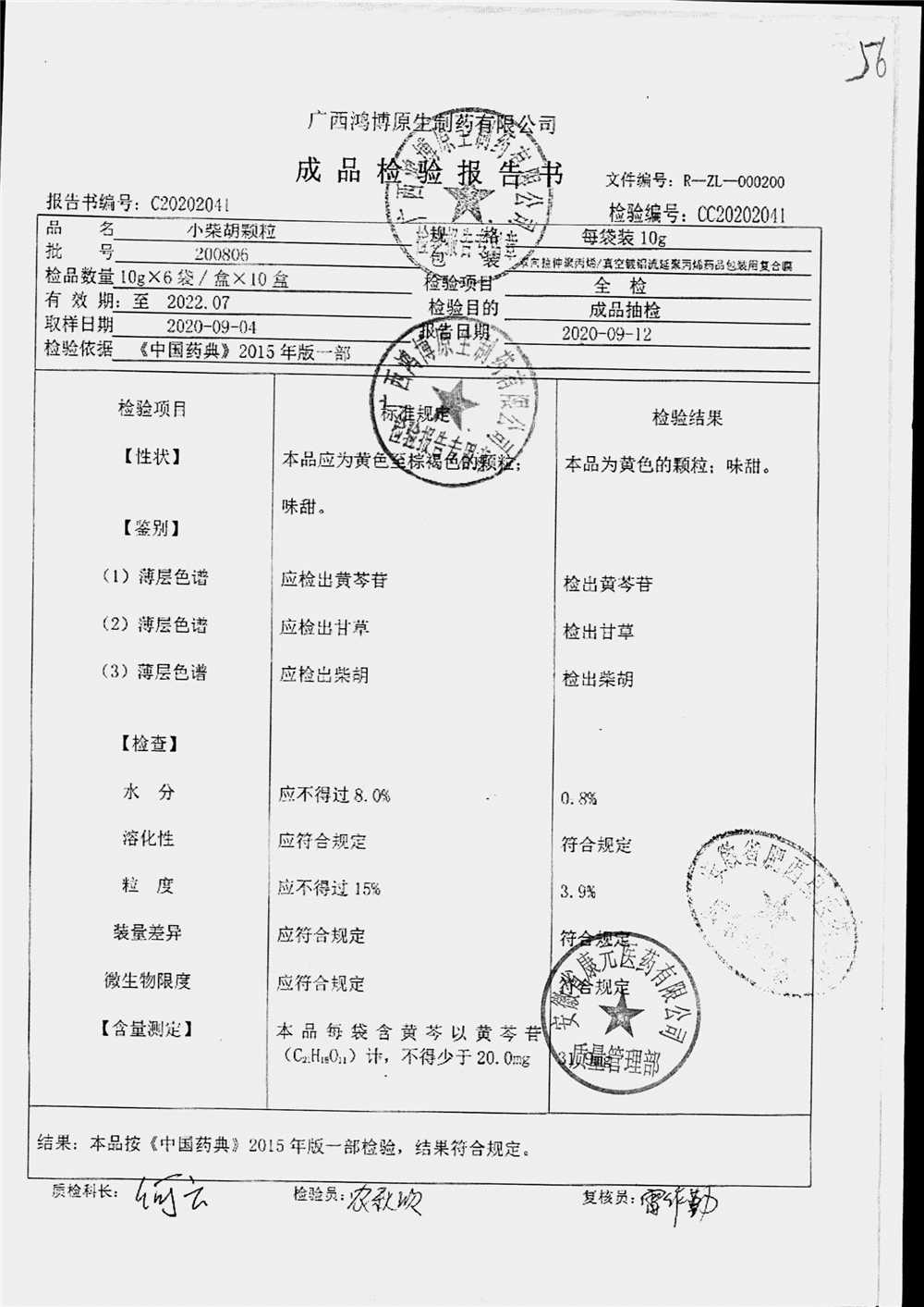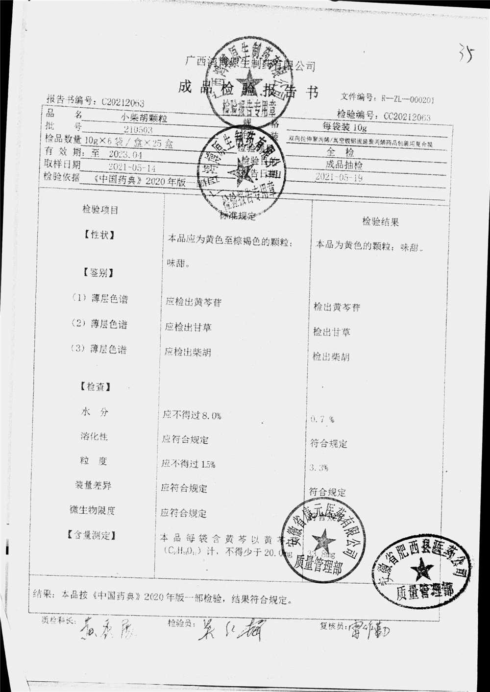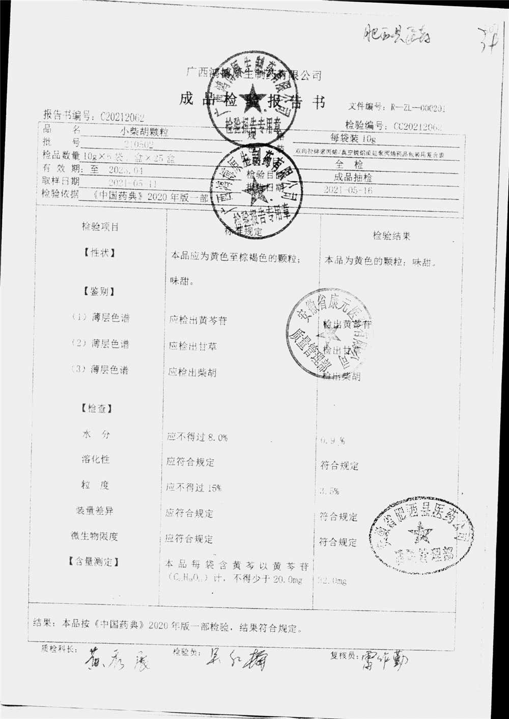 小柴胡颗粒 | 10g*6袋 | 210806 | 查看详情 |
