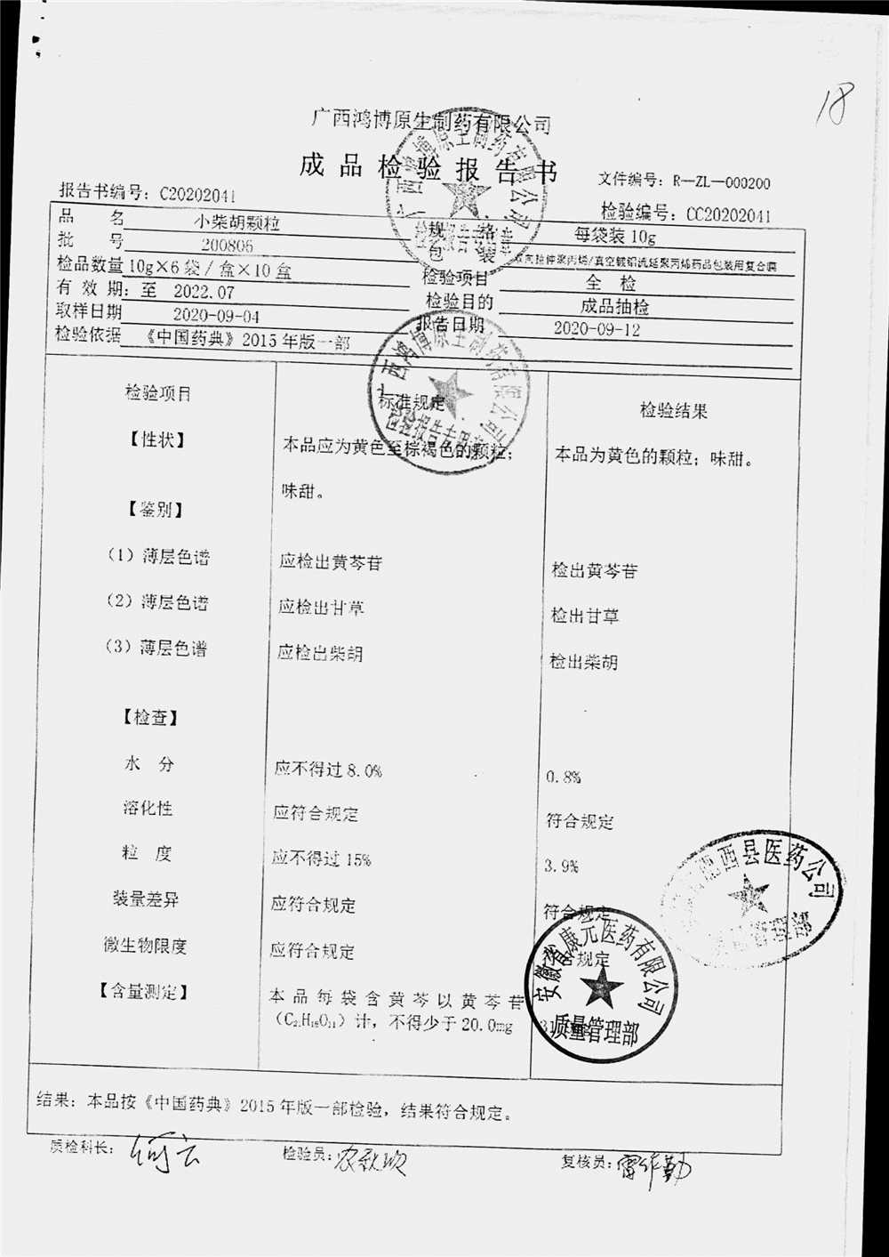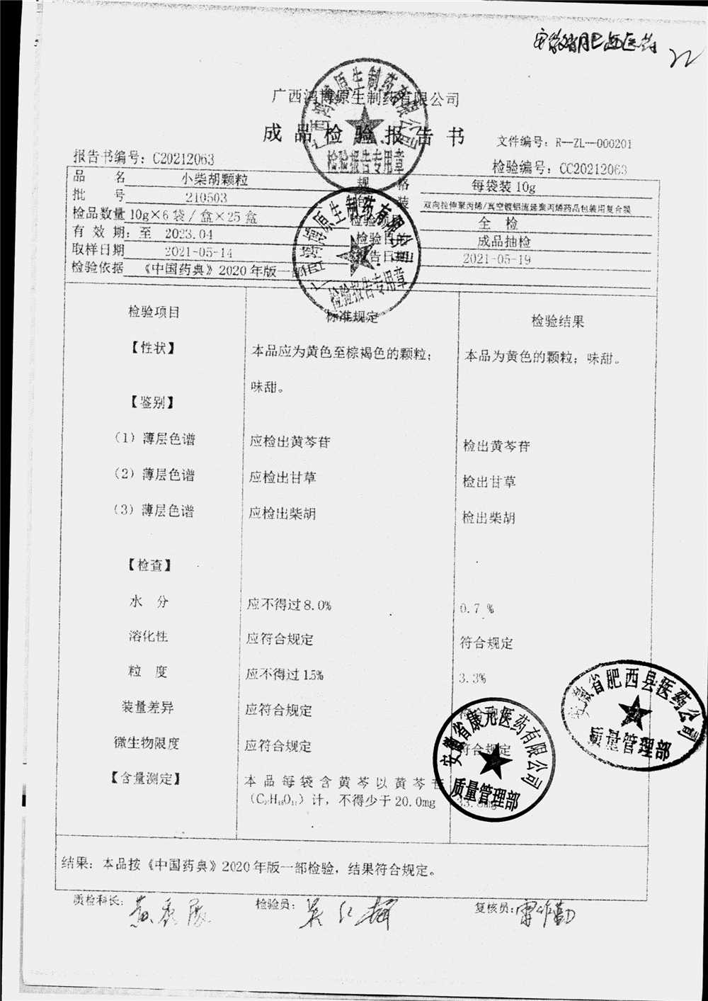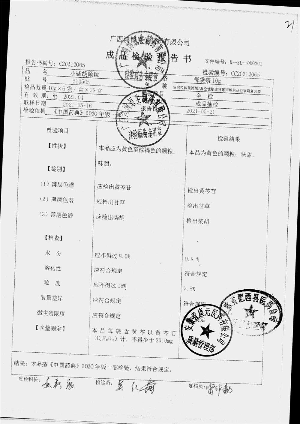 小柴胡颗粒 | 10g*6袋 | 210806 | 查看详情 |
