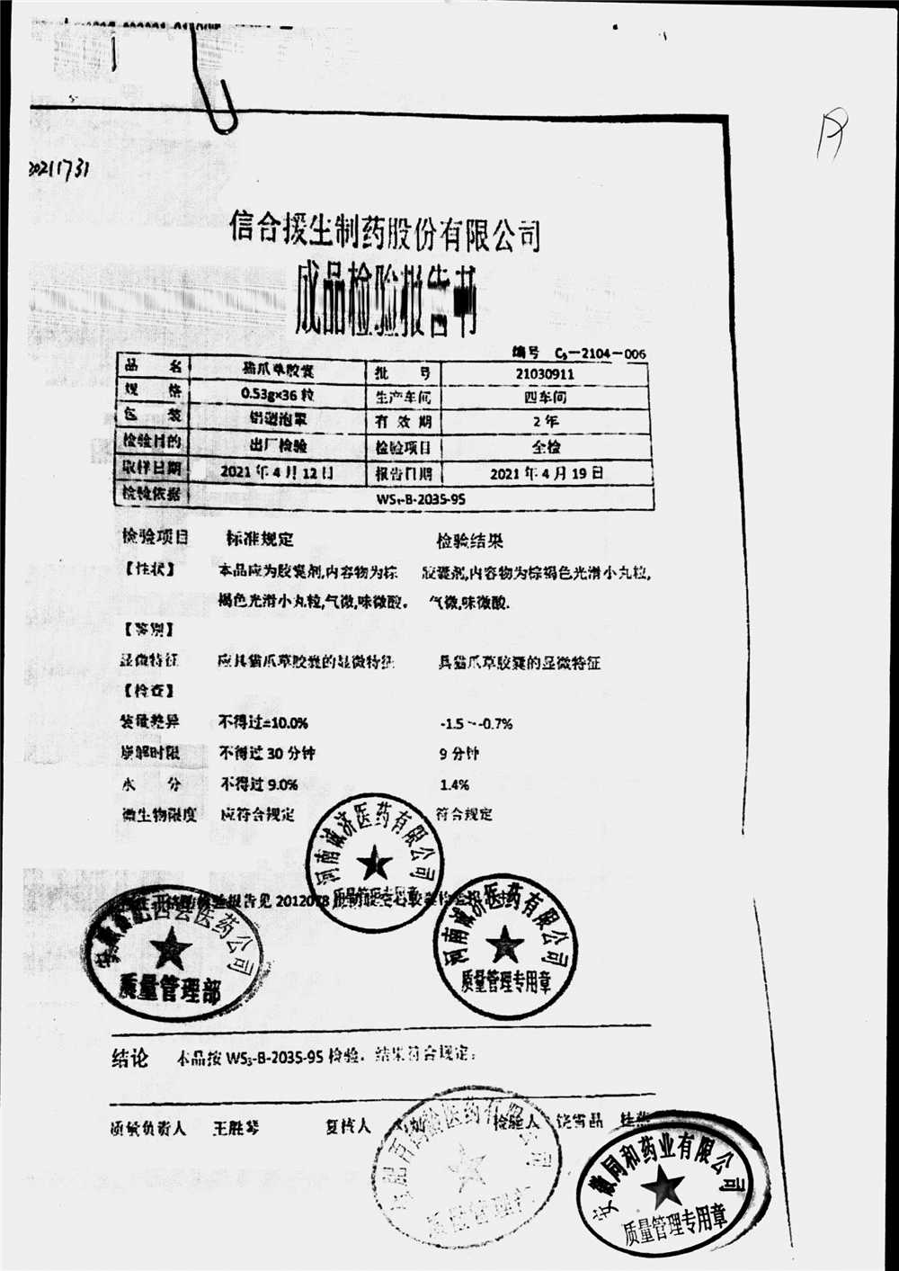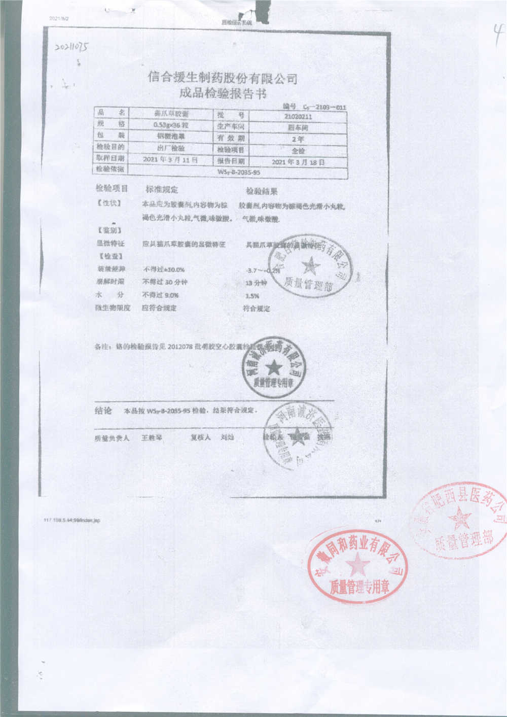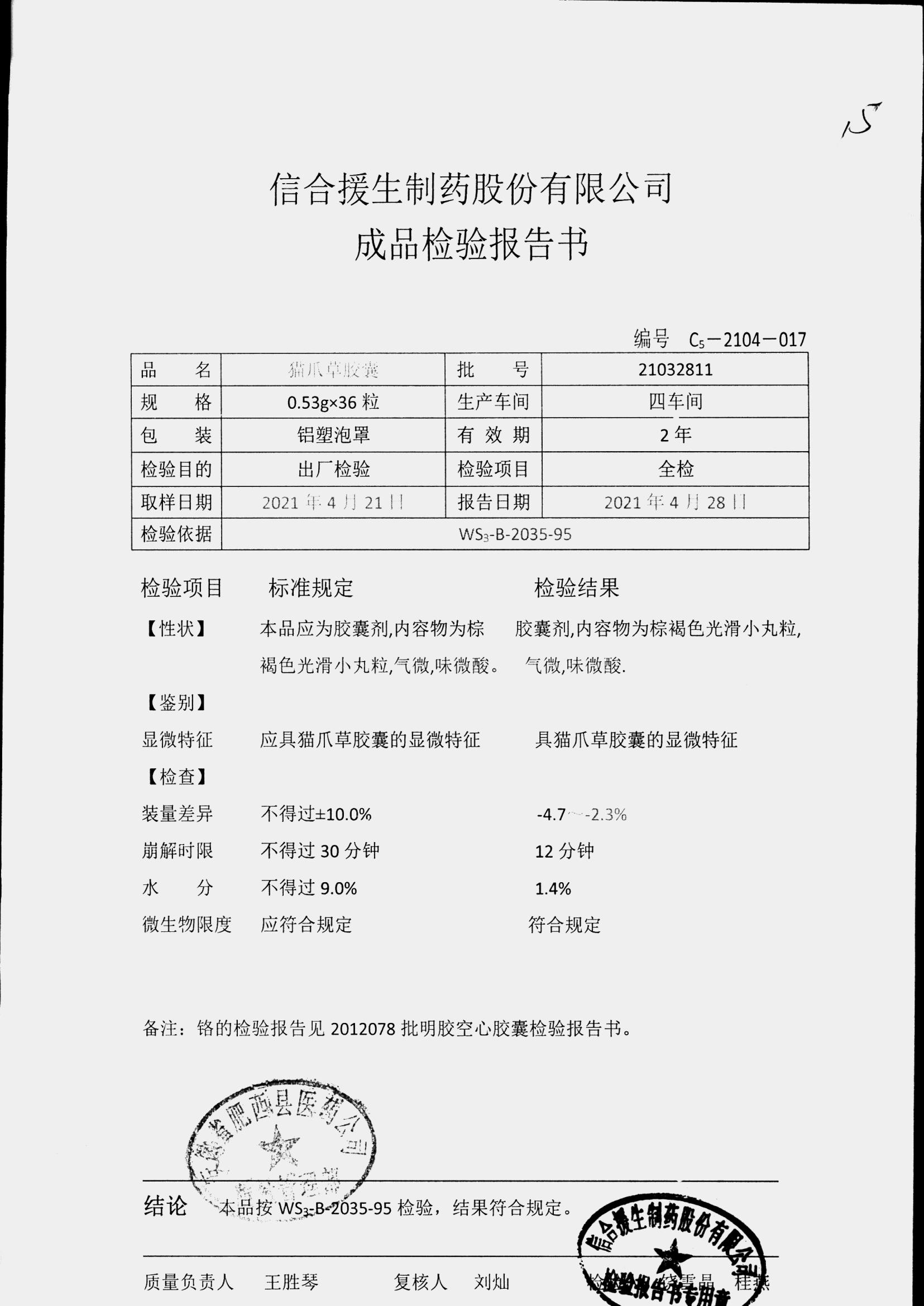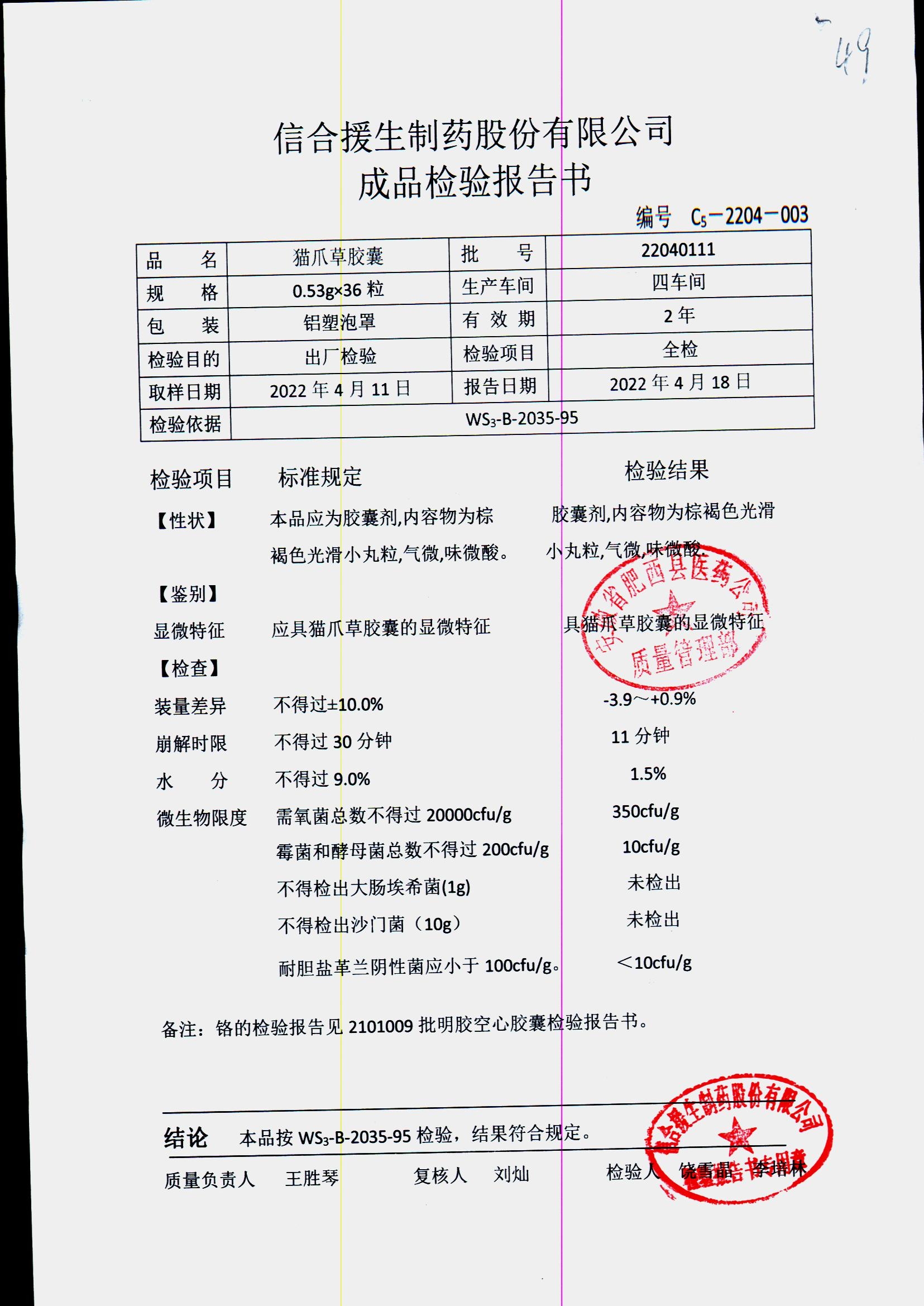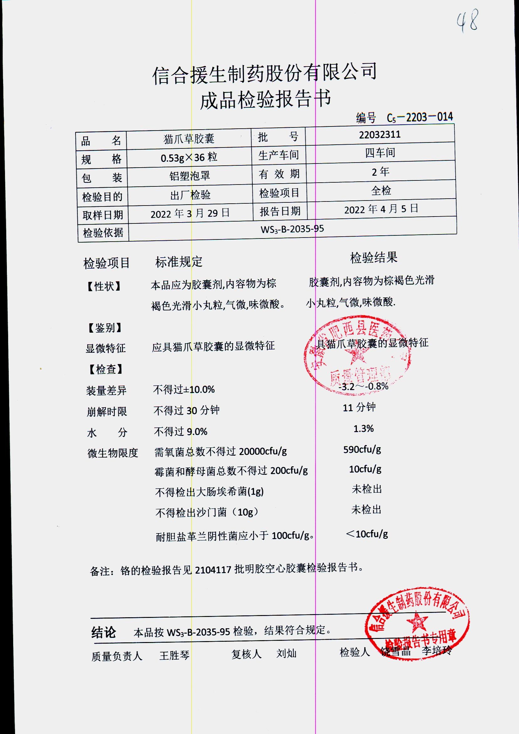 猫爪草胶囊 | 0.53g*36s | 22040111 | 查看详情 |