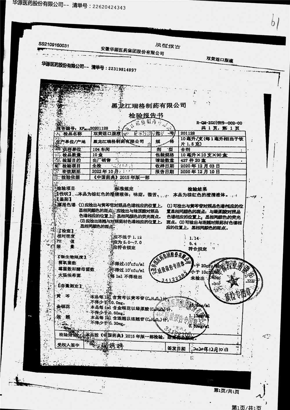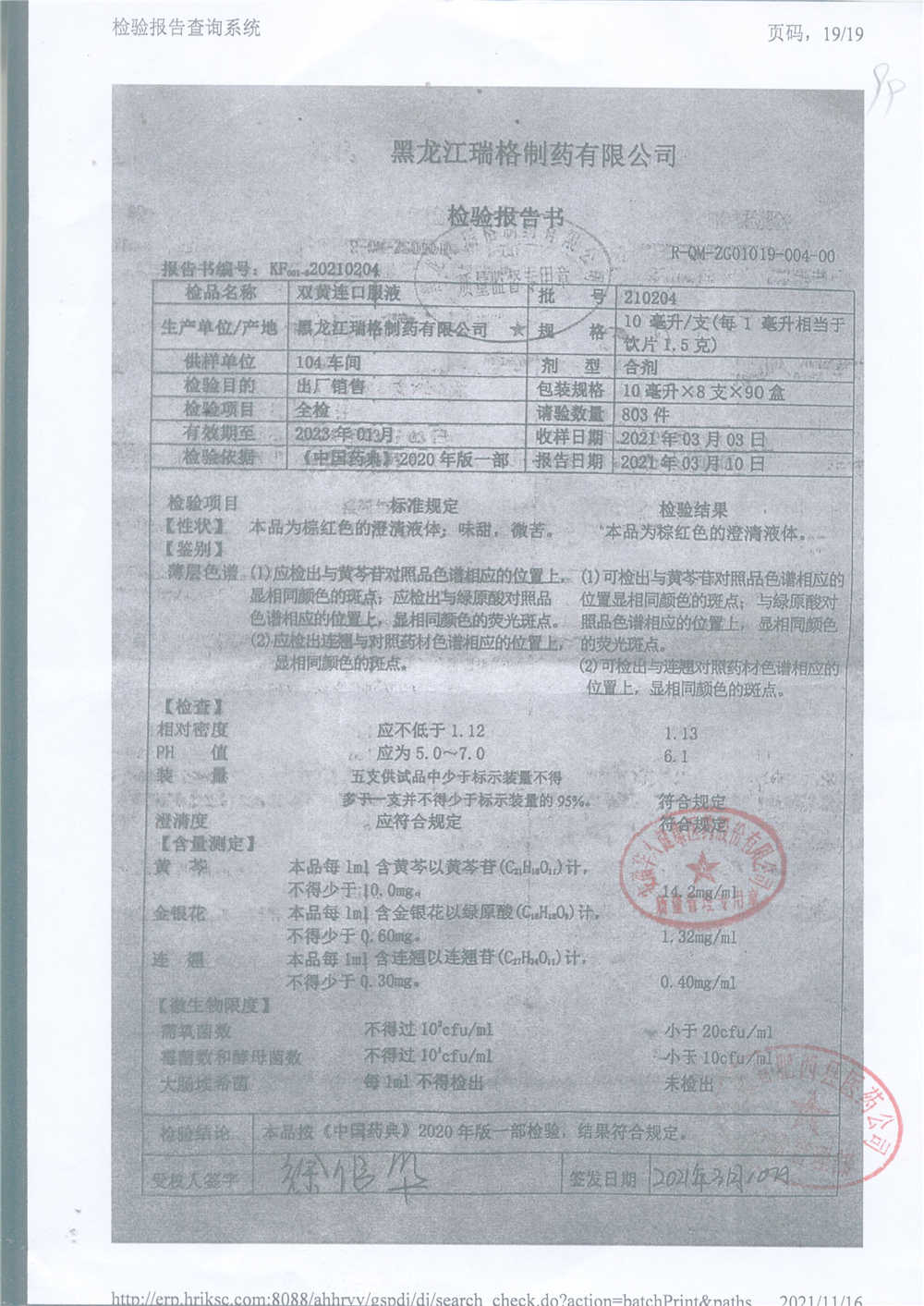 双黄连口服液 | 10ml*10支 | 210204 | 查看详情 |