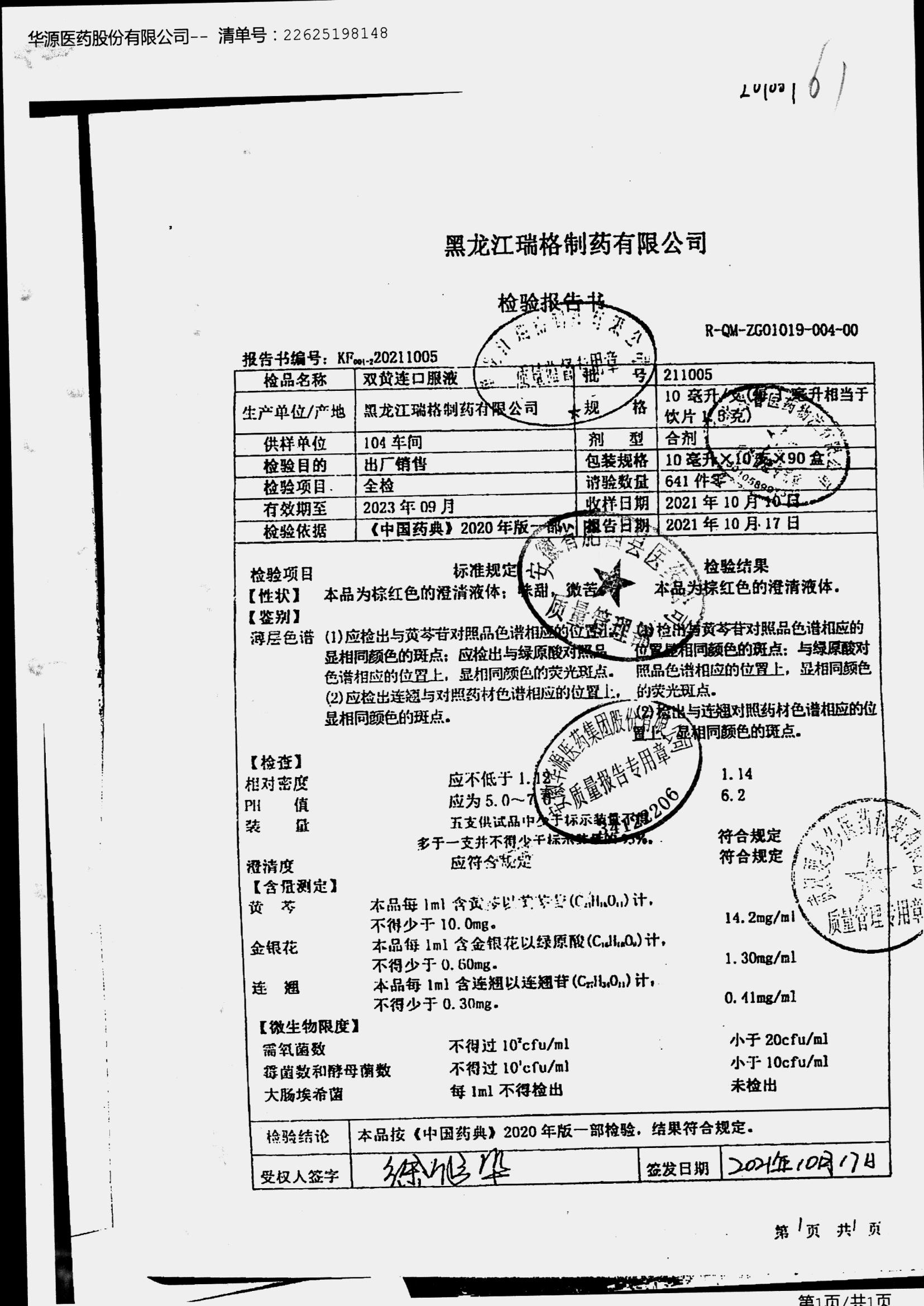 双黄连口服液 | 10ml*10支 | 211005 | 查看详情 |
