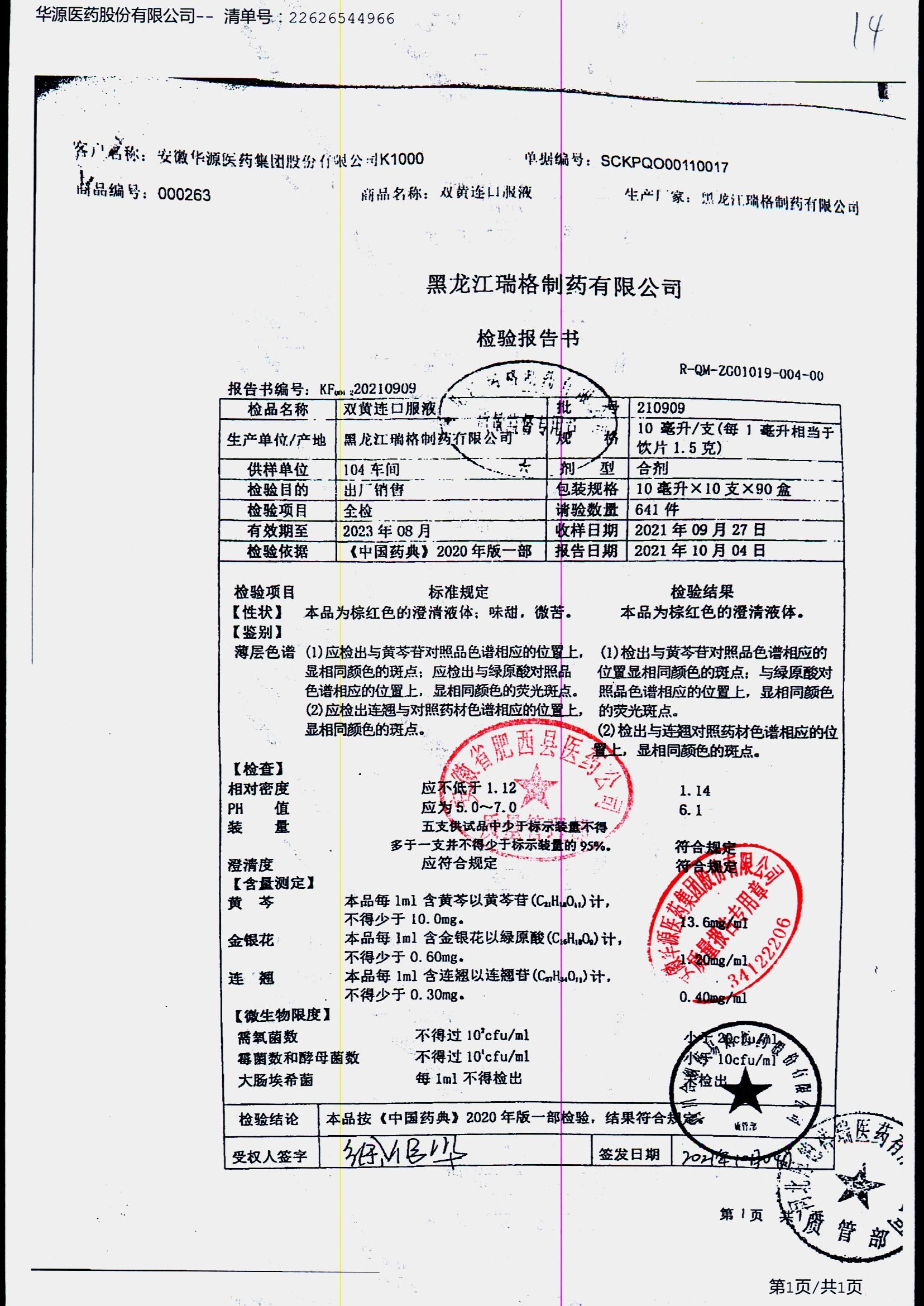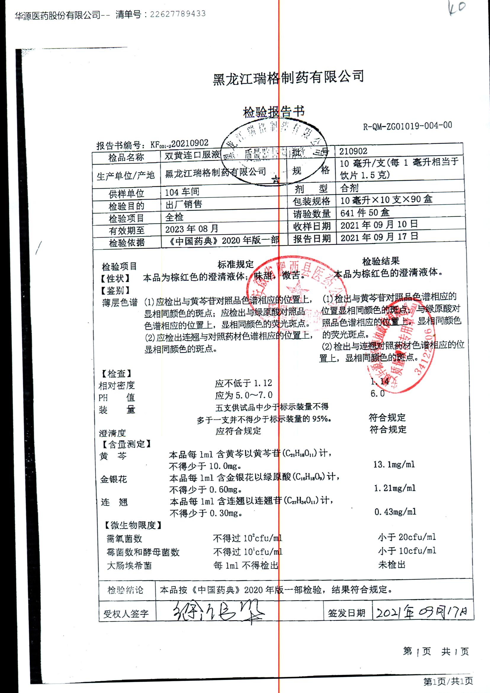 双黄连口服液 | 10ml*10支 | 210902 | 查看详情 |