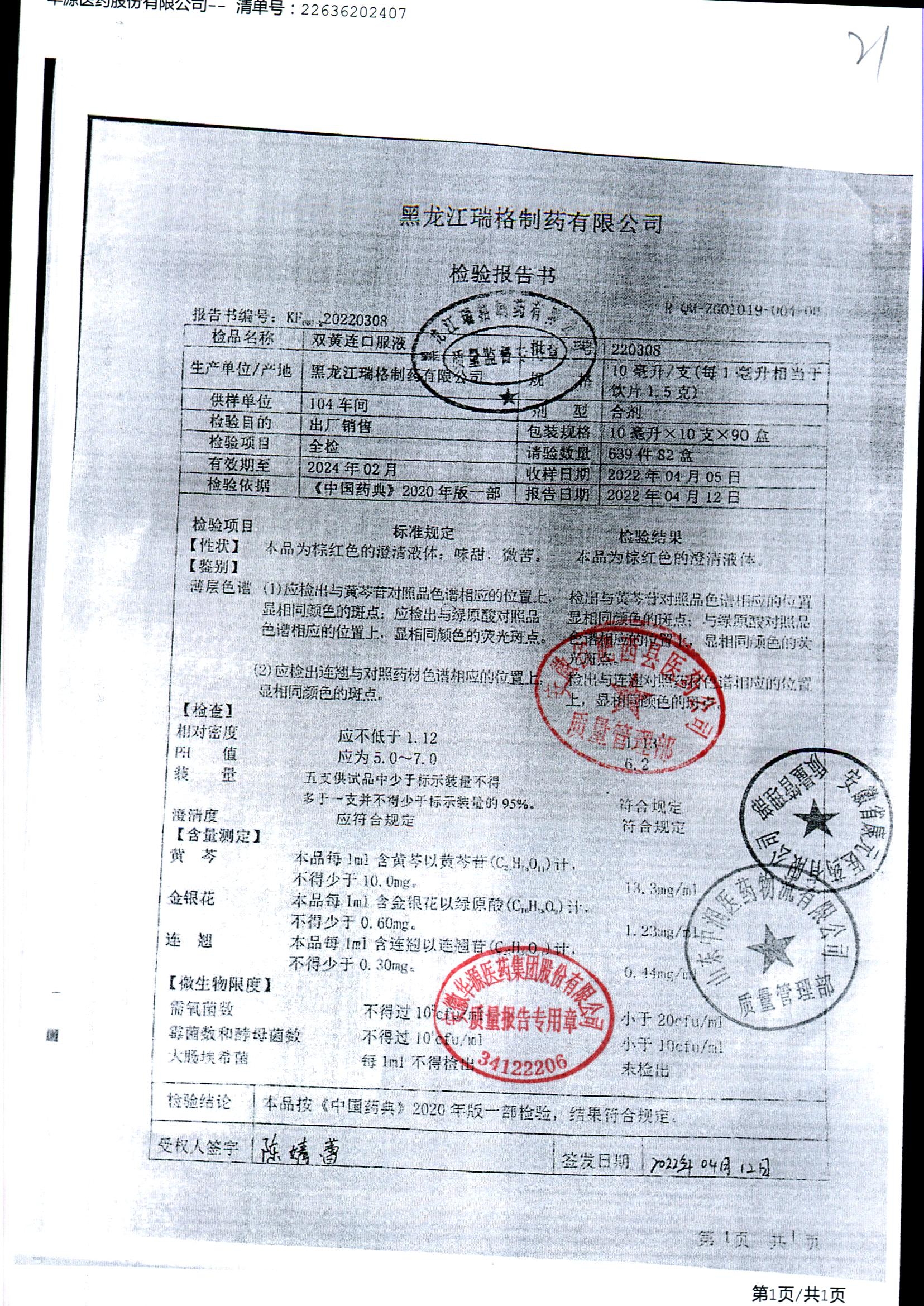 双黄连口服液 | 10ml*10支 | 220308 | 查看详情 |