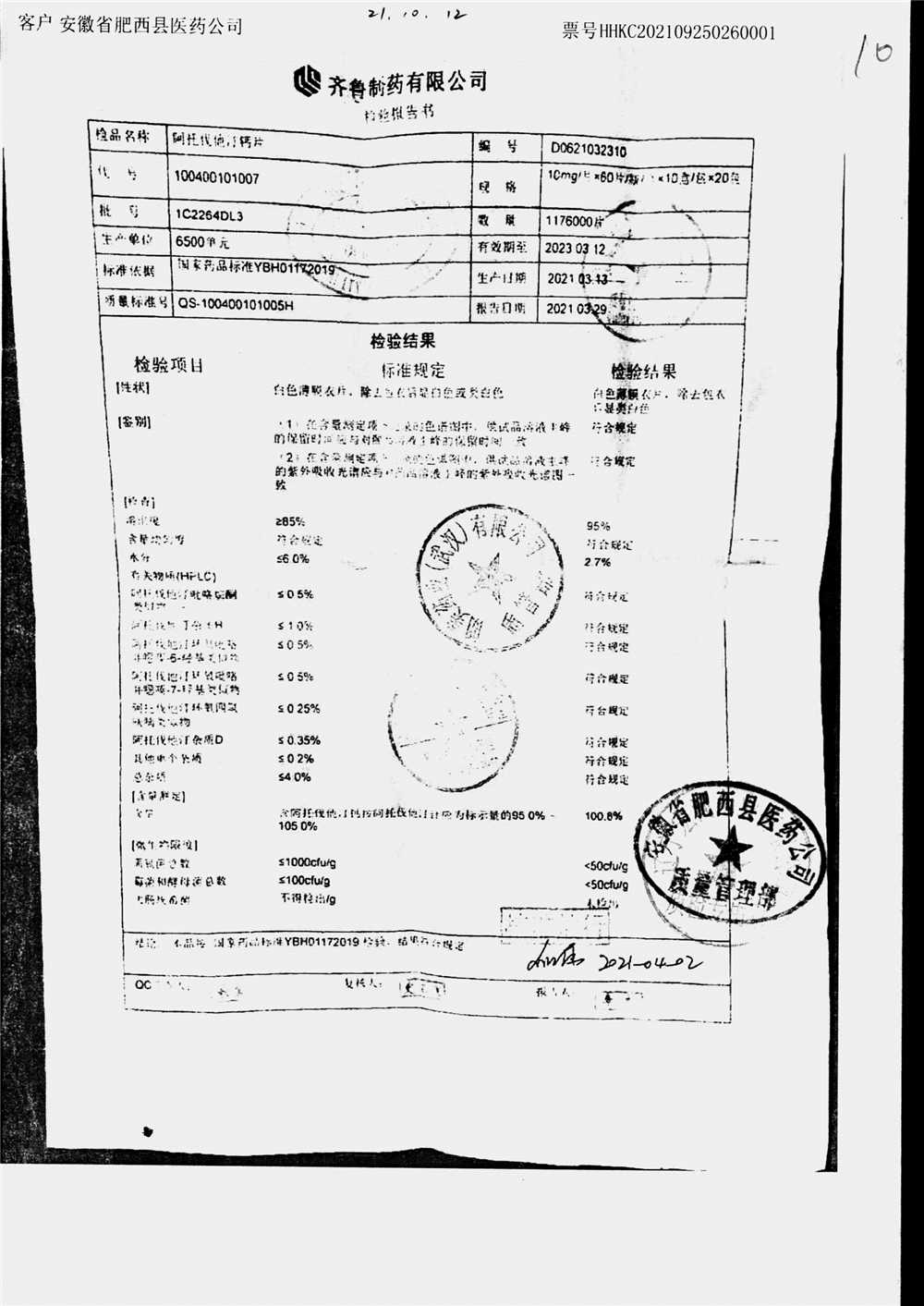 药检报告