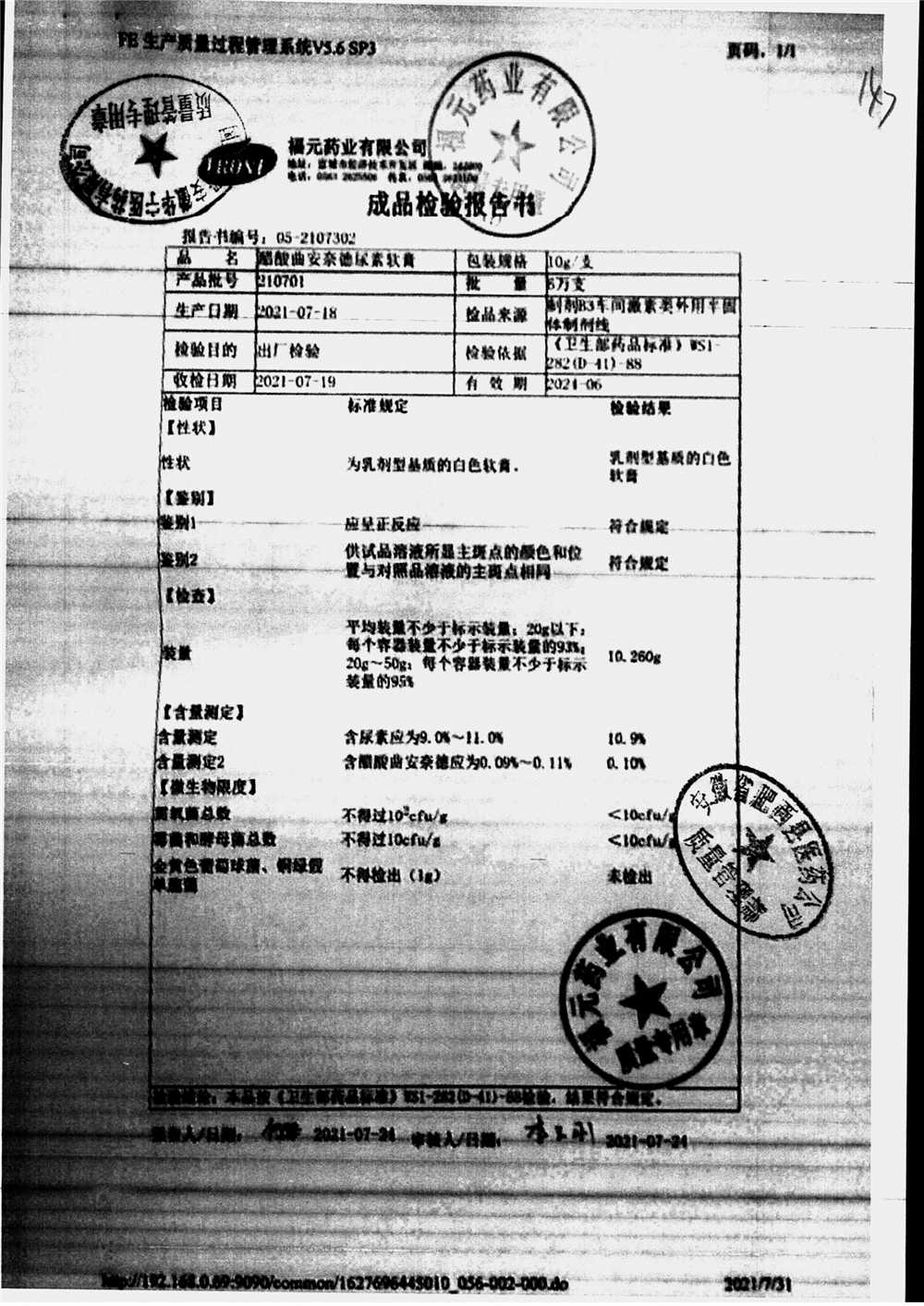 药检报告