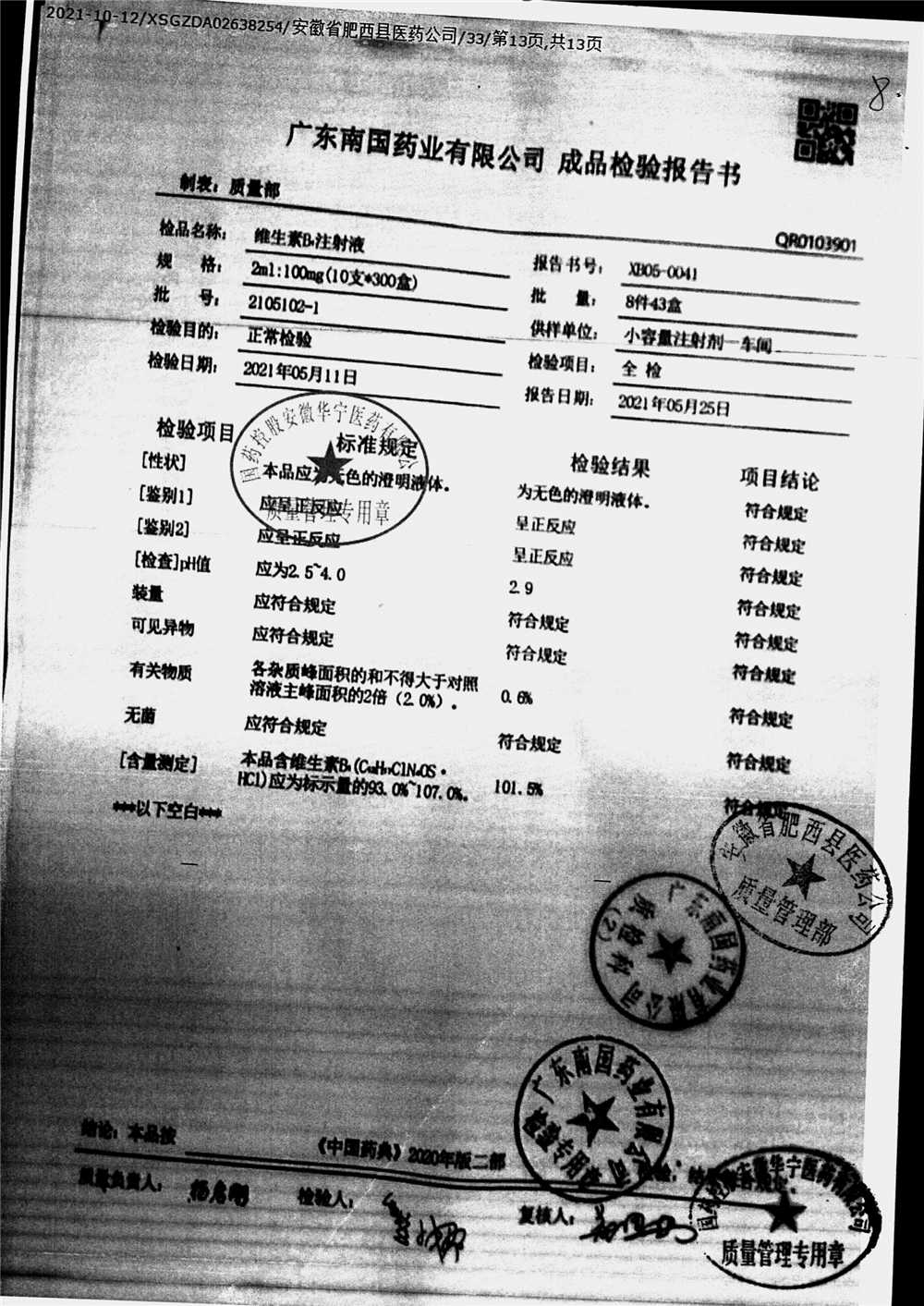 维生素B1注射液 | 2ml:100mg*10支 | 2105102-1 | 查看详情 |